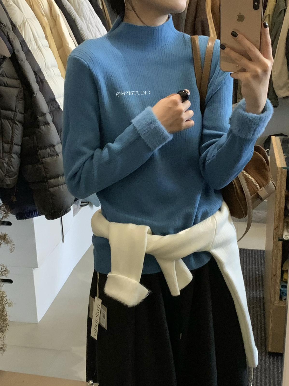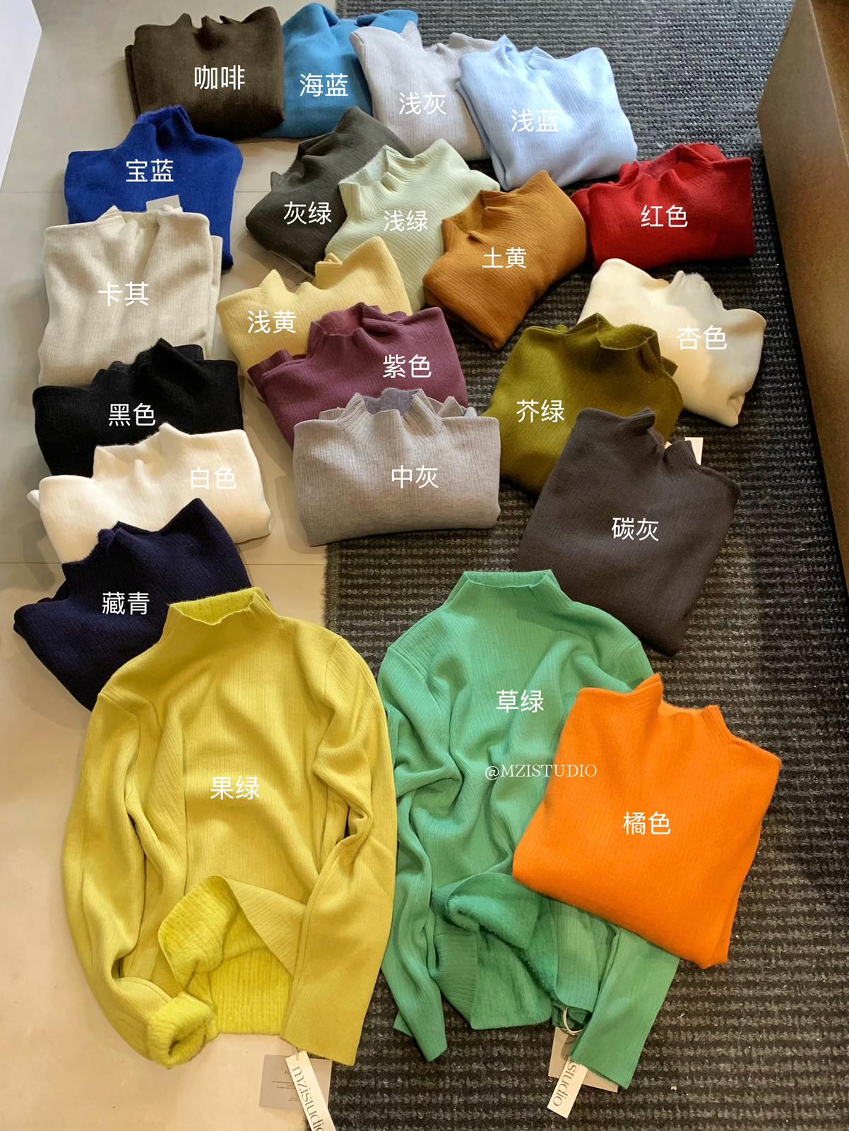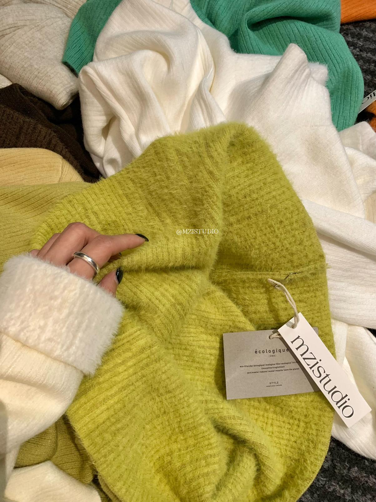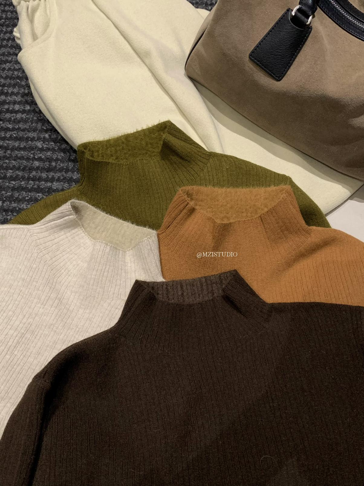 【C7684】水貂絨冬季衣櫥必備單品加絨韓標基礎淨色多巴胺高領針織打底衫