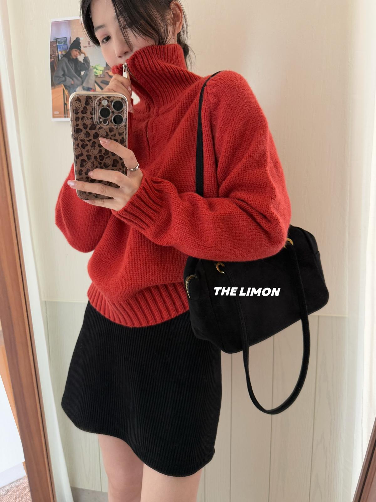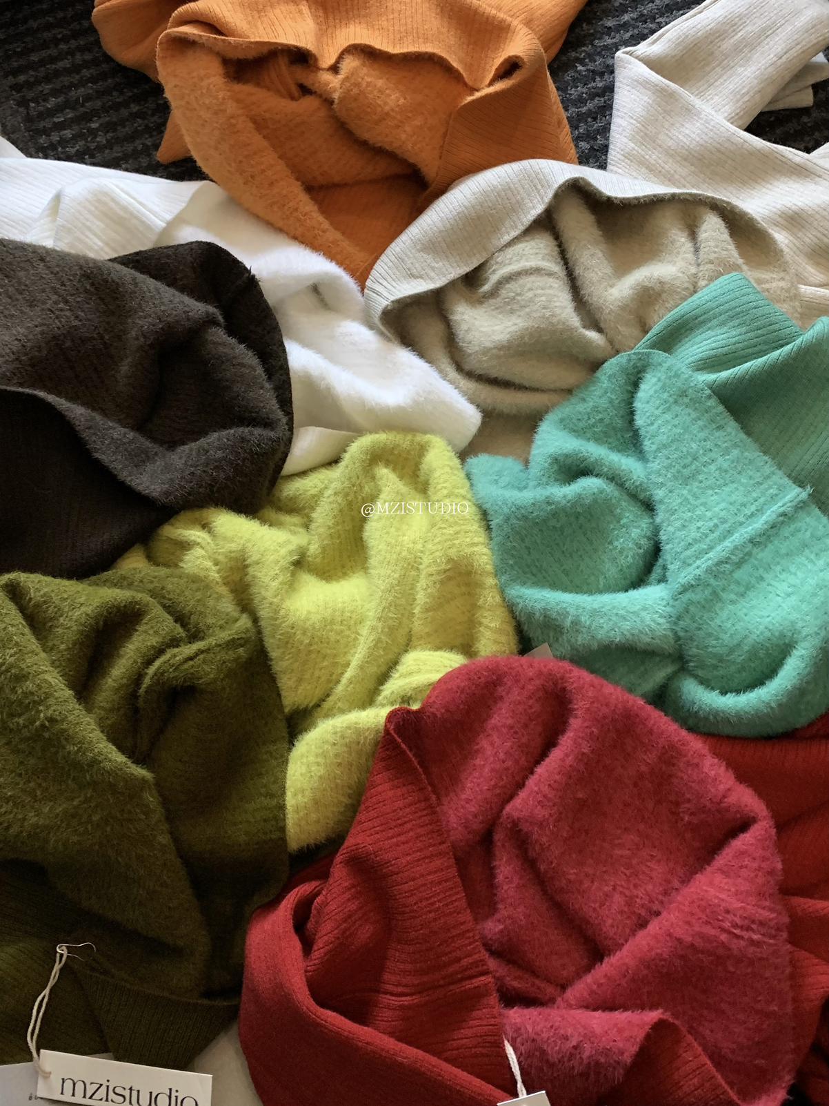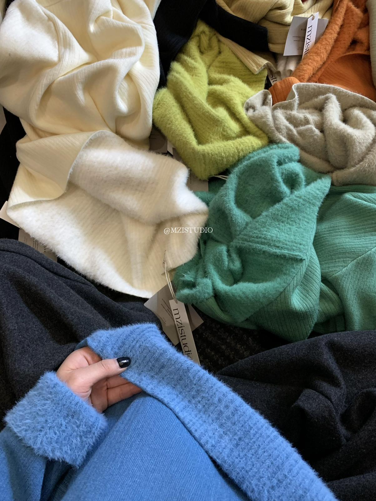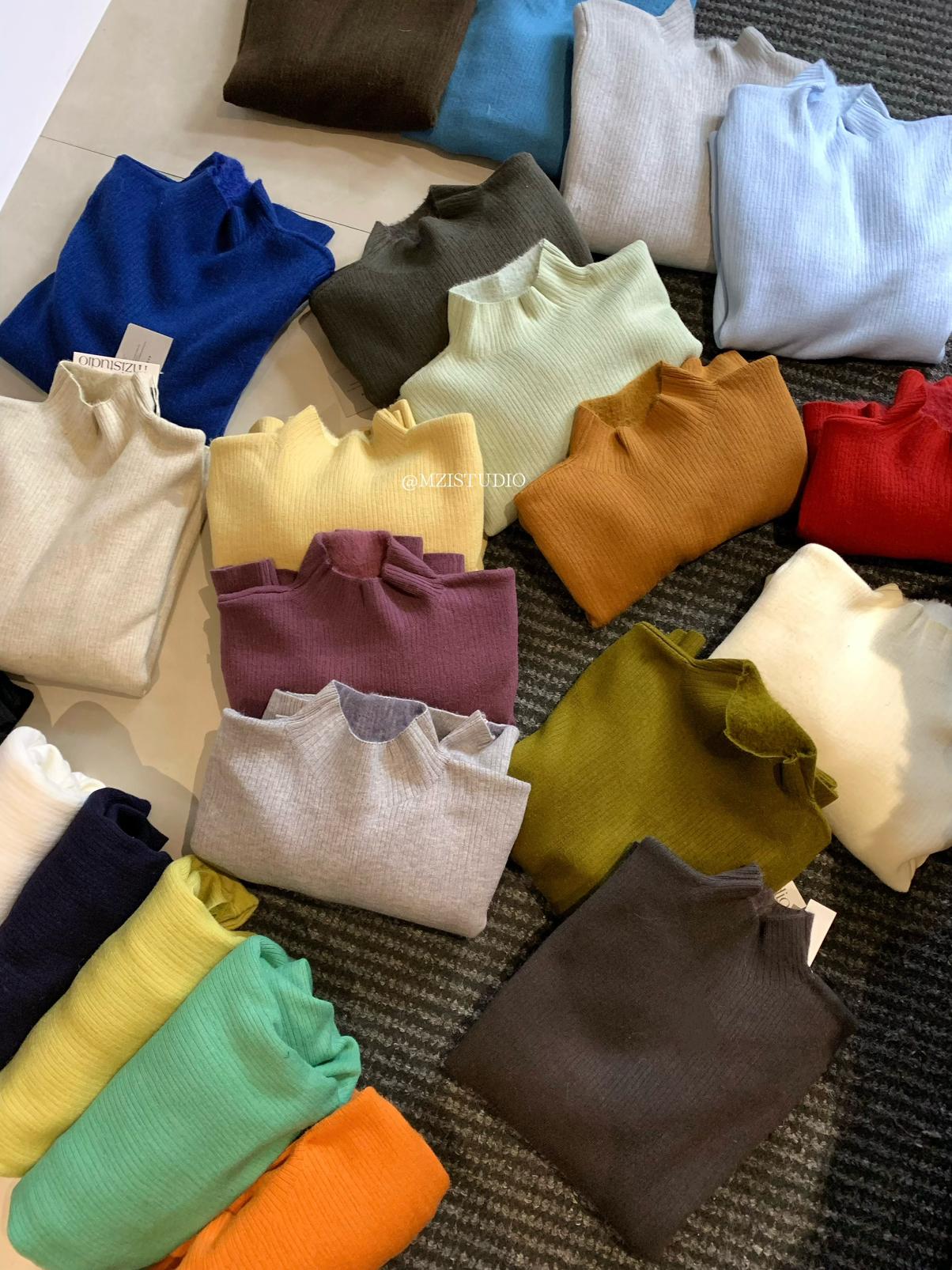 【C7684】水貂絨冬季衣櫥必備單品加絨韓標基礎淨色多巴胺高領針織打底衫