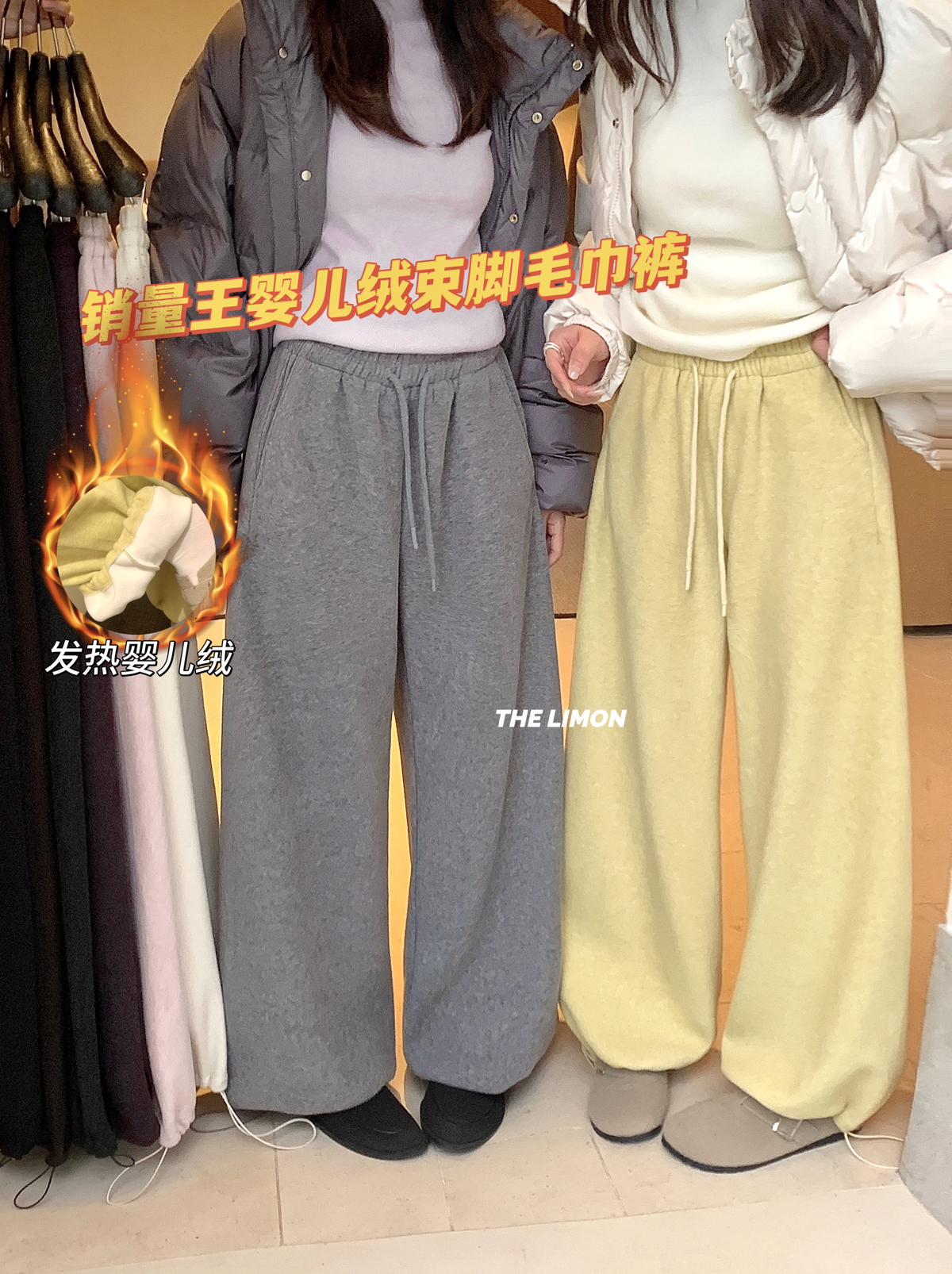 【C7674】加厚嬰兒絨可束腳休閒褲