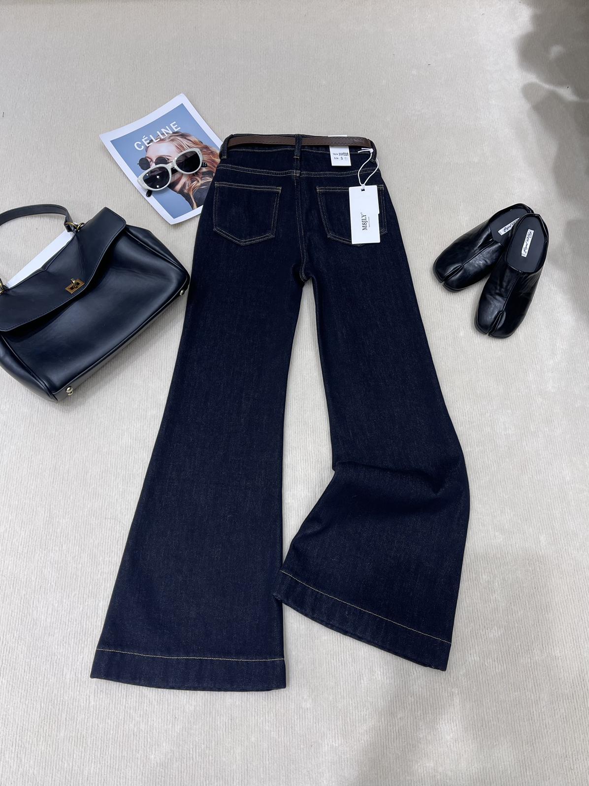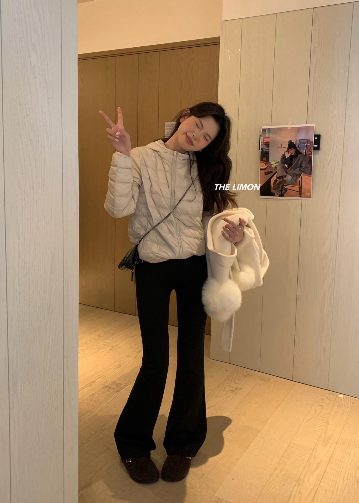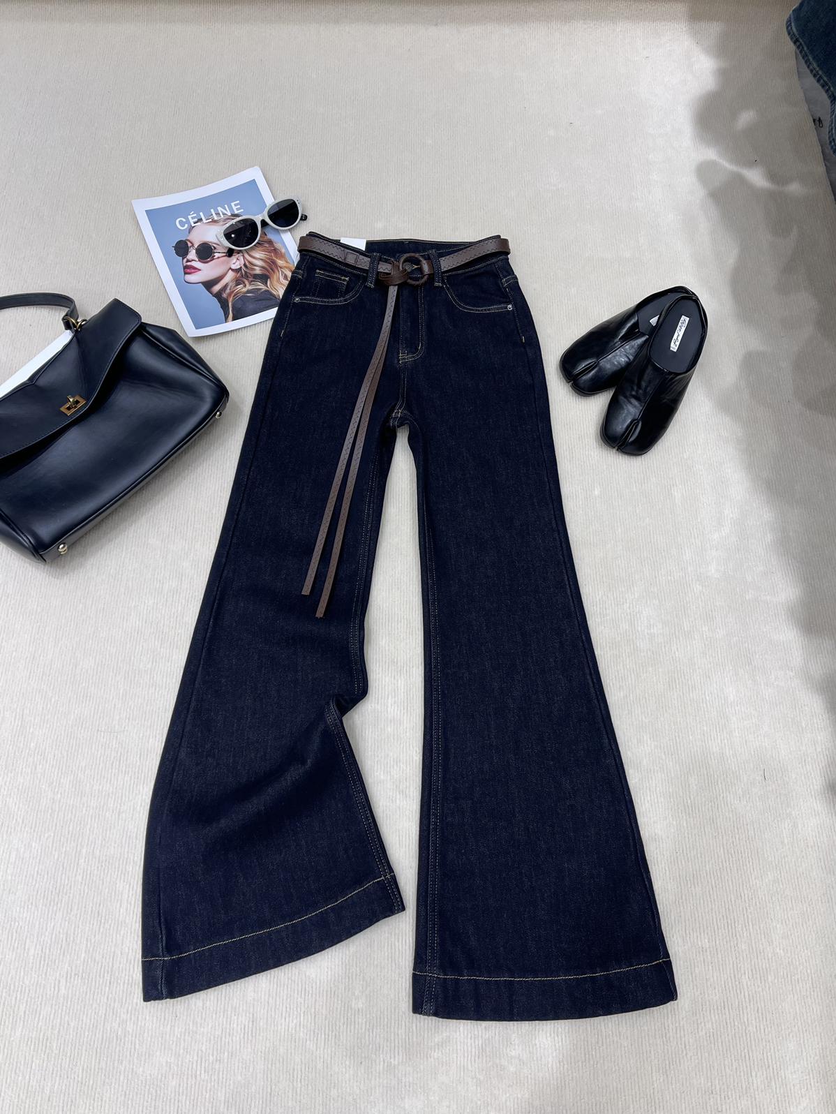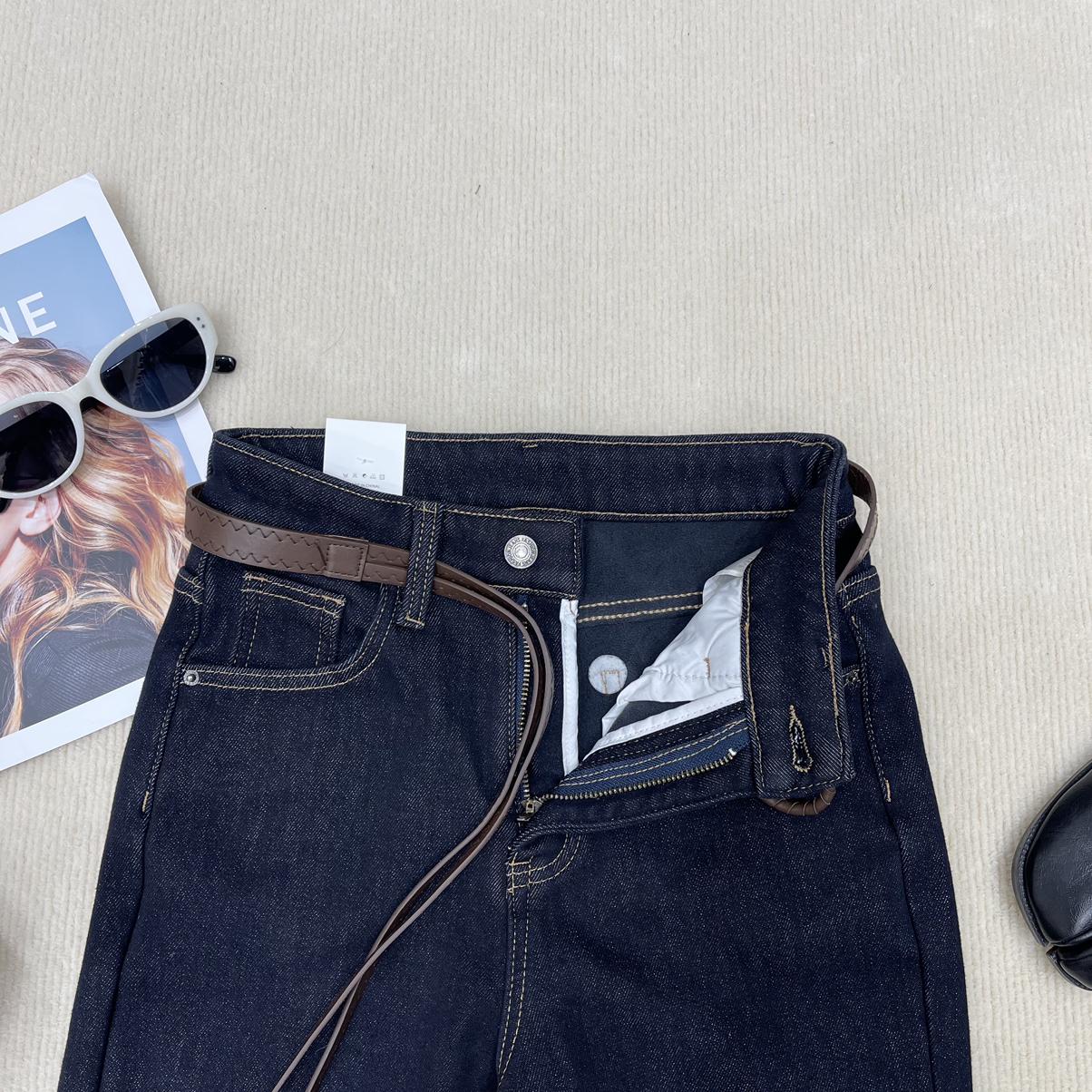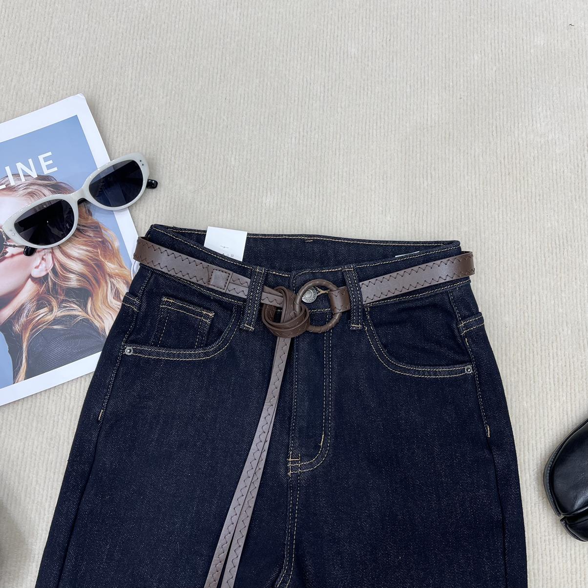 【C7686】冬季加厚保暖複合密密絨修身顯瘦顯腿長彈力喇叭褲牛仔褲(配腰帶)