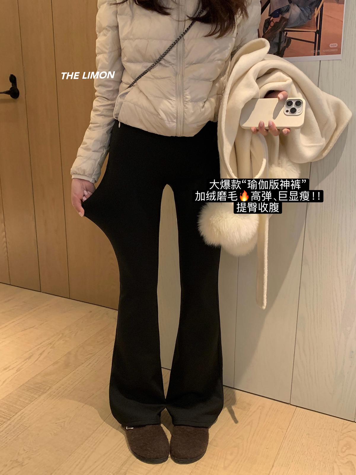 【C7680】巨顯瘦高彈磨毛加絨微喇瑜伽褲休閒褲