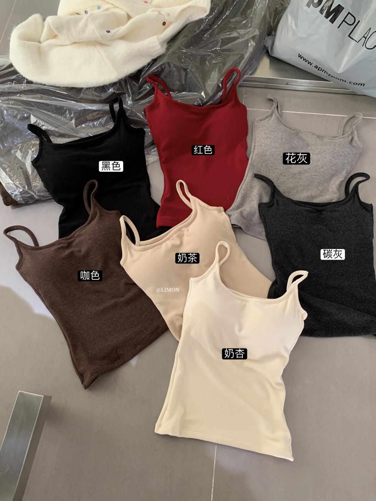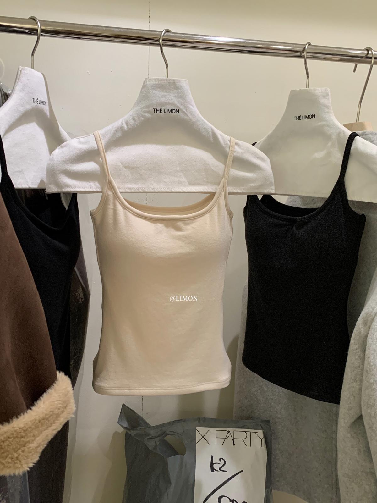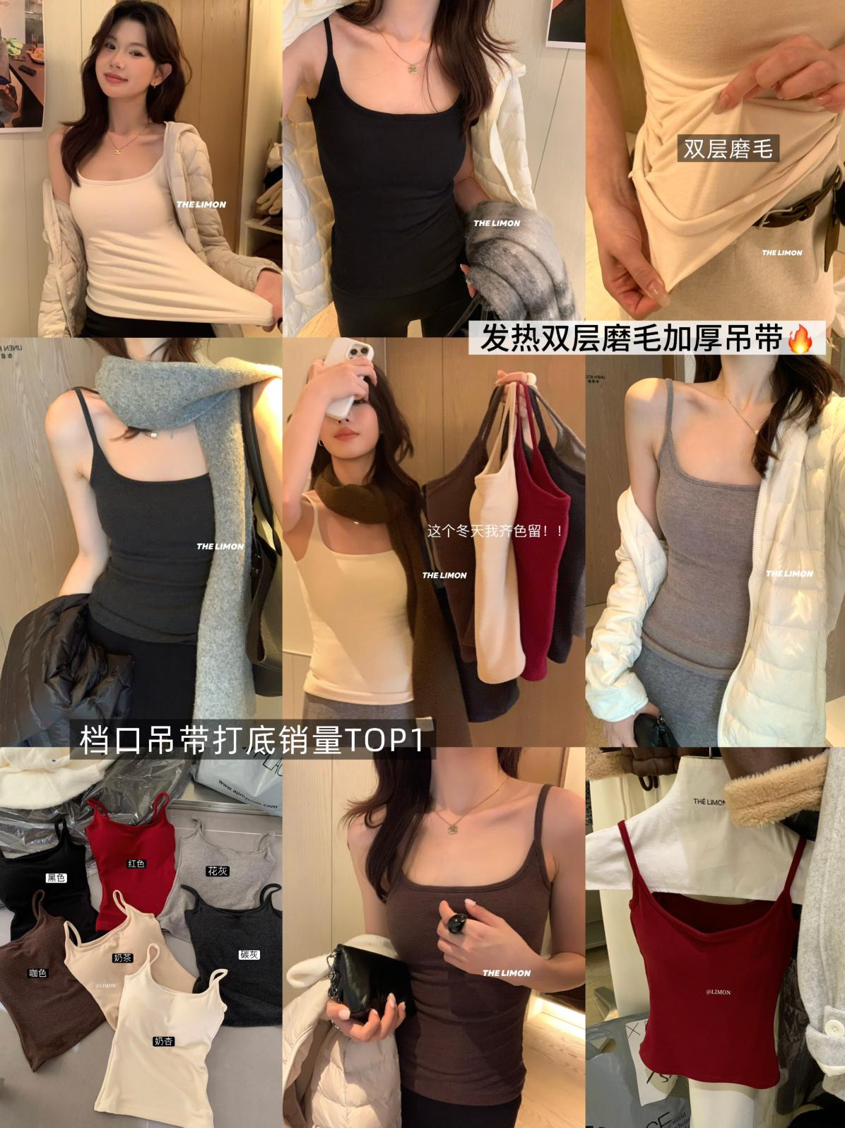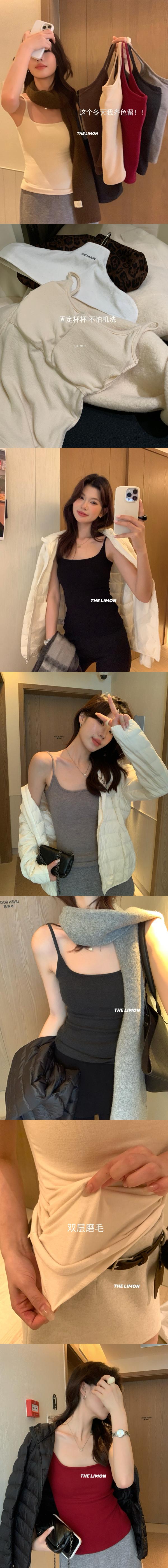 【C7681】加熱雙層磨毛高彈百搭吊帶背心(可拆卸胸墊)