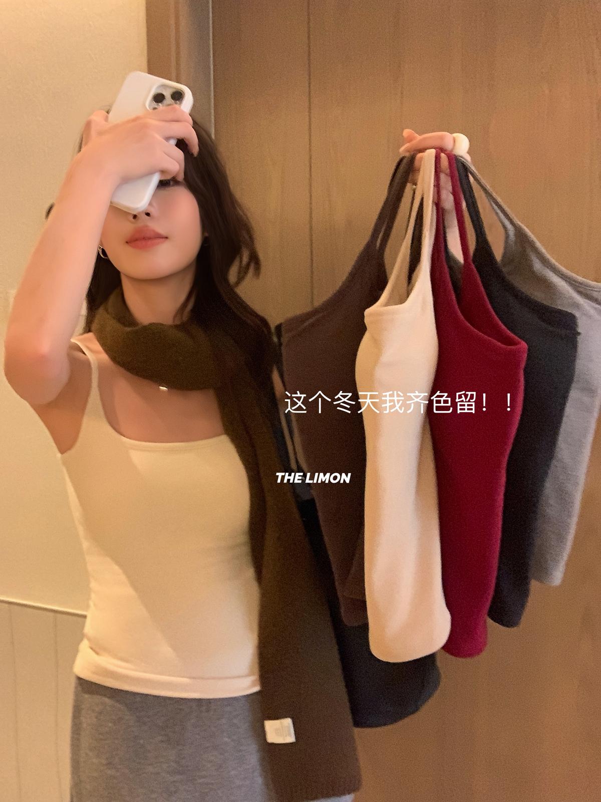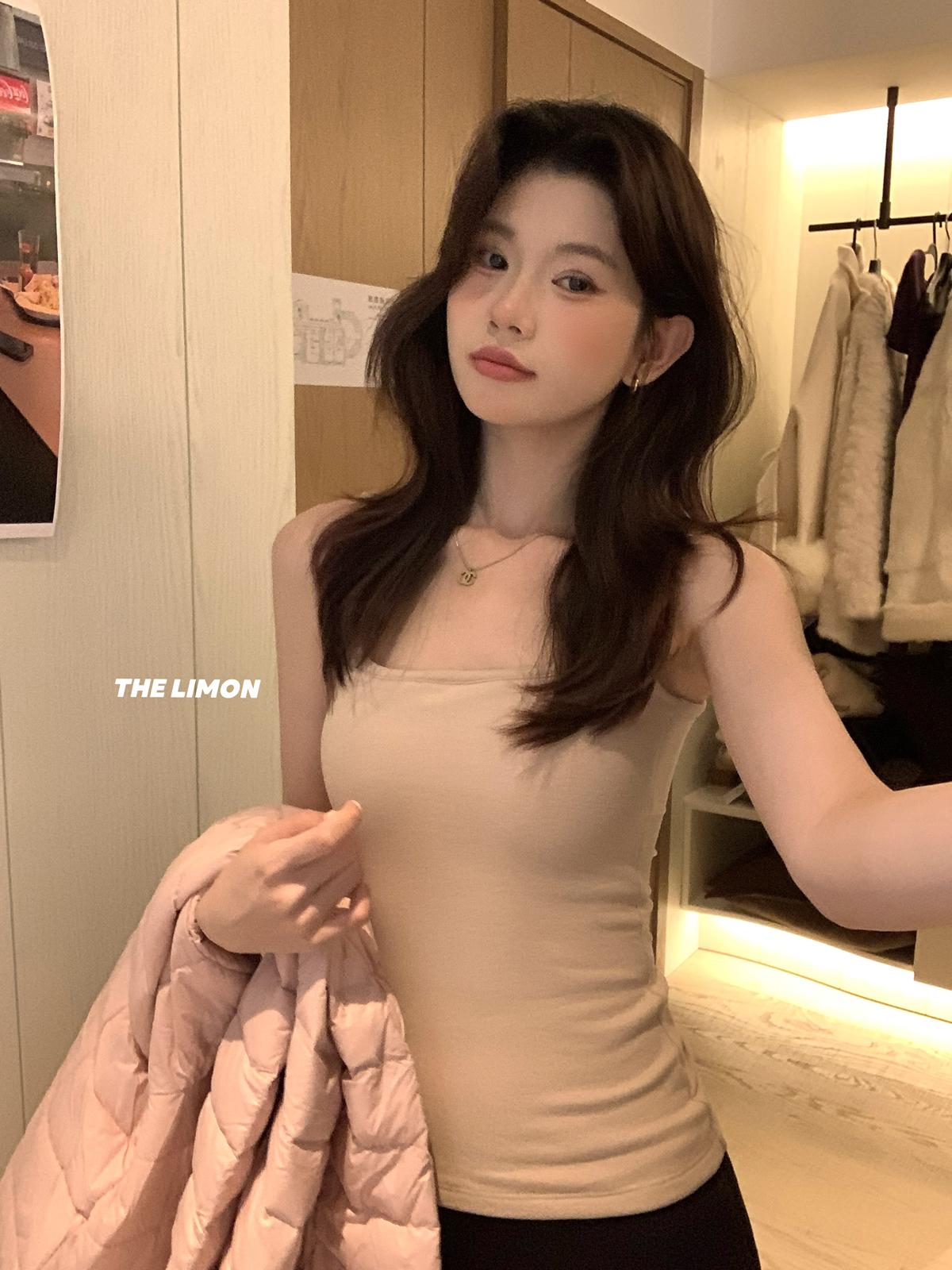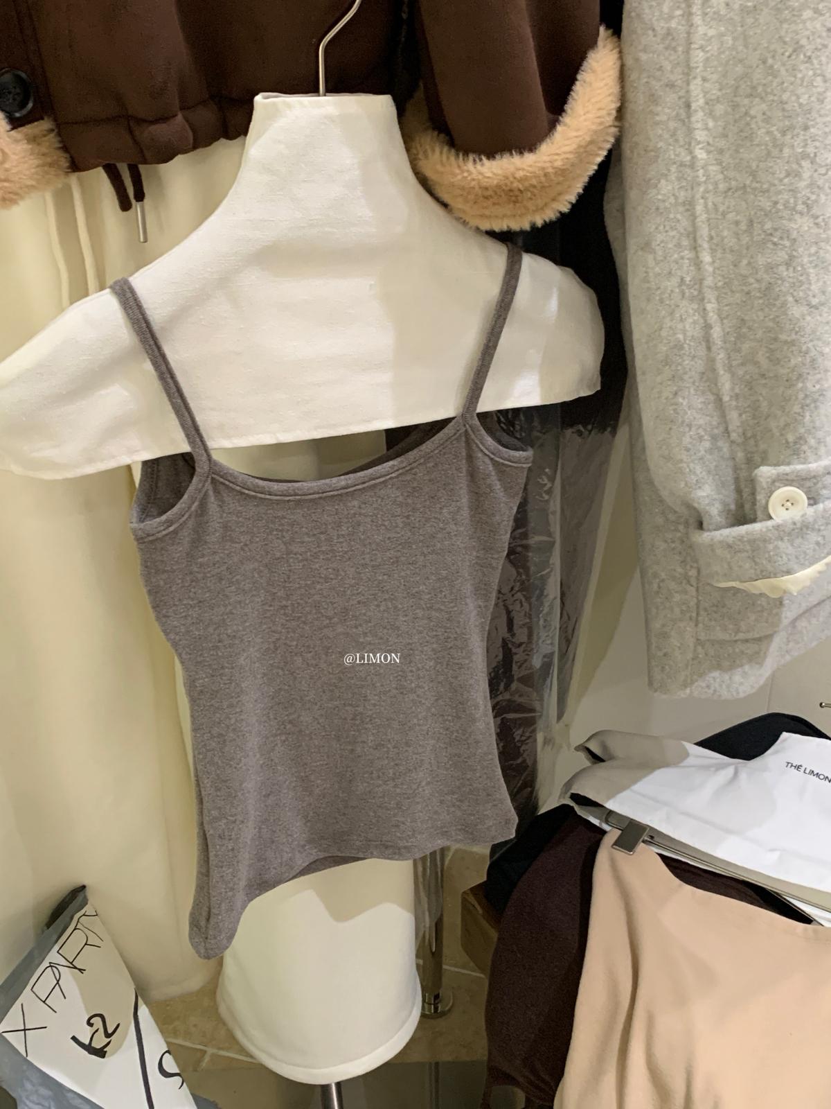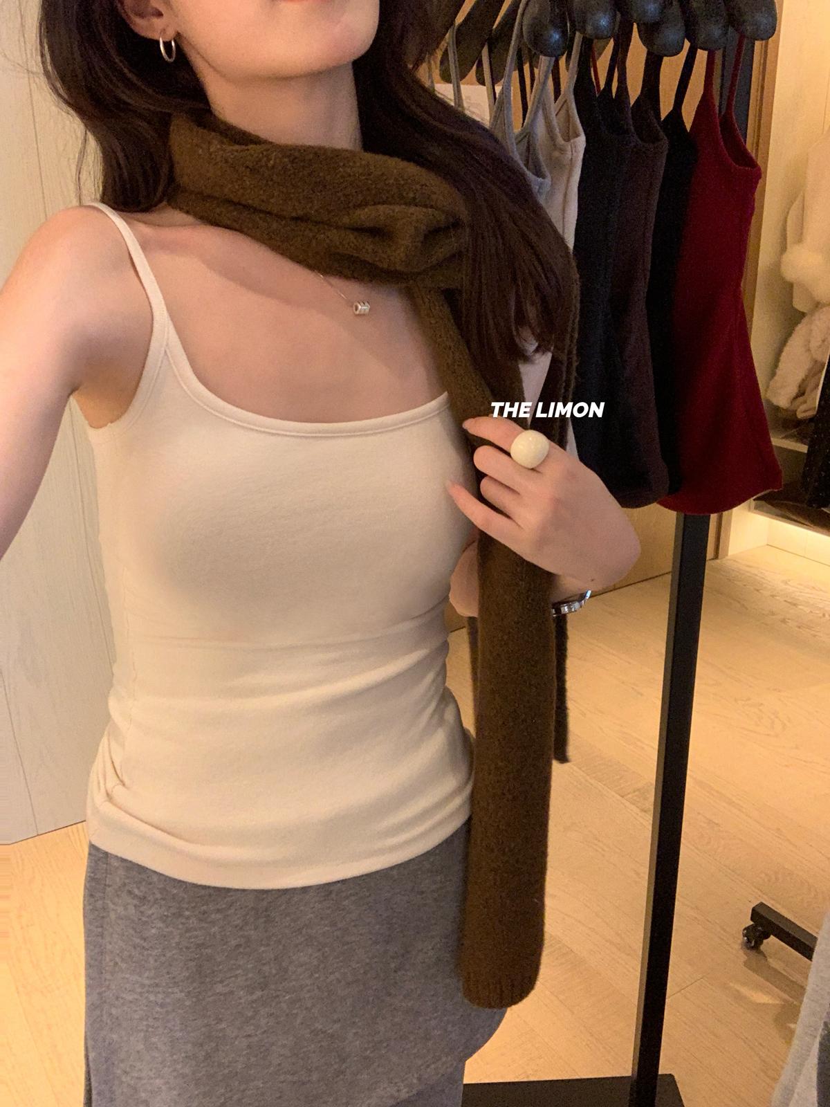 【C7681】加熱雙層磨毛高彈百搭吊帶背心(可拆卸胸墊)