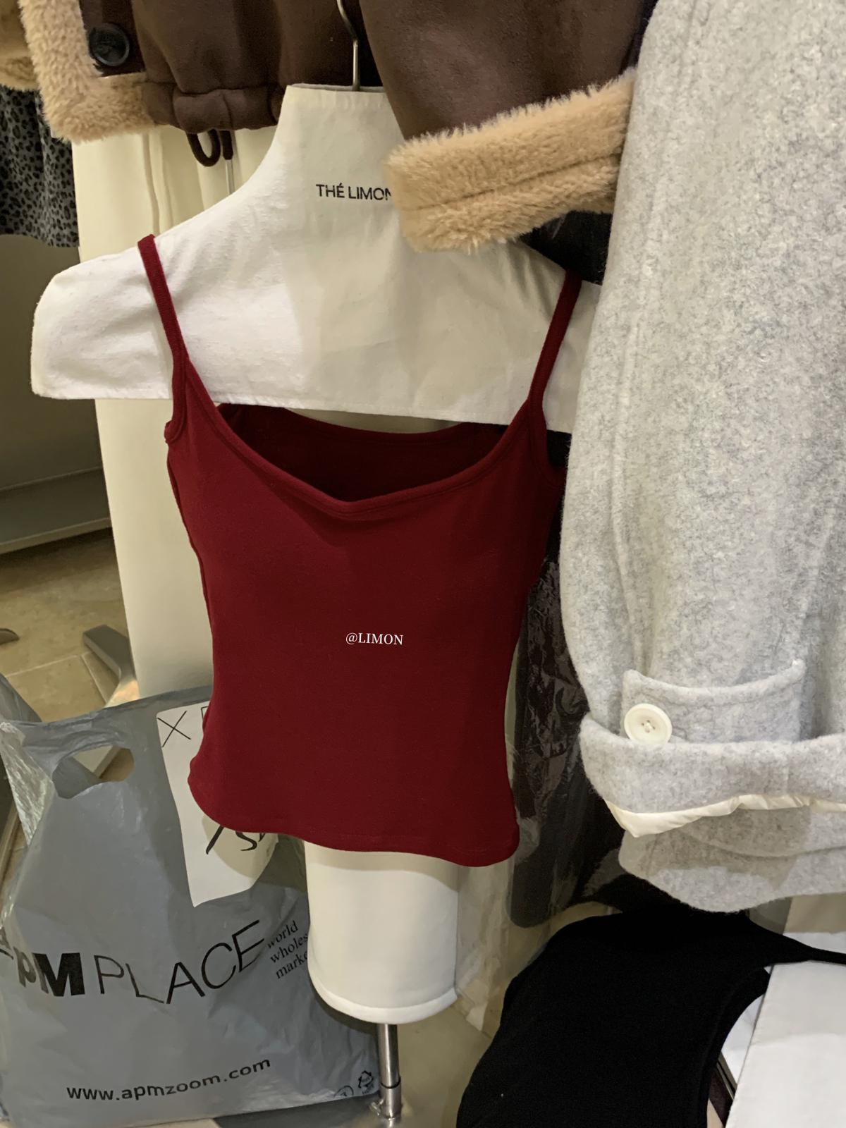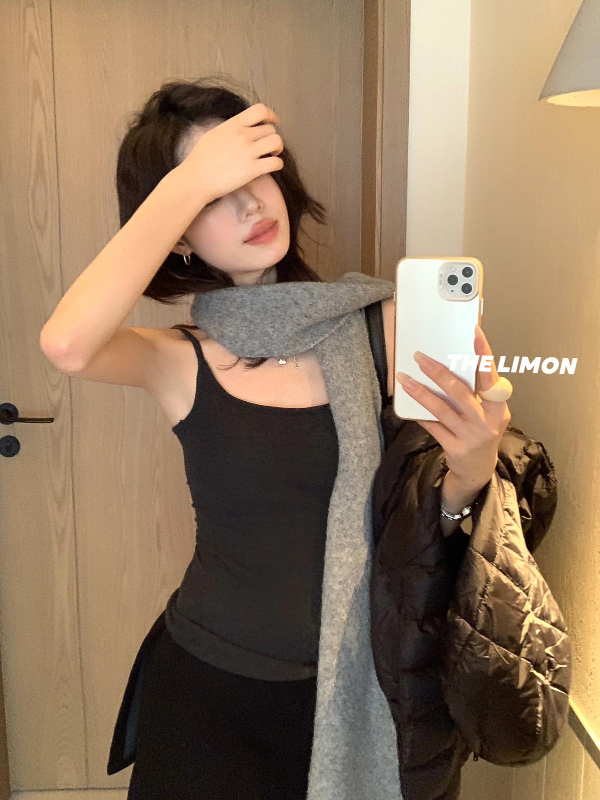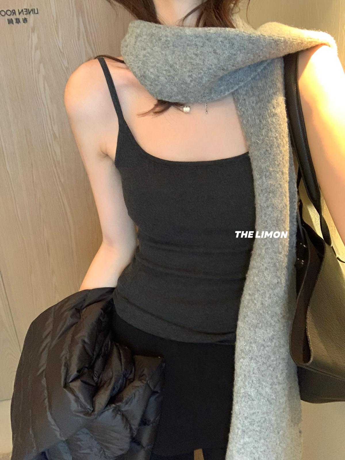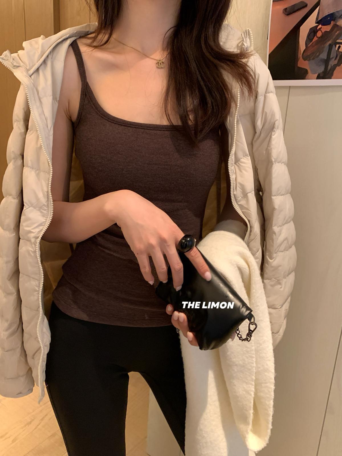 【C7681】加熱雙層磨毛高彈百搭吊帶背心(可拆卸胸墊)