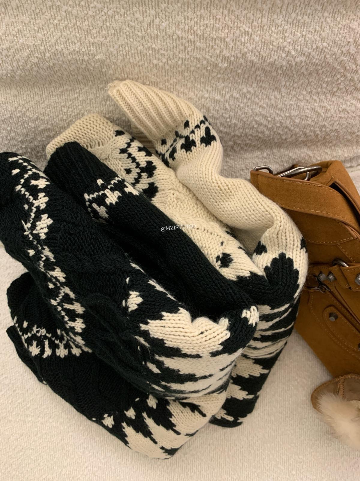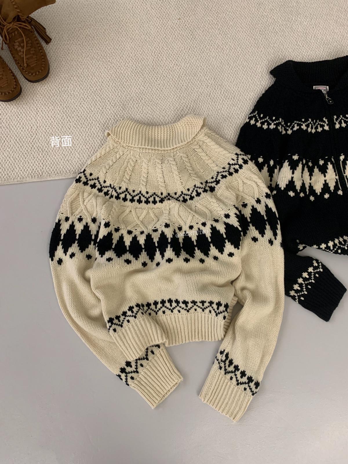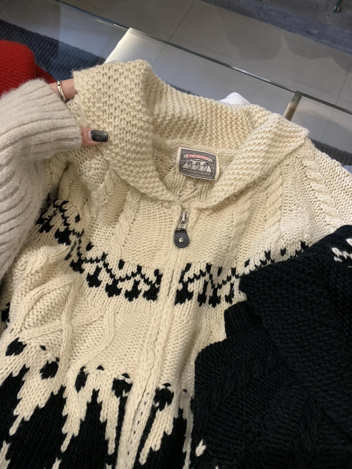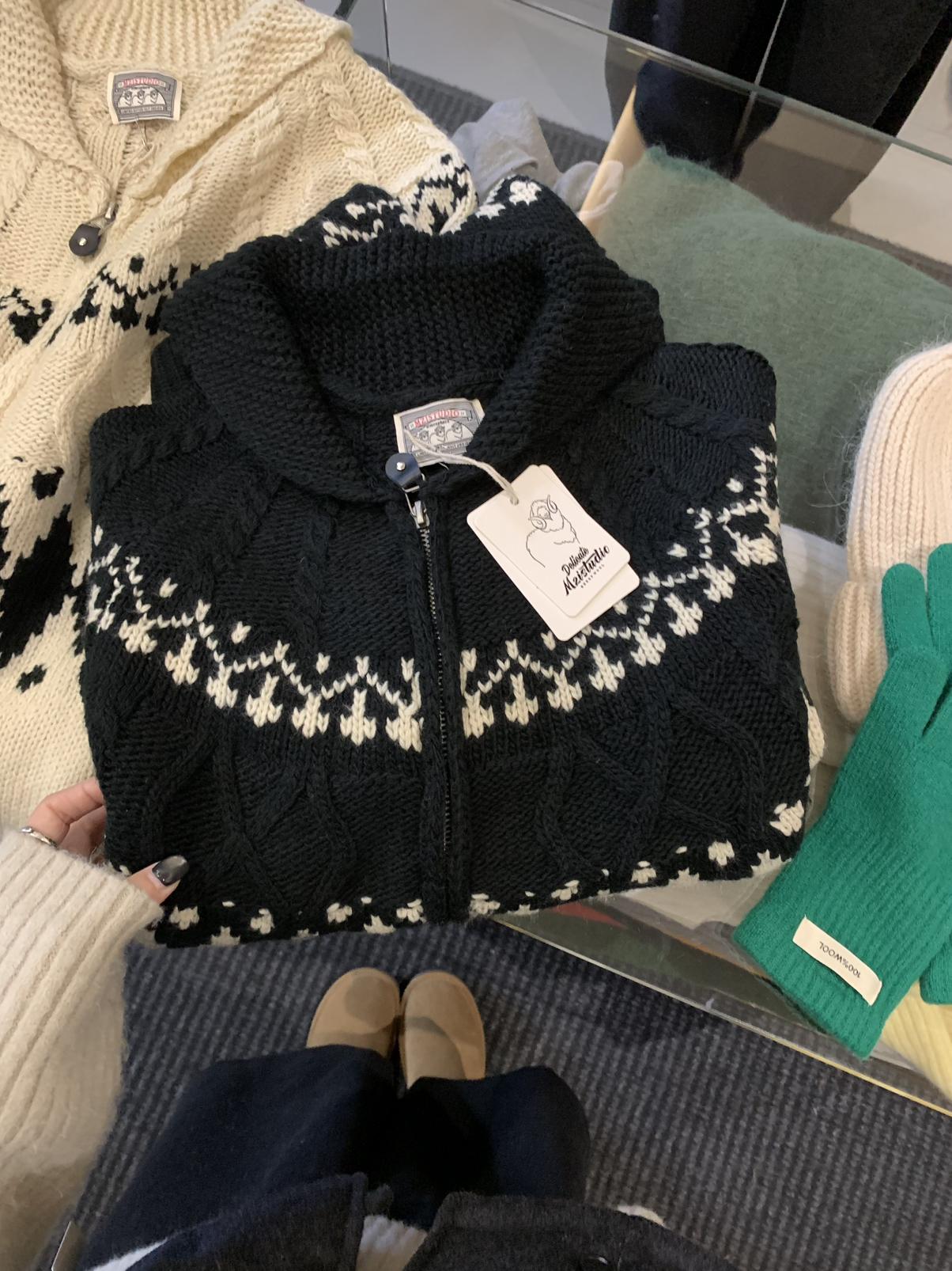 【C7683】冬日氛圍費爾島提花復古情懷翻領拉鍊外套保暖毛衣
