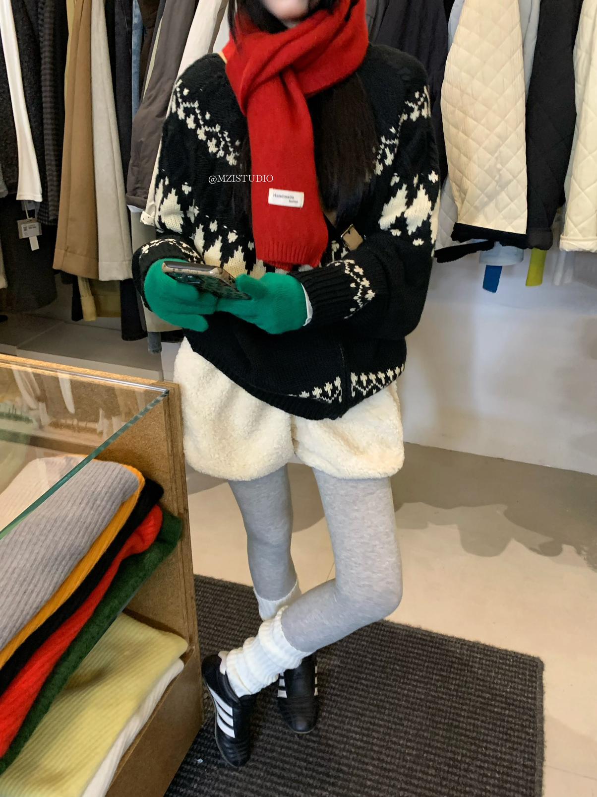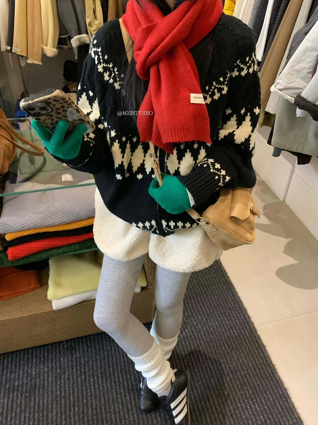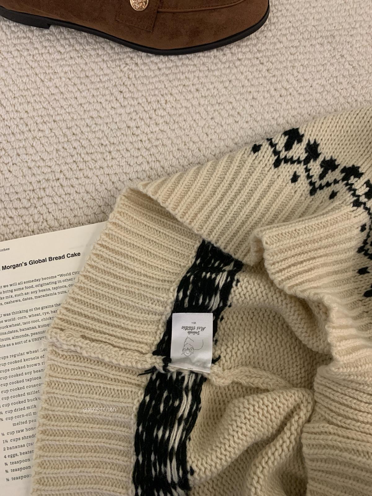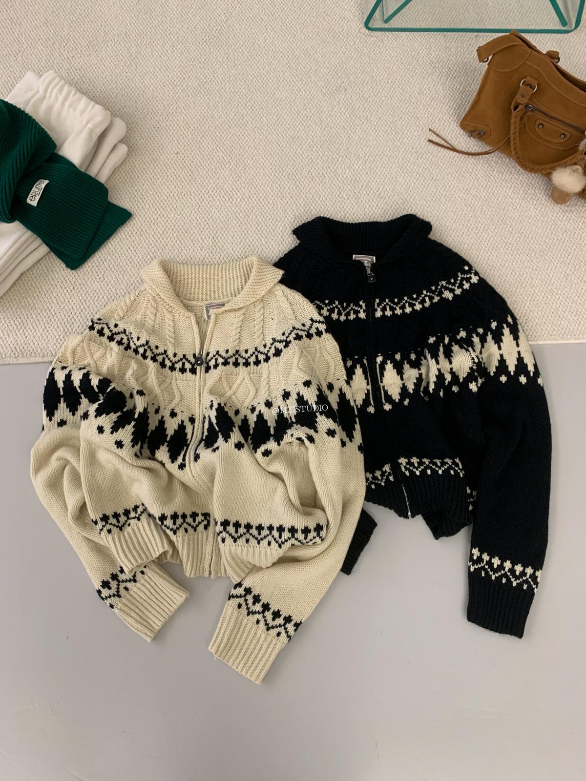 【C7683】冬日氛圍費爾島提花復古情懷翻領拉鍊外套保暖毛衣