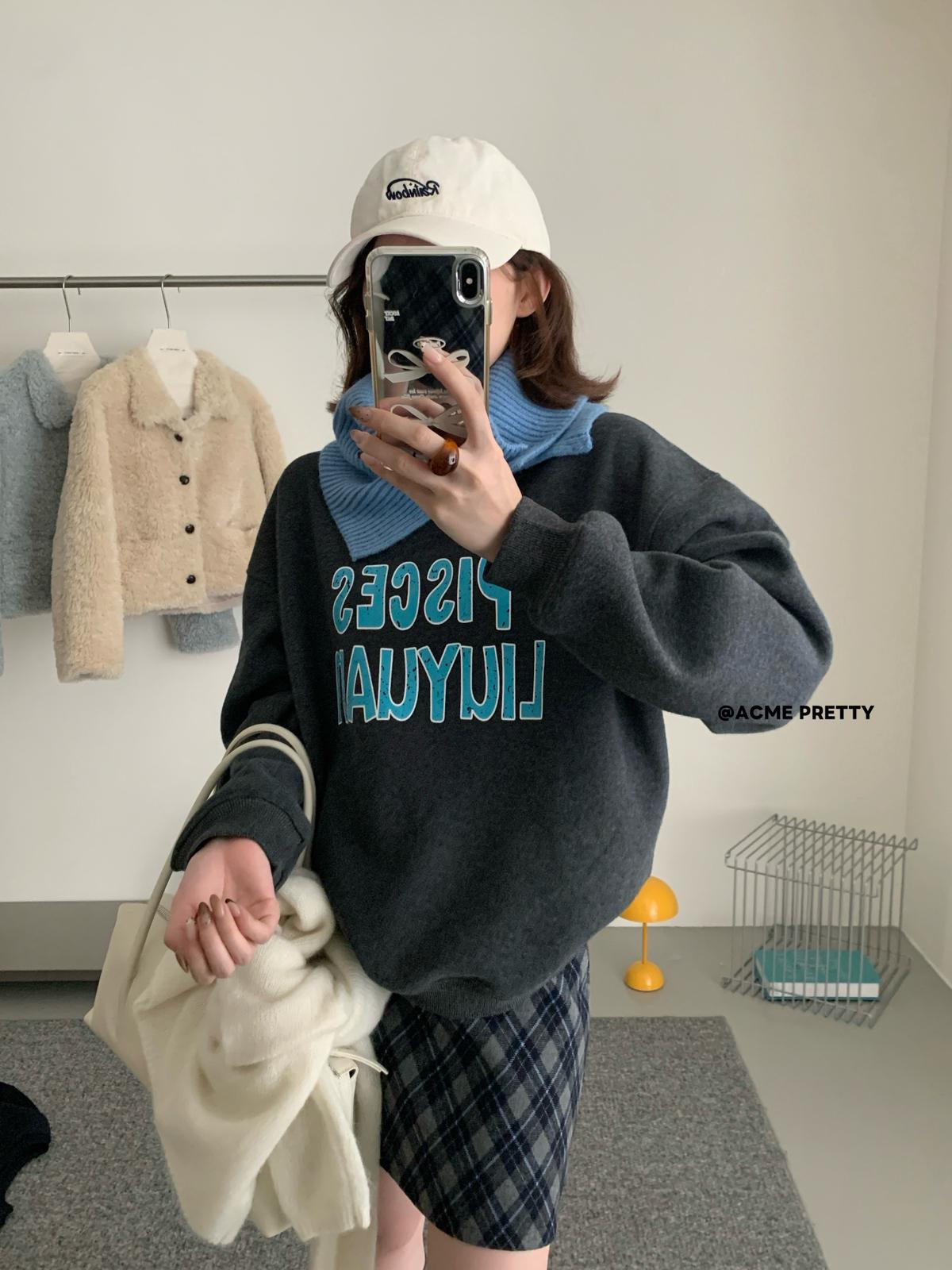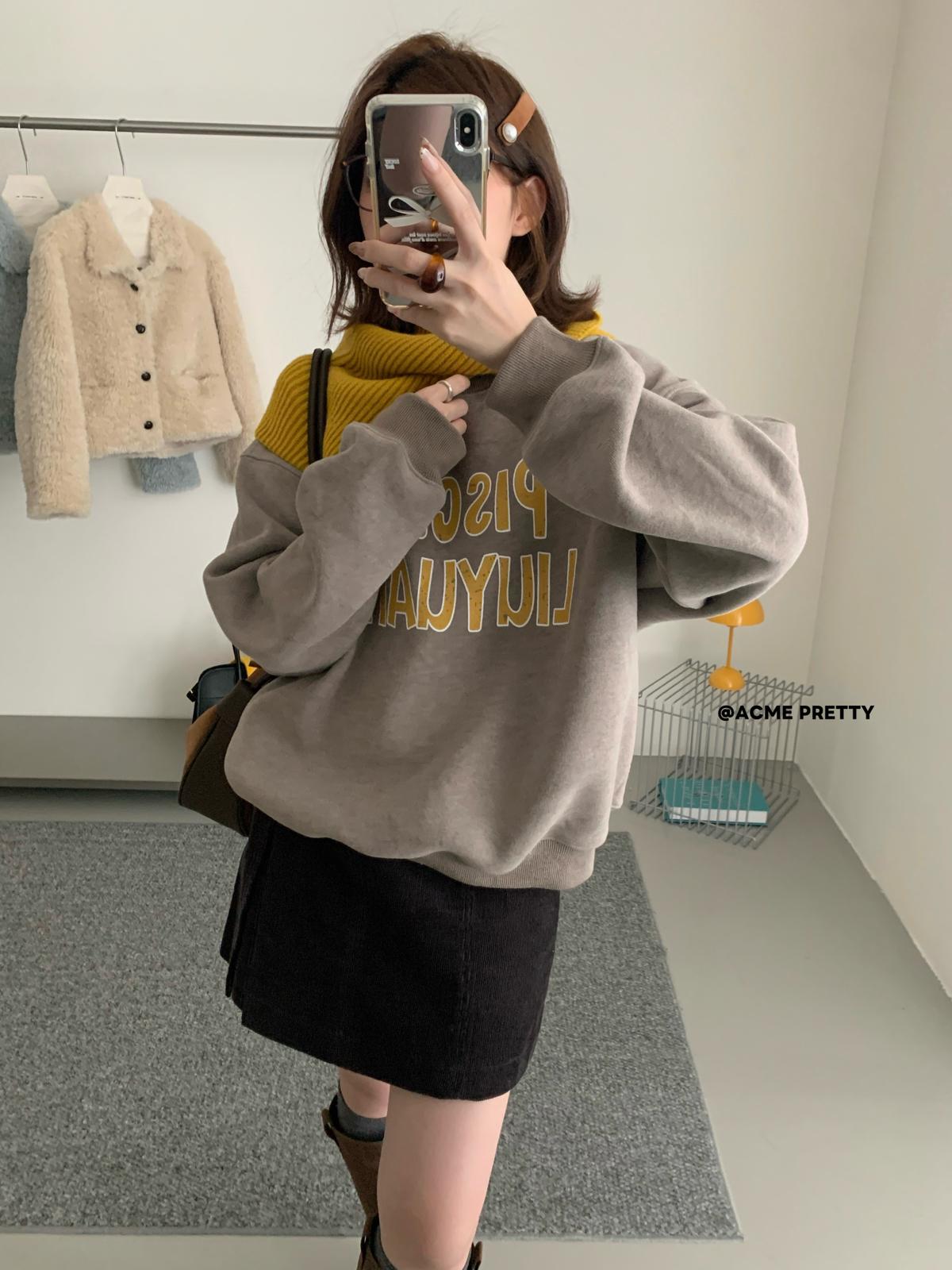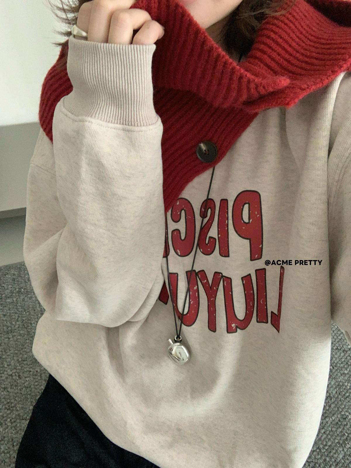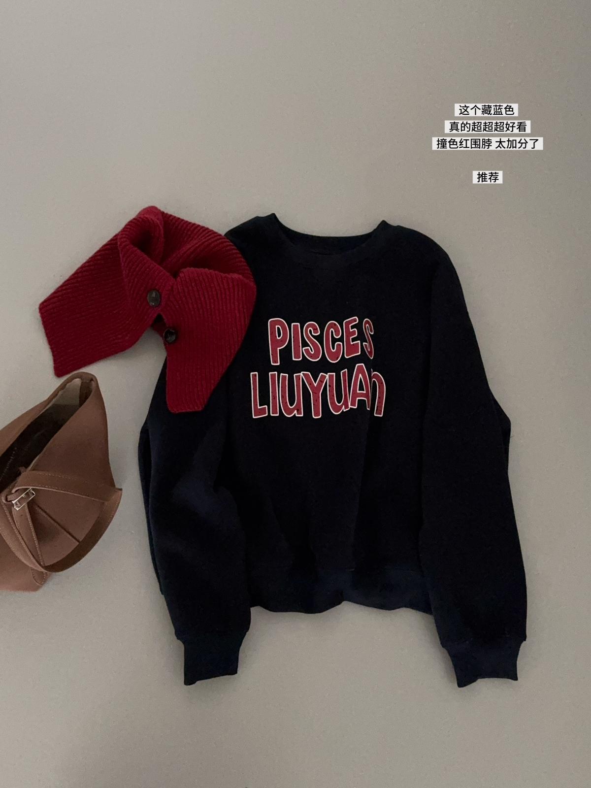 【C7691】撞色字母加絨衛衣!衛衣(配圍脖)