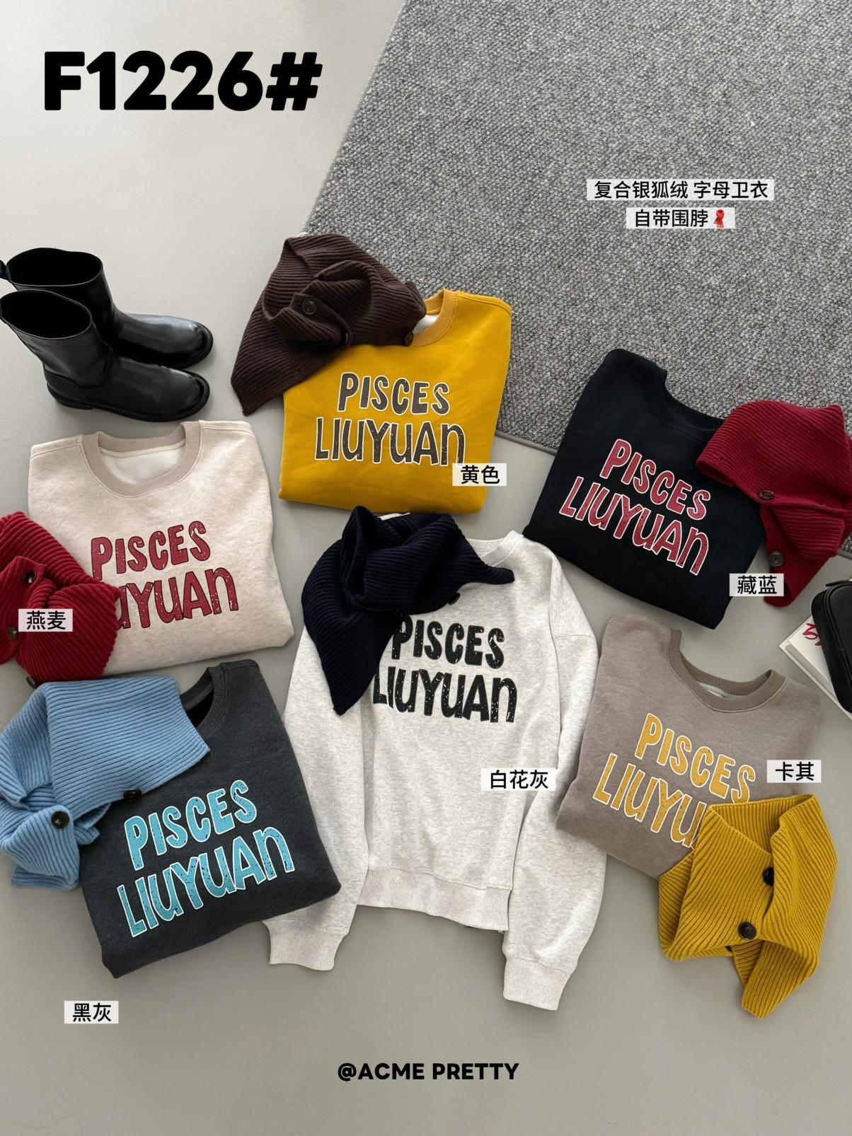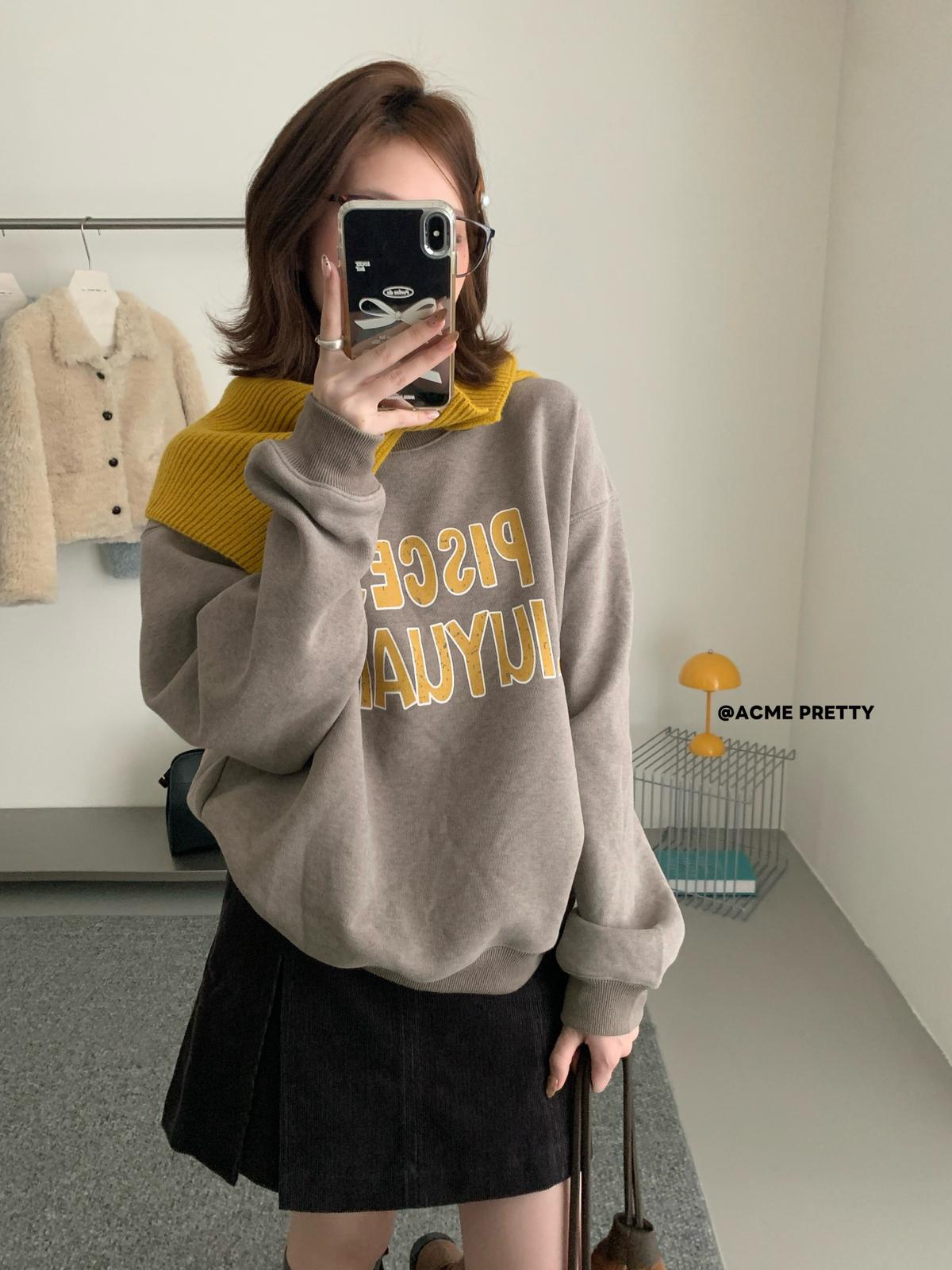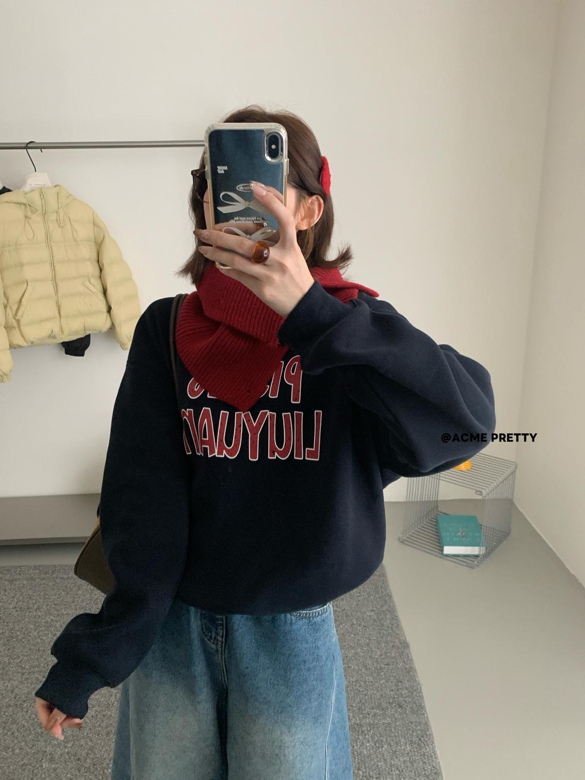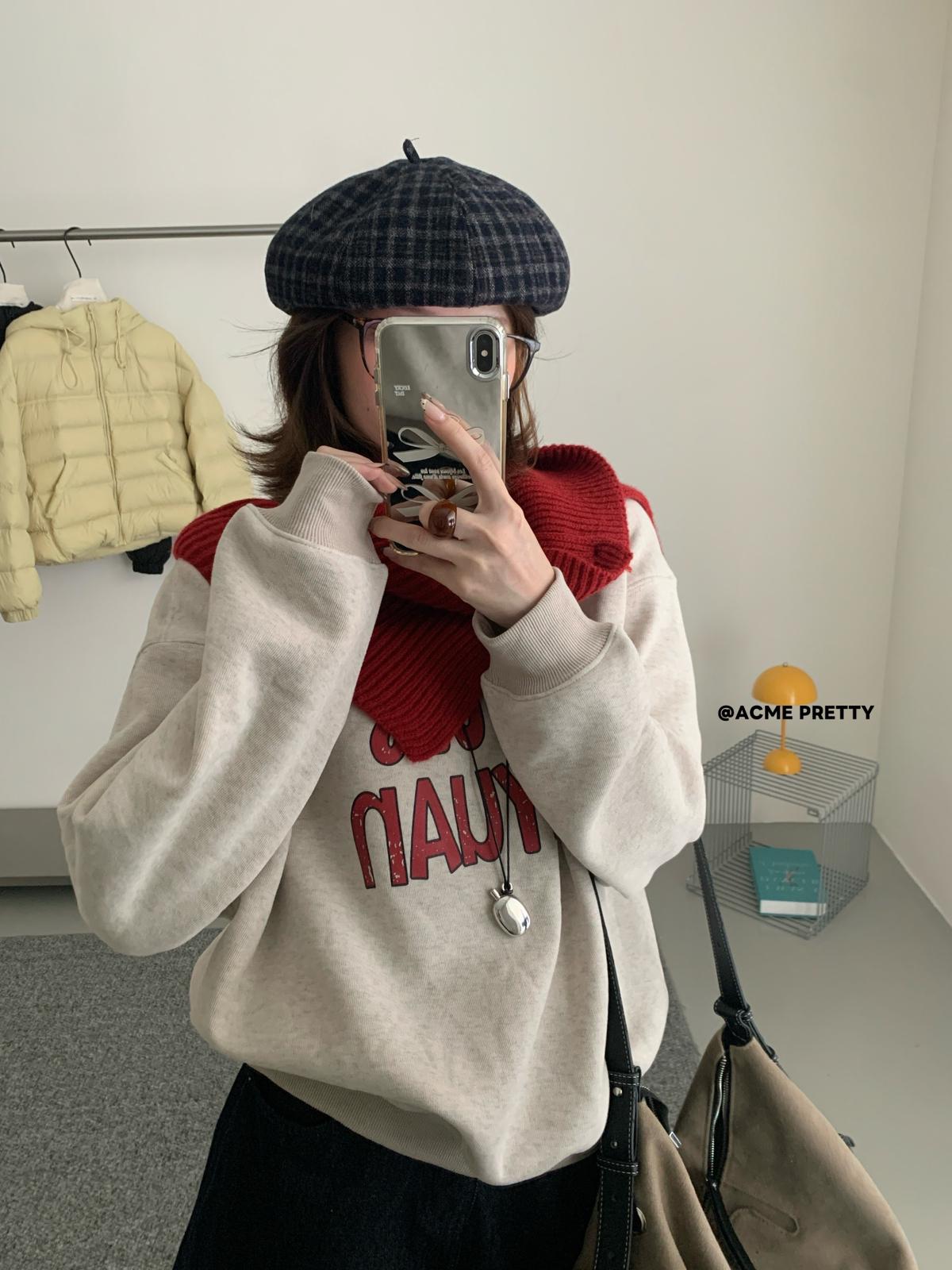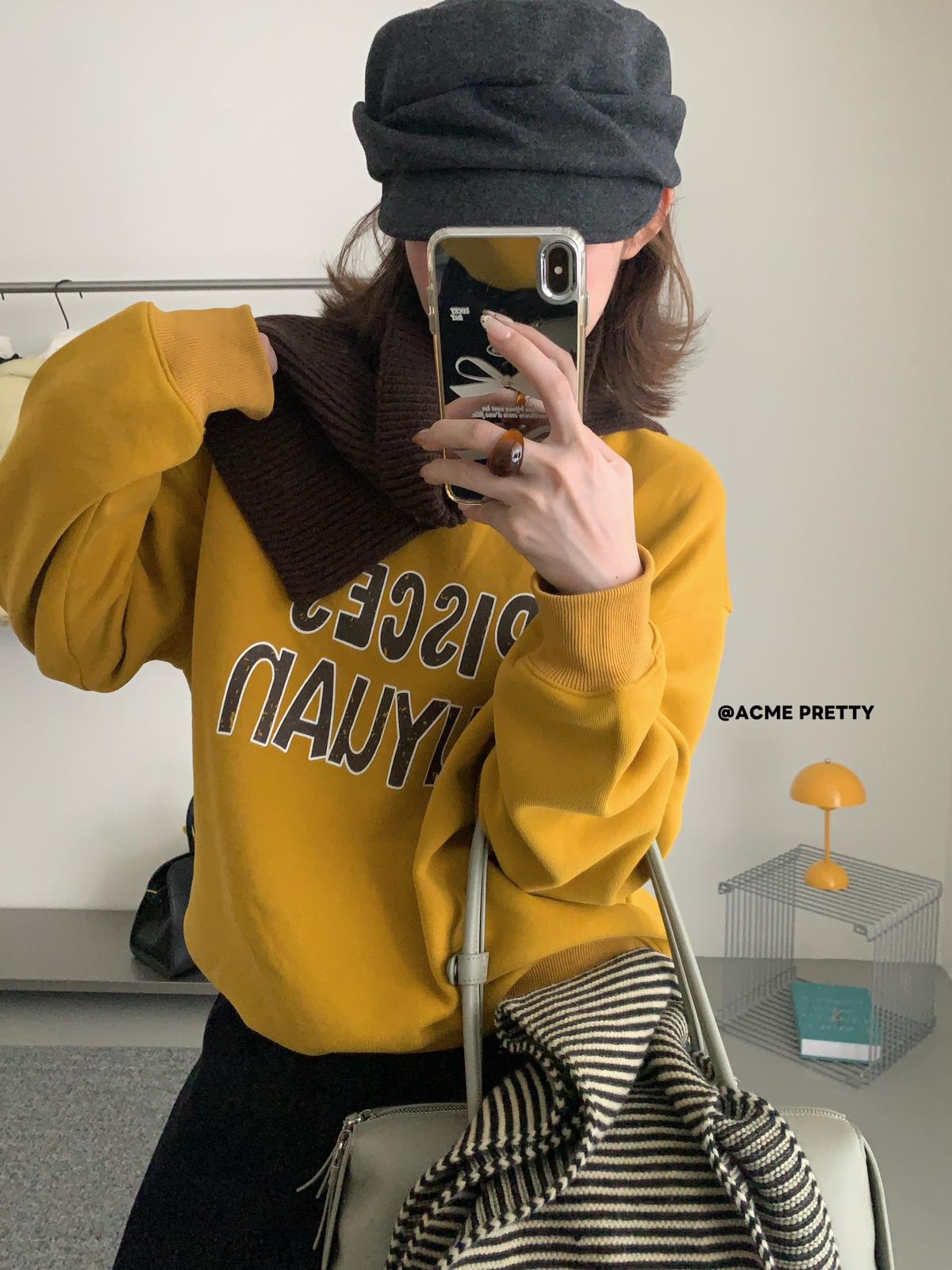 【C7691】撞色字母加絨衛衣!衛衣(配圍脖)