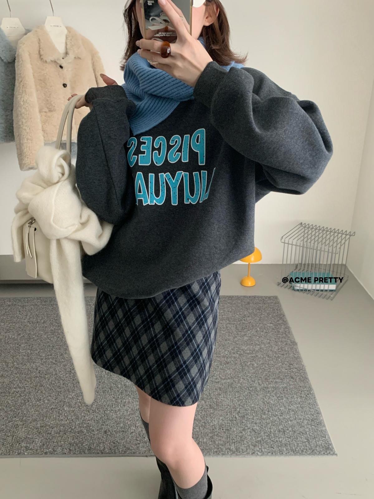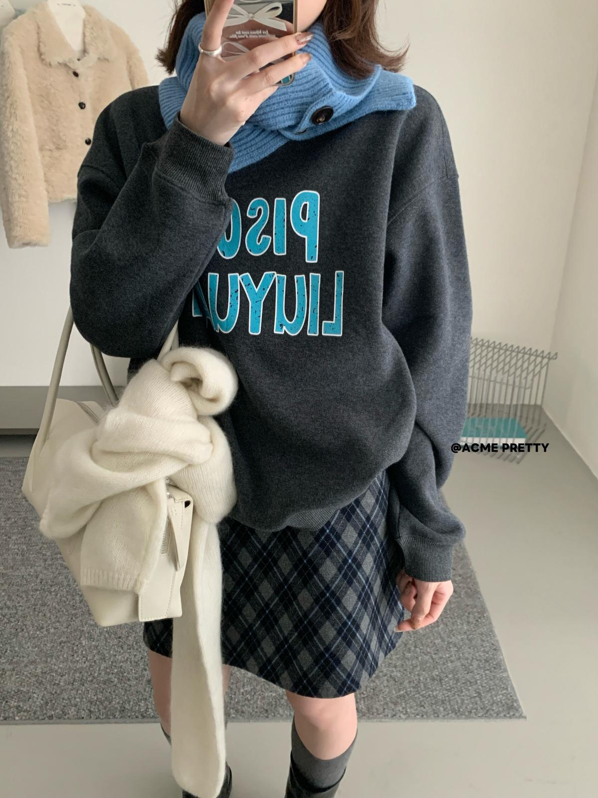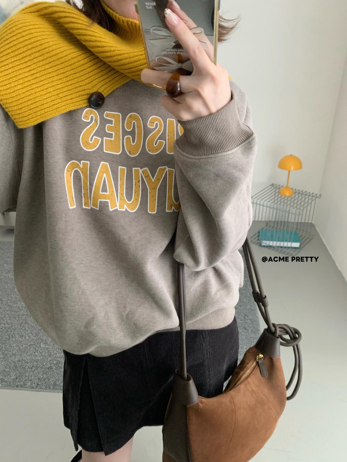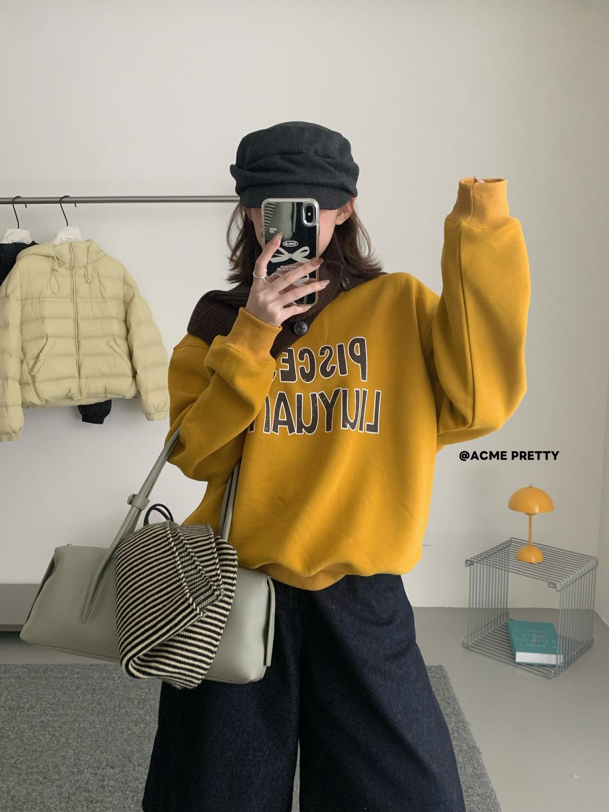 【C7691】撞色字母加絨衛衣!衛衣(配圍脖)