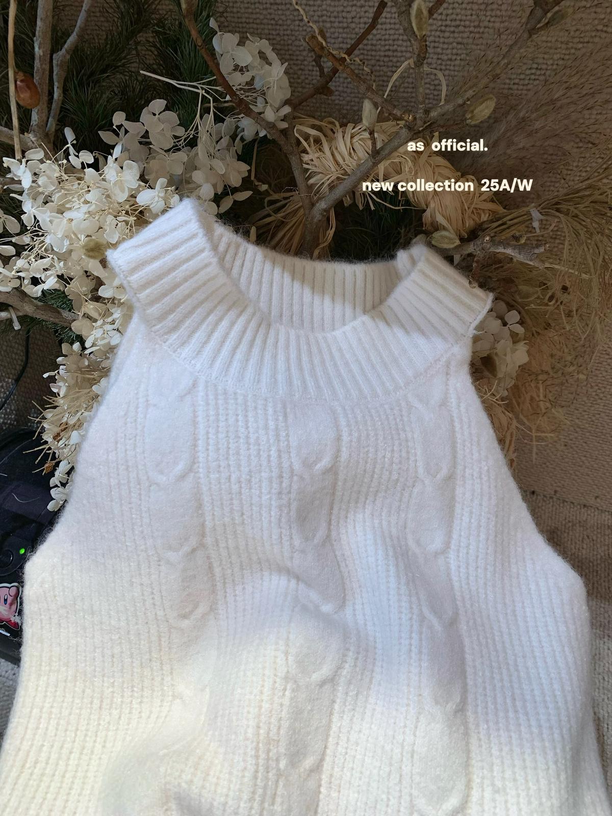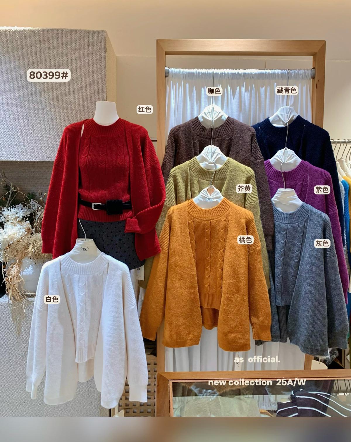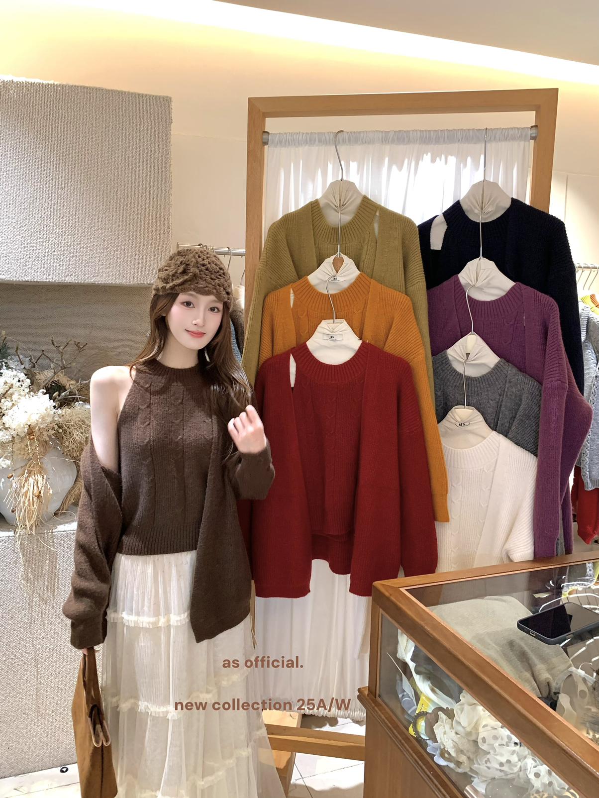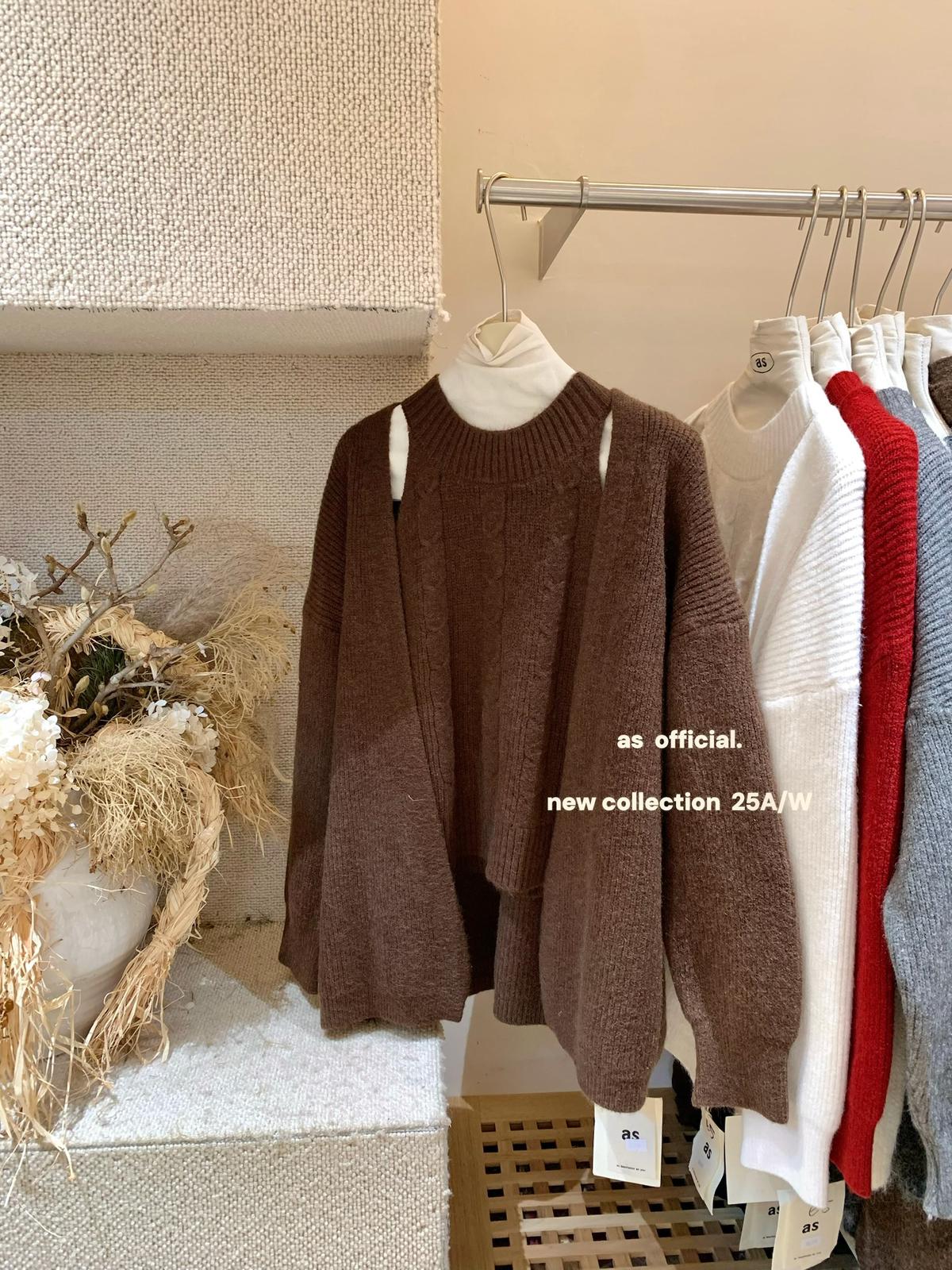 3. 【C7669】街頭chill——自帶腔調時髦感·掛脖麻花背心+無領毛衣開衫套裝(多色入@)