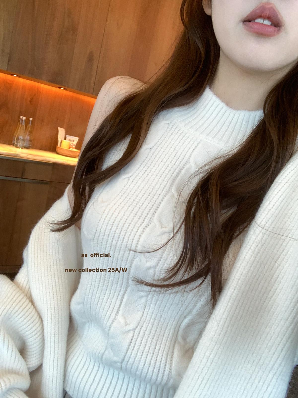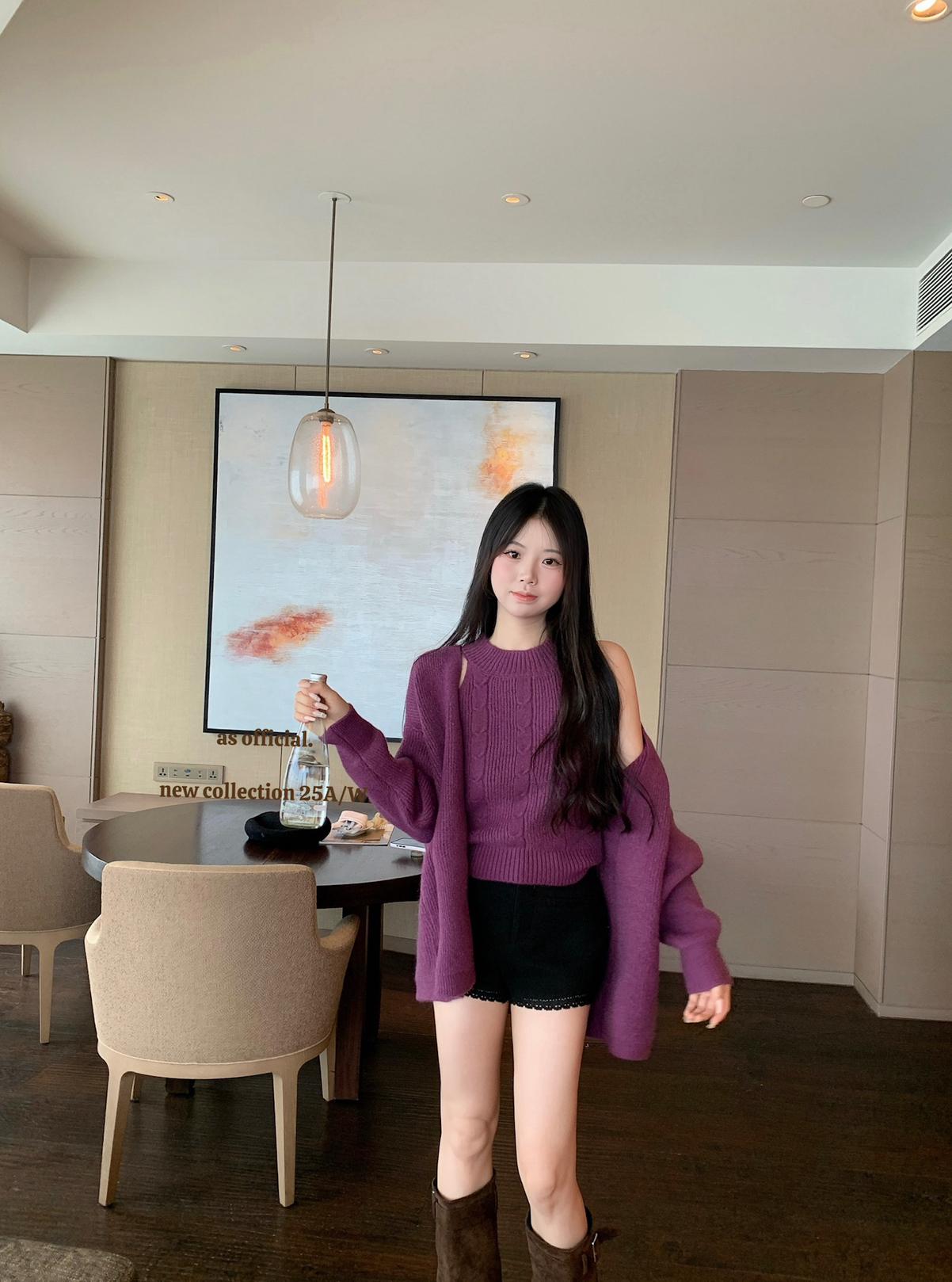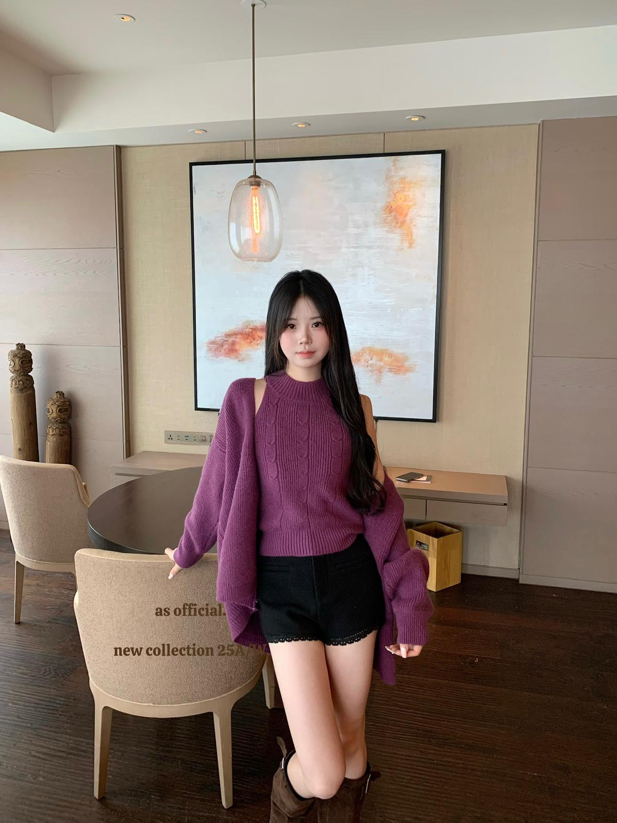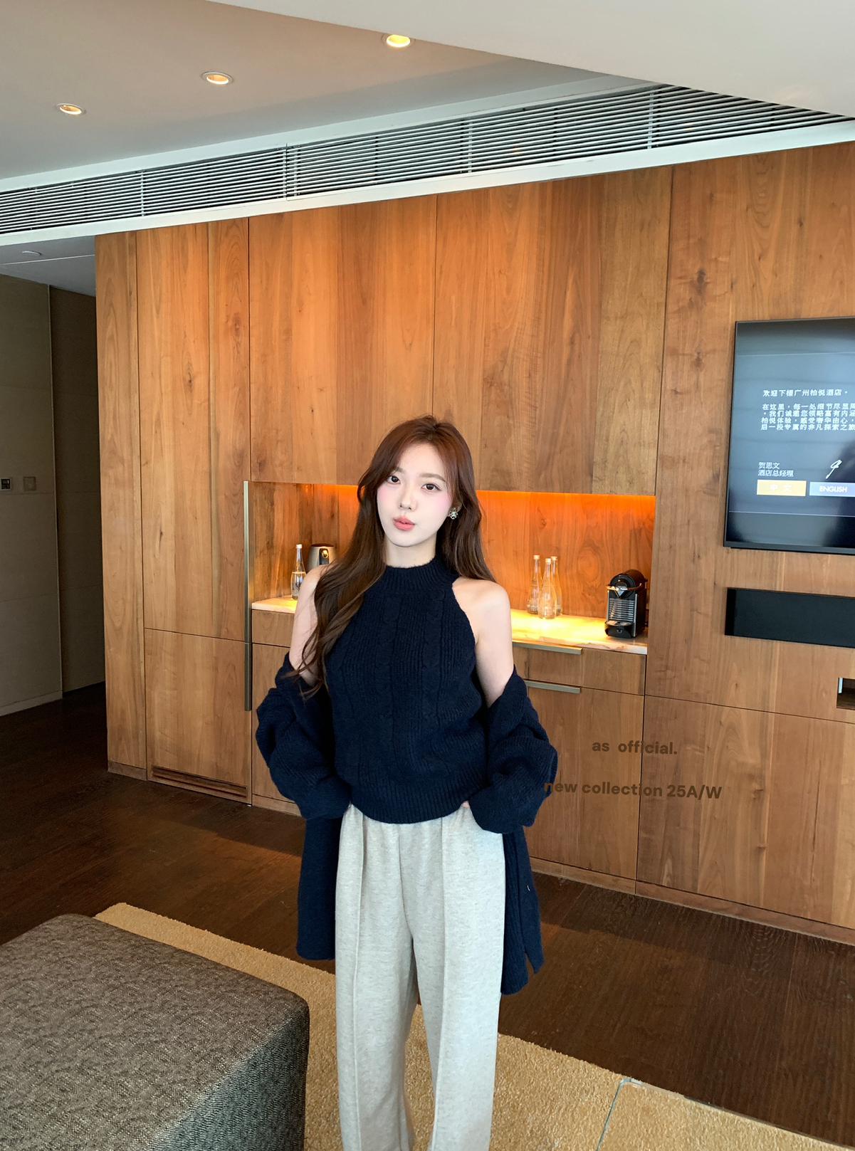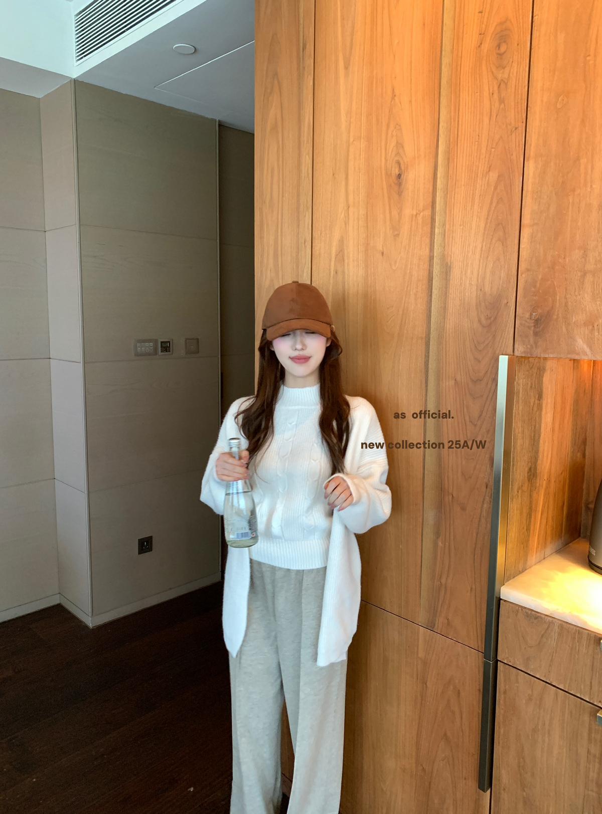 3. 【C7669】街頭chill——自帶腔調時髦感·掛脖麻花背心+無領毛衣開衫套裝(多色入@)