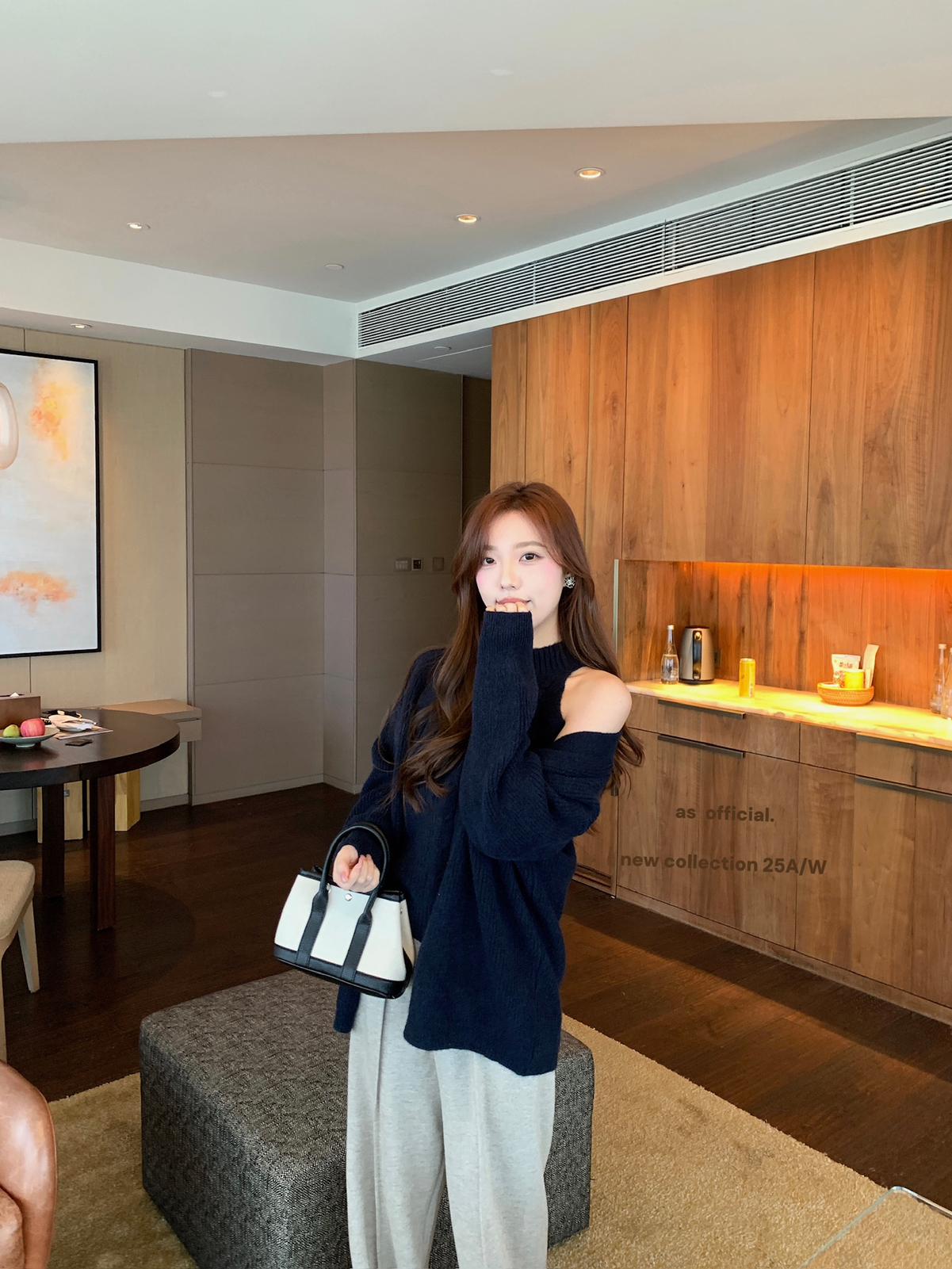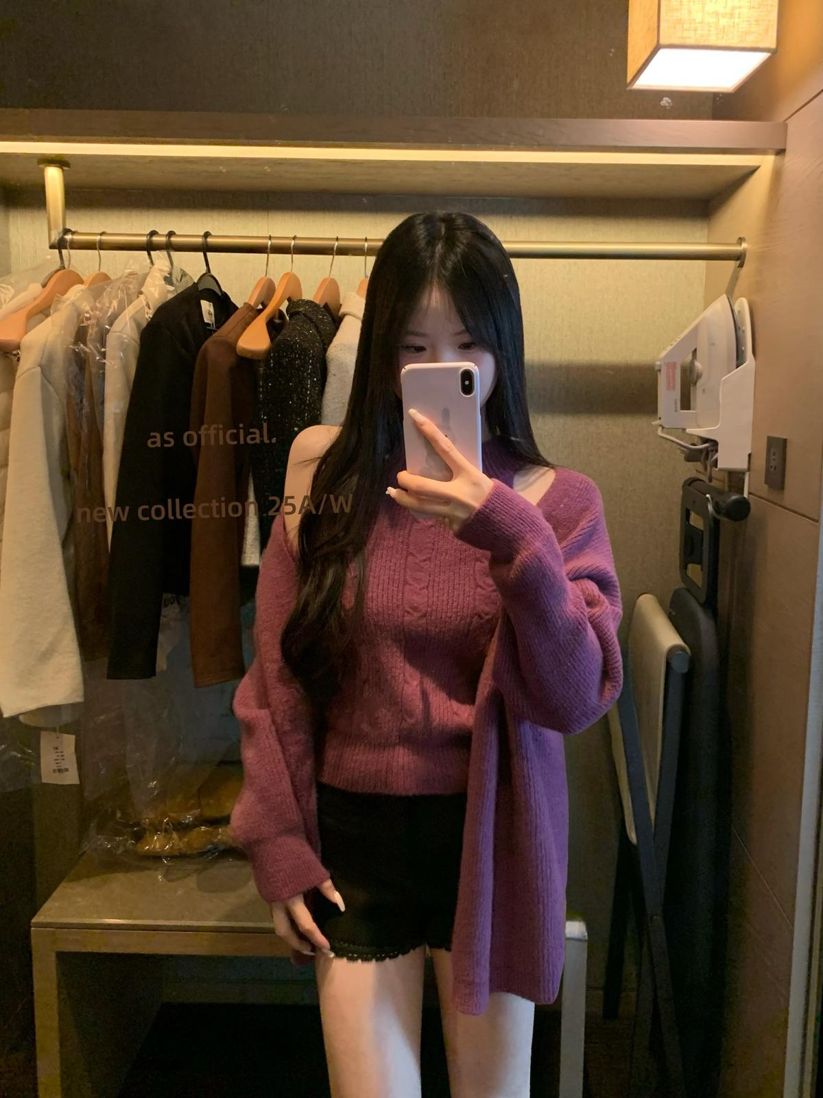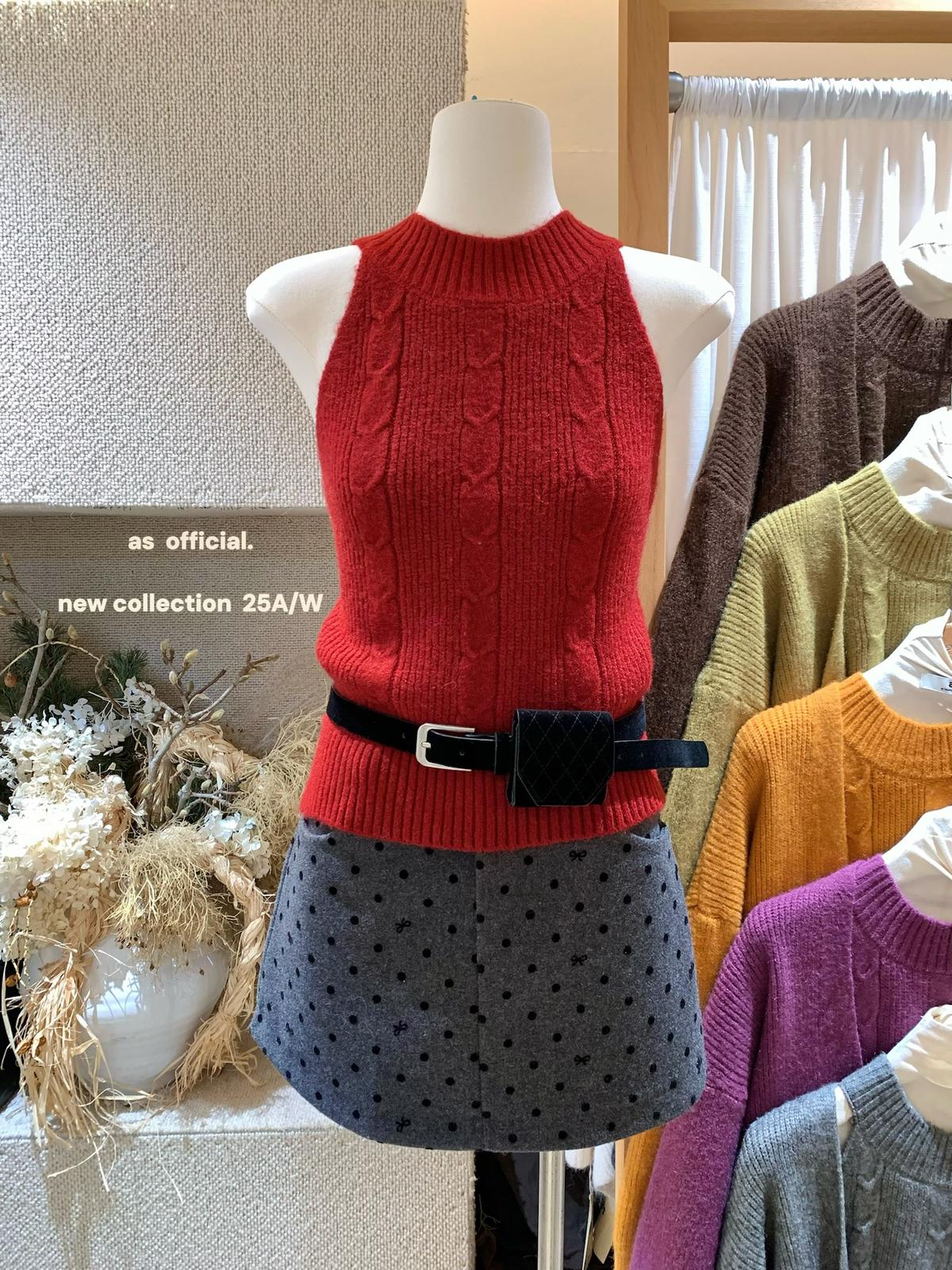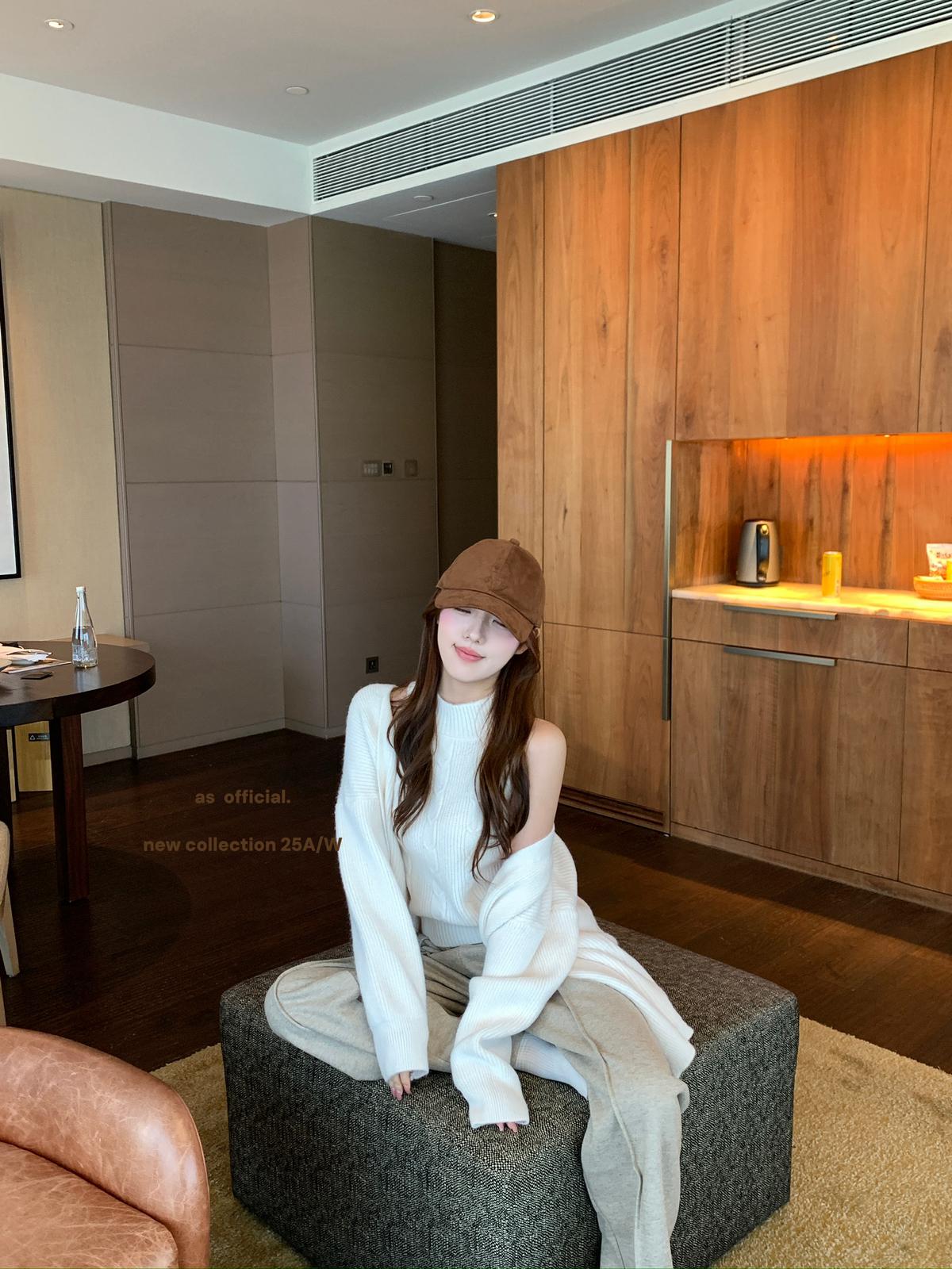 3. 【C7669】街頭chill——自帶腔調時髦感·掛脖麻花背心+無領毛衣開衫套裝(多色入@)