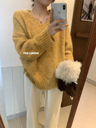 【C7678】奶fufu寬鬆慵懶百搭V領保暖毛衣(含8%羊毛)