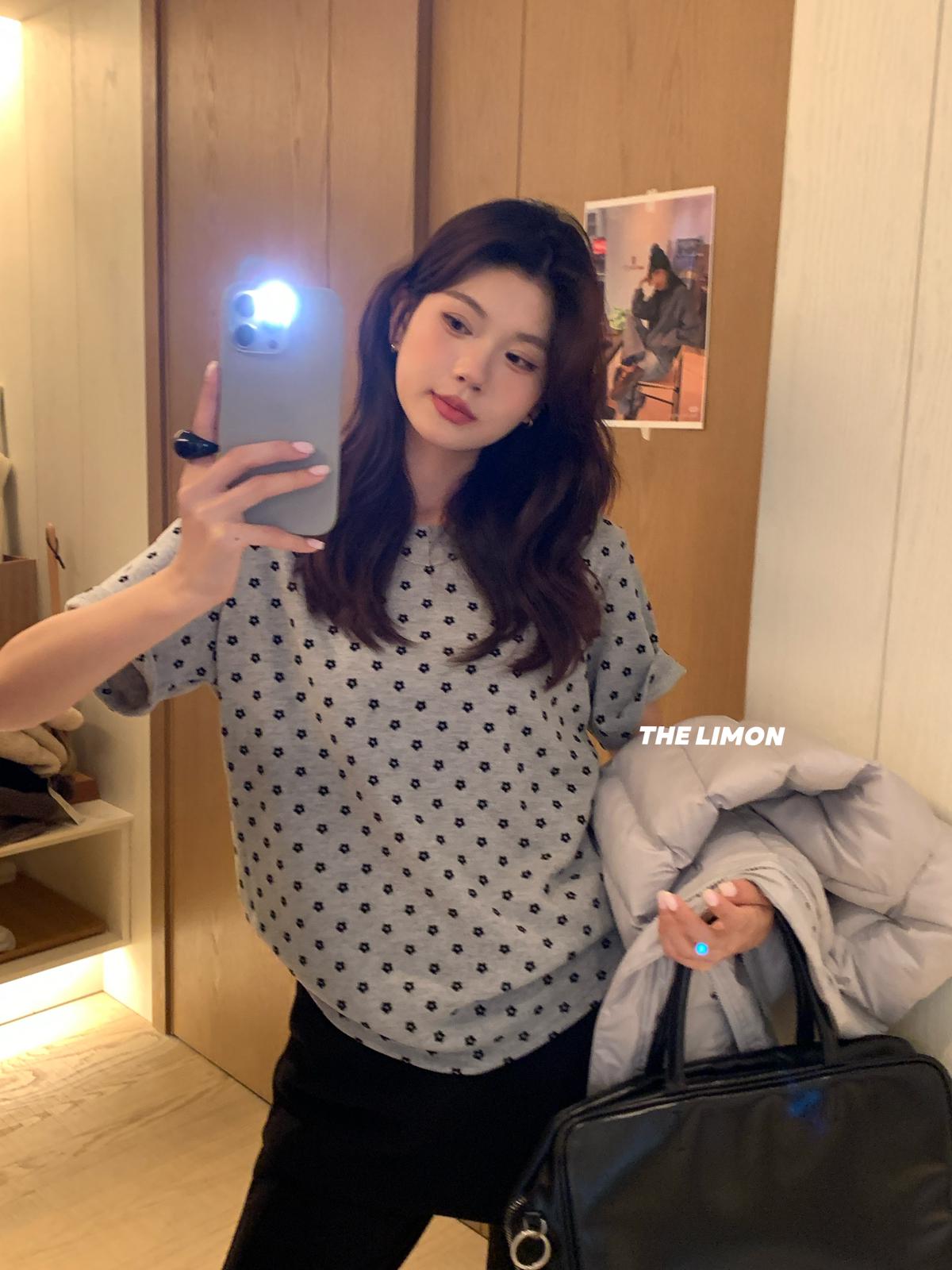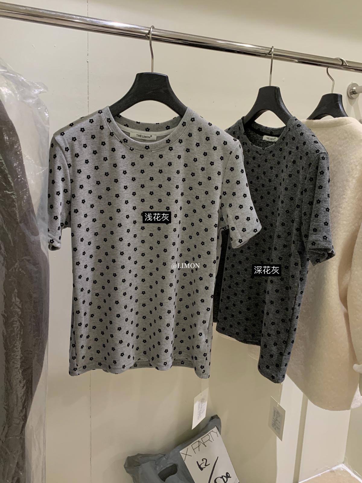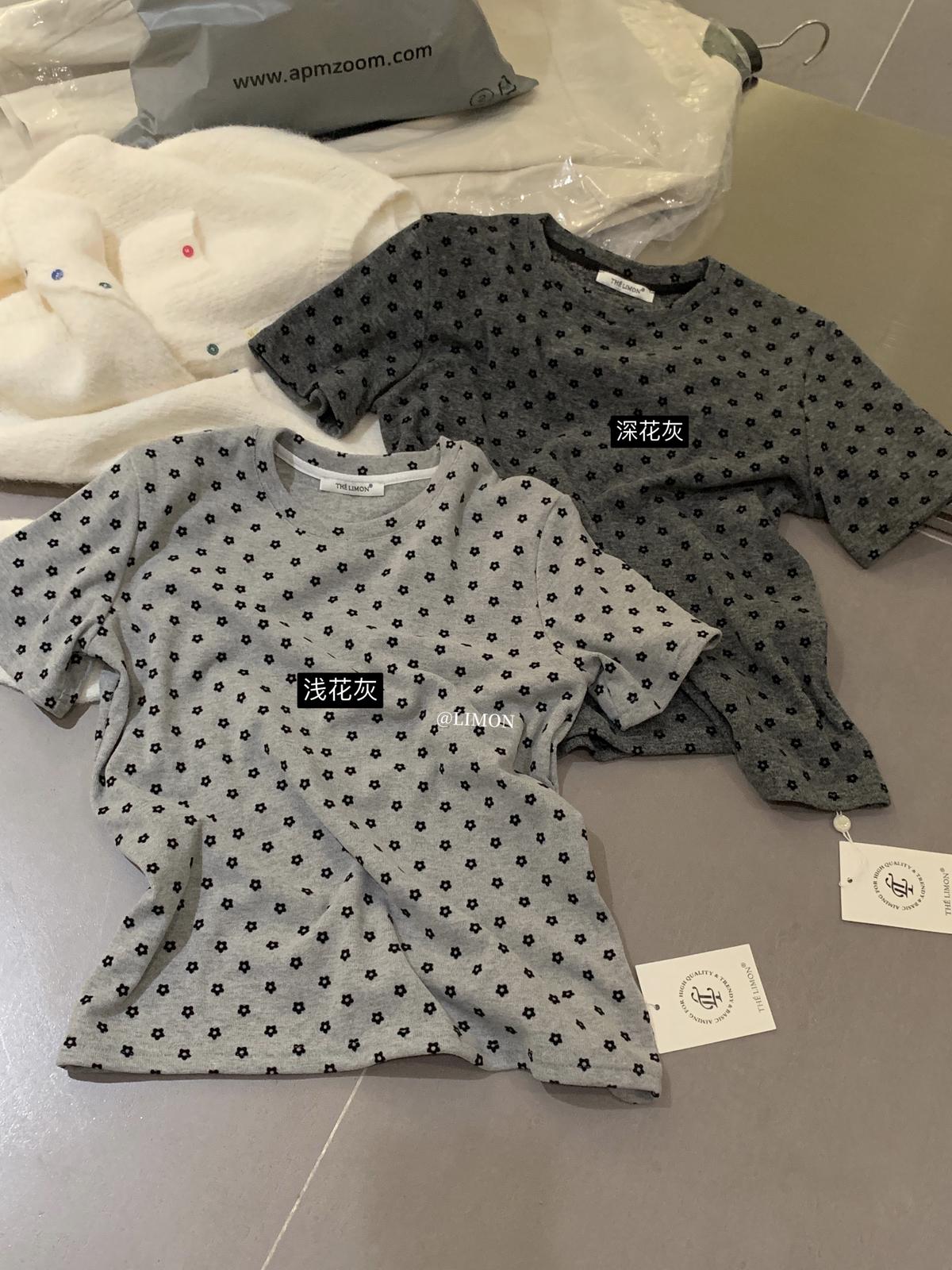 3. 【C7679】高質感正肩植絨小花寬鬆磨毛短袖T恤