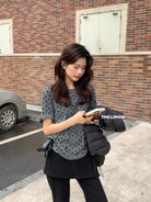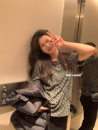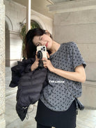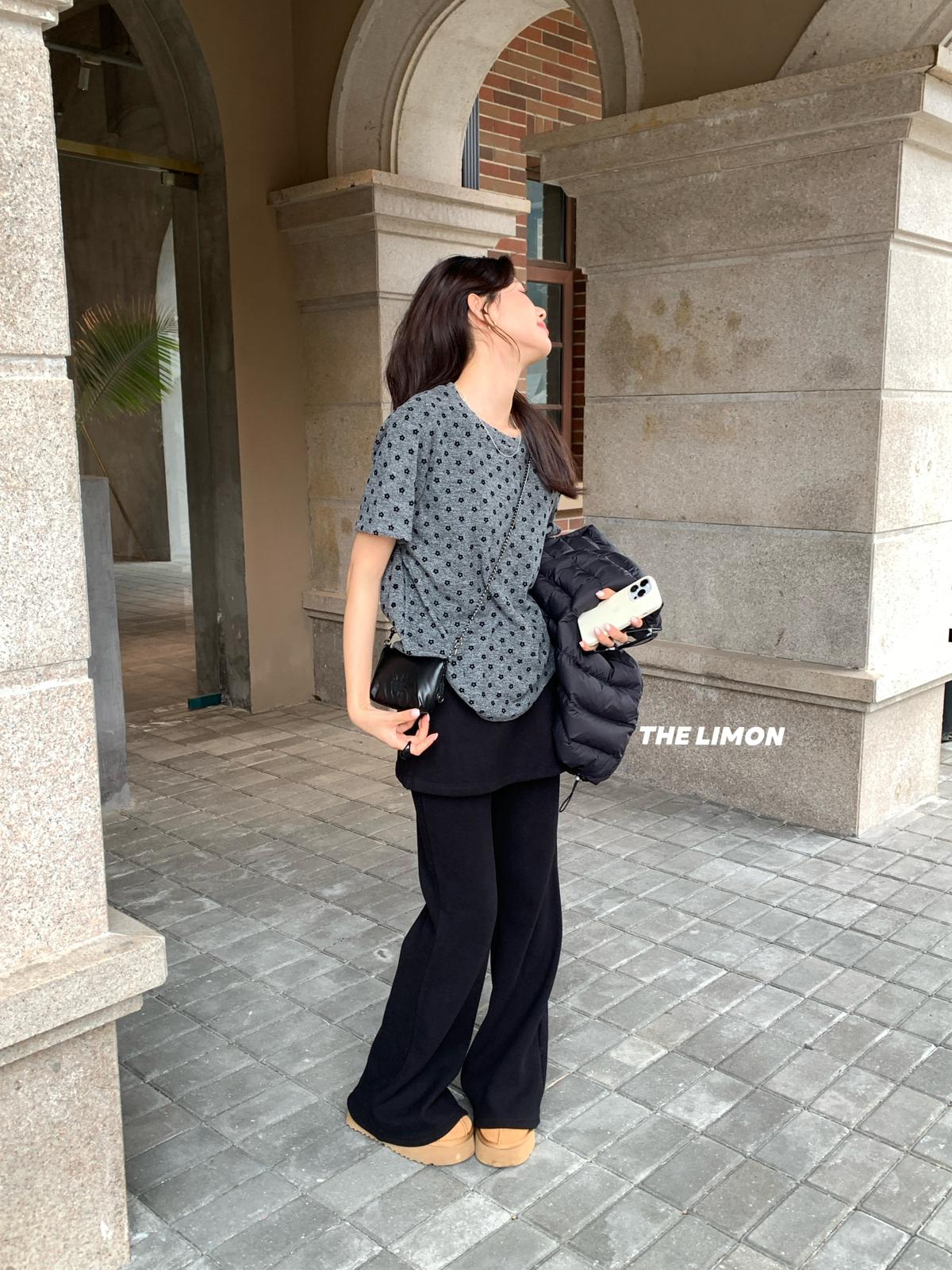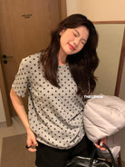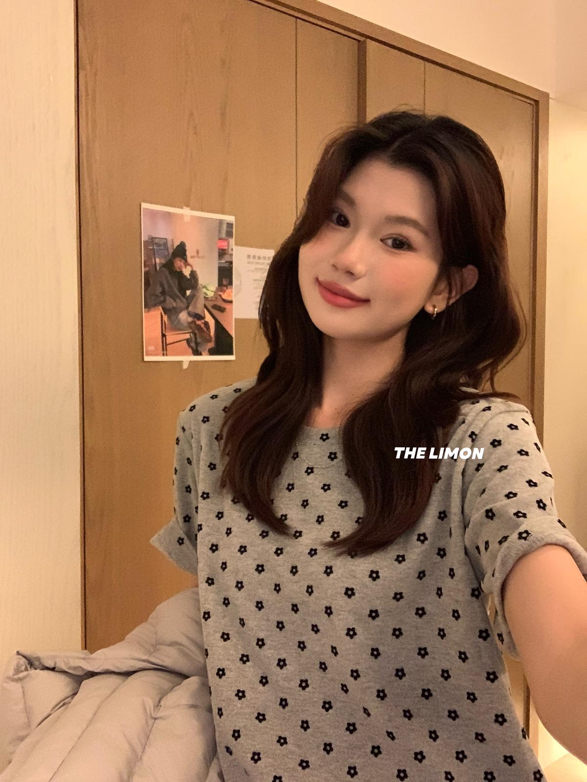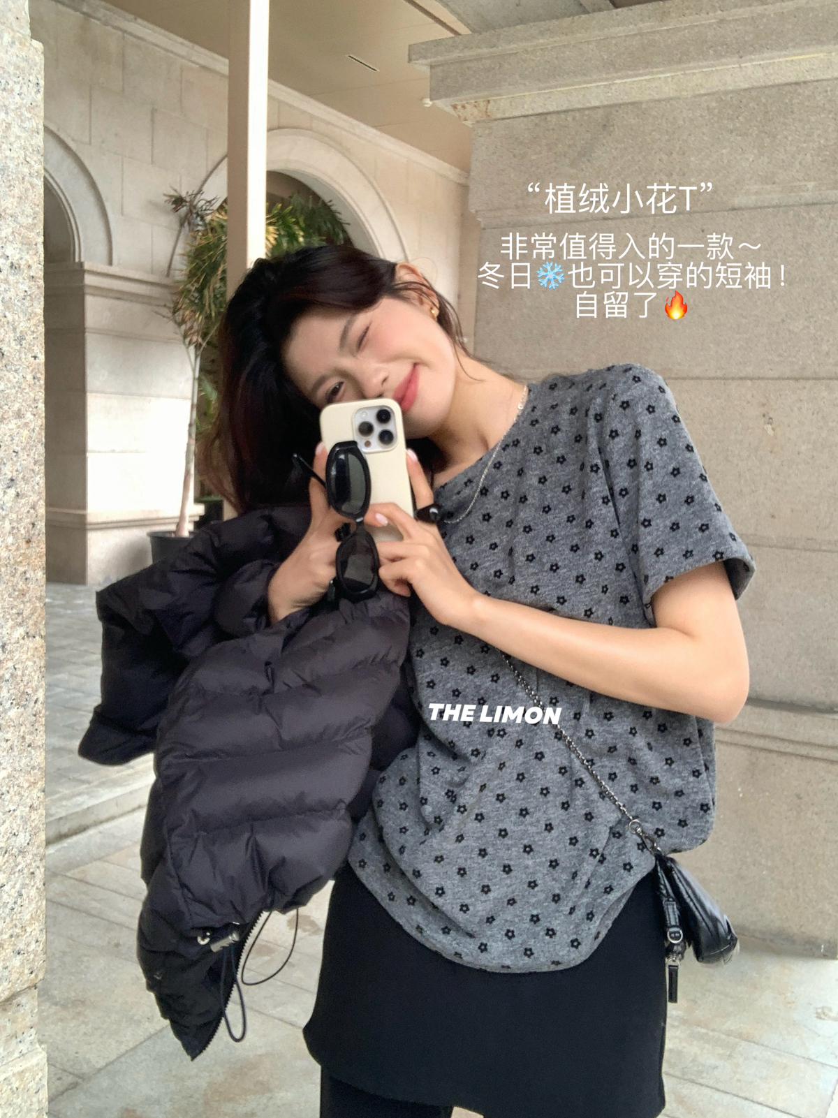 3. 【C7679】高質感正肩植絨小花寬鬆磨毛短袖T恤