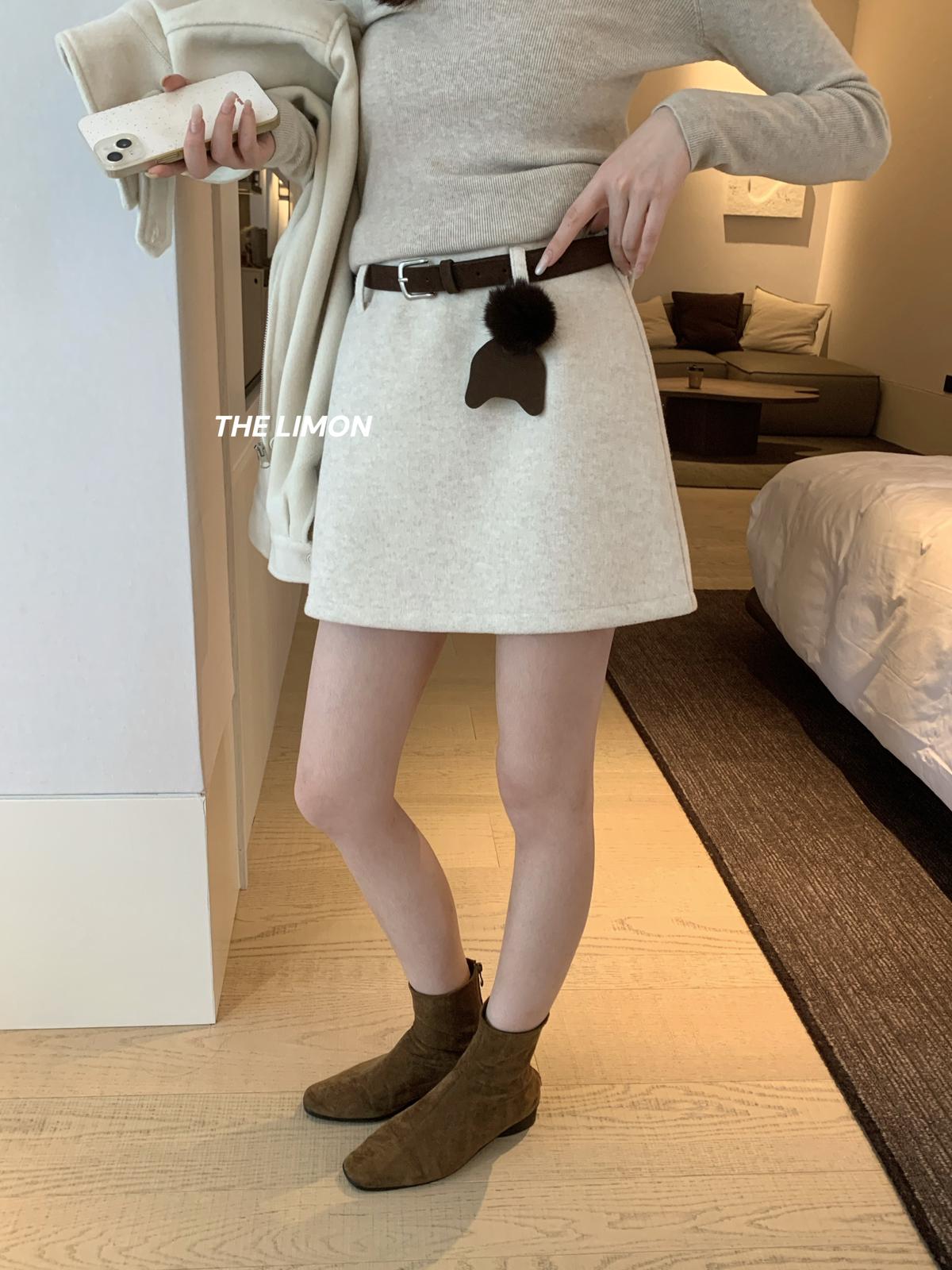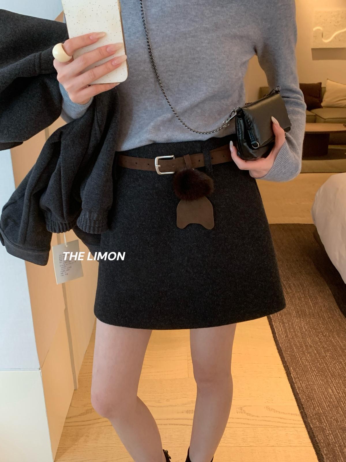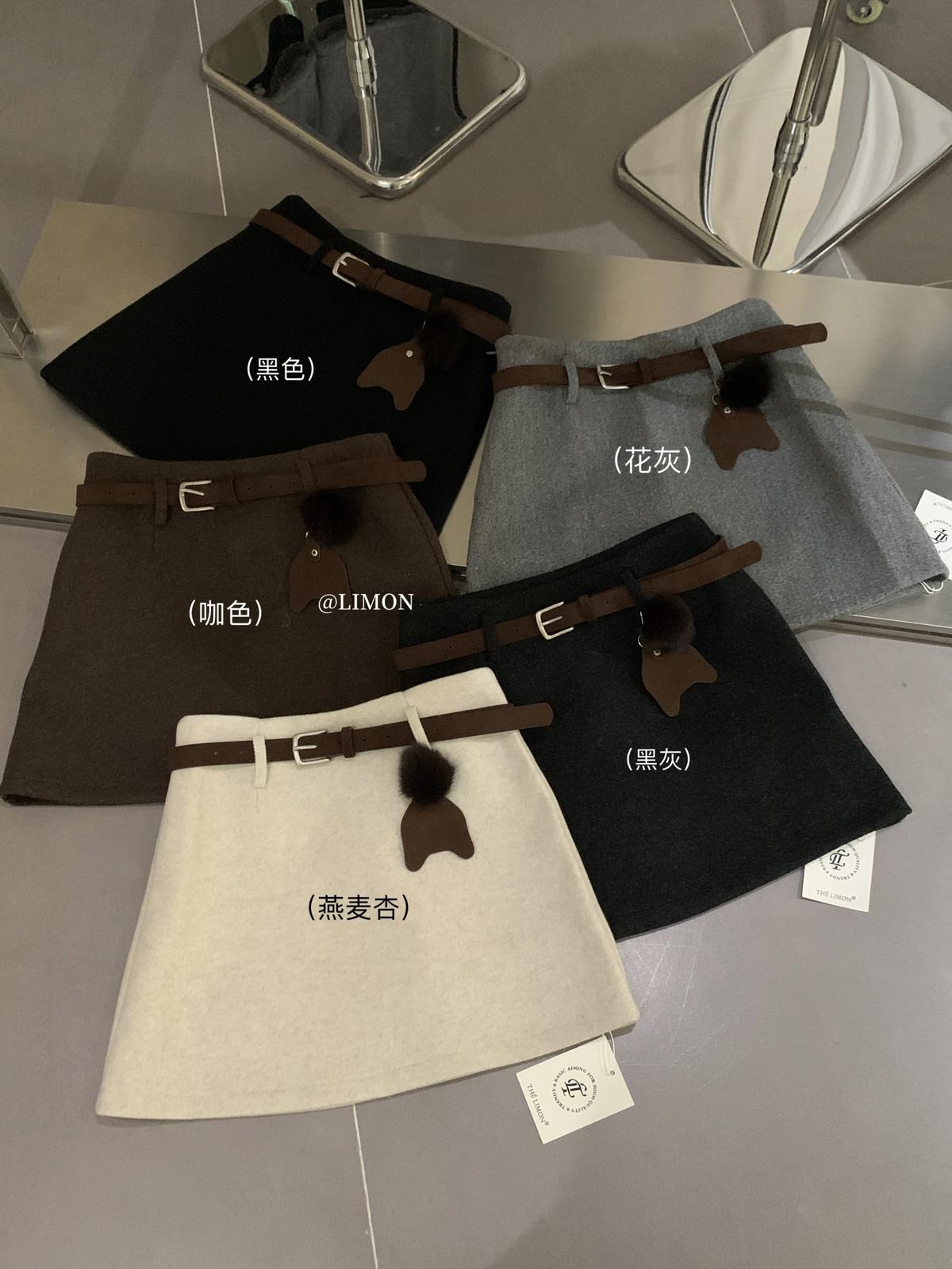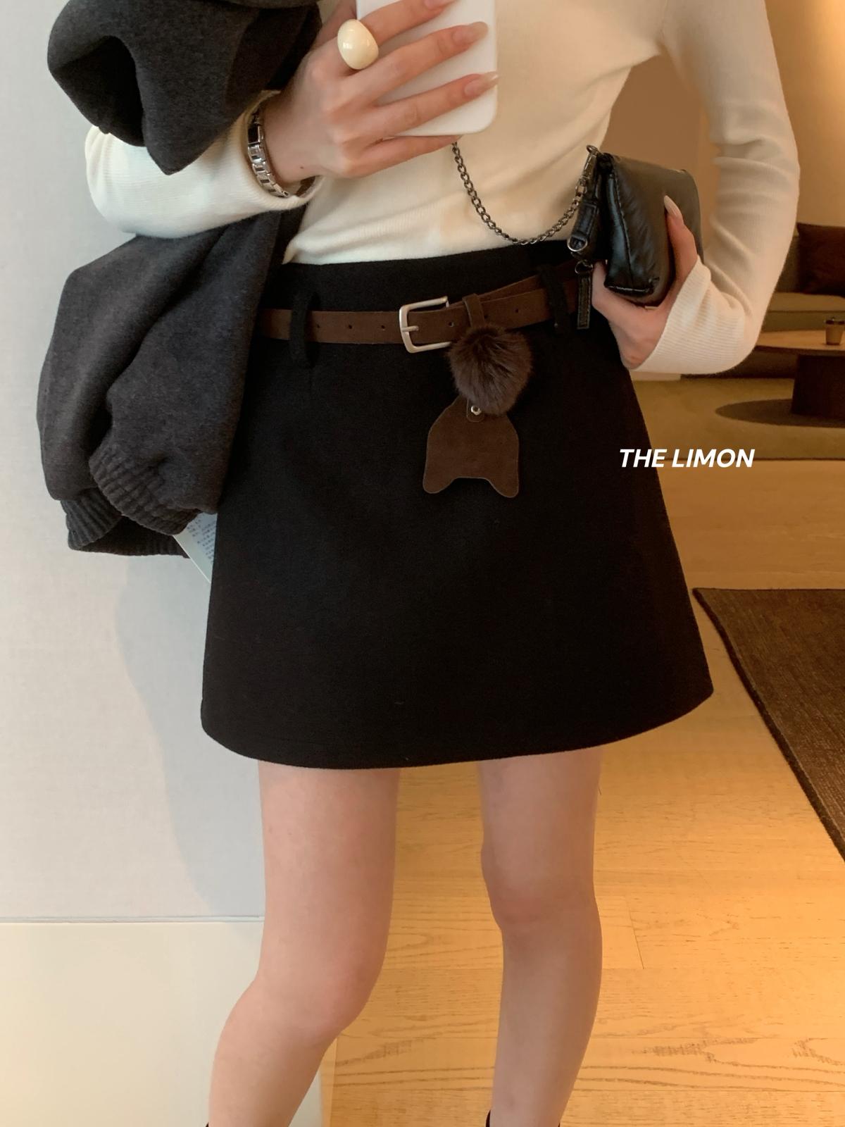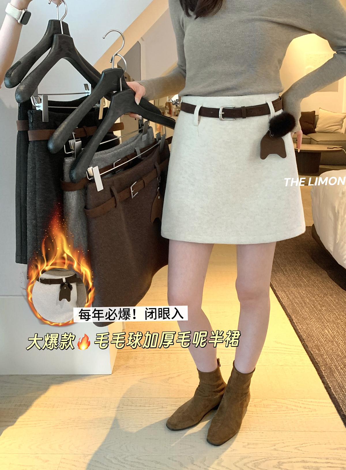 【C7695】時尚百搭顯瘦加厚毛呢半身裙(配腰帶)