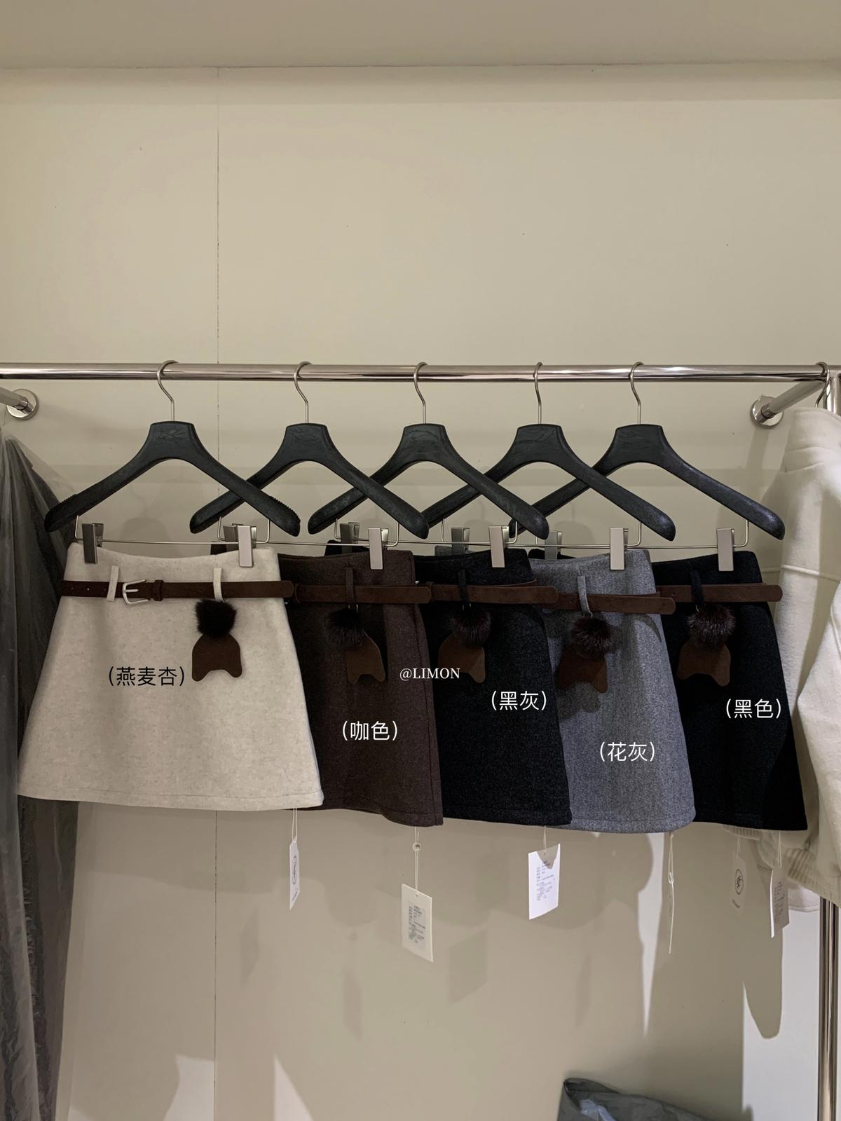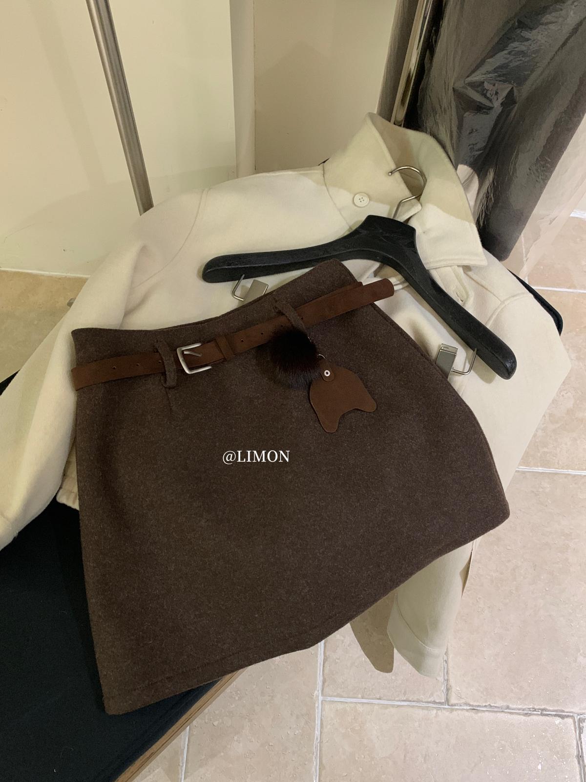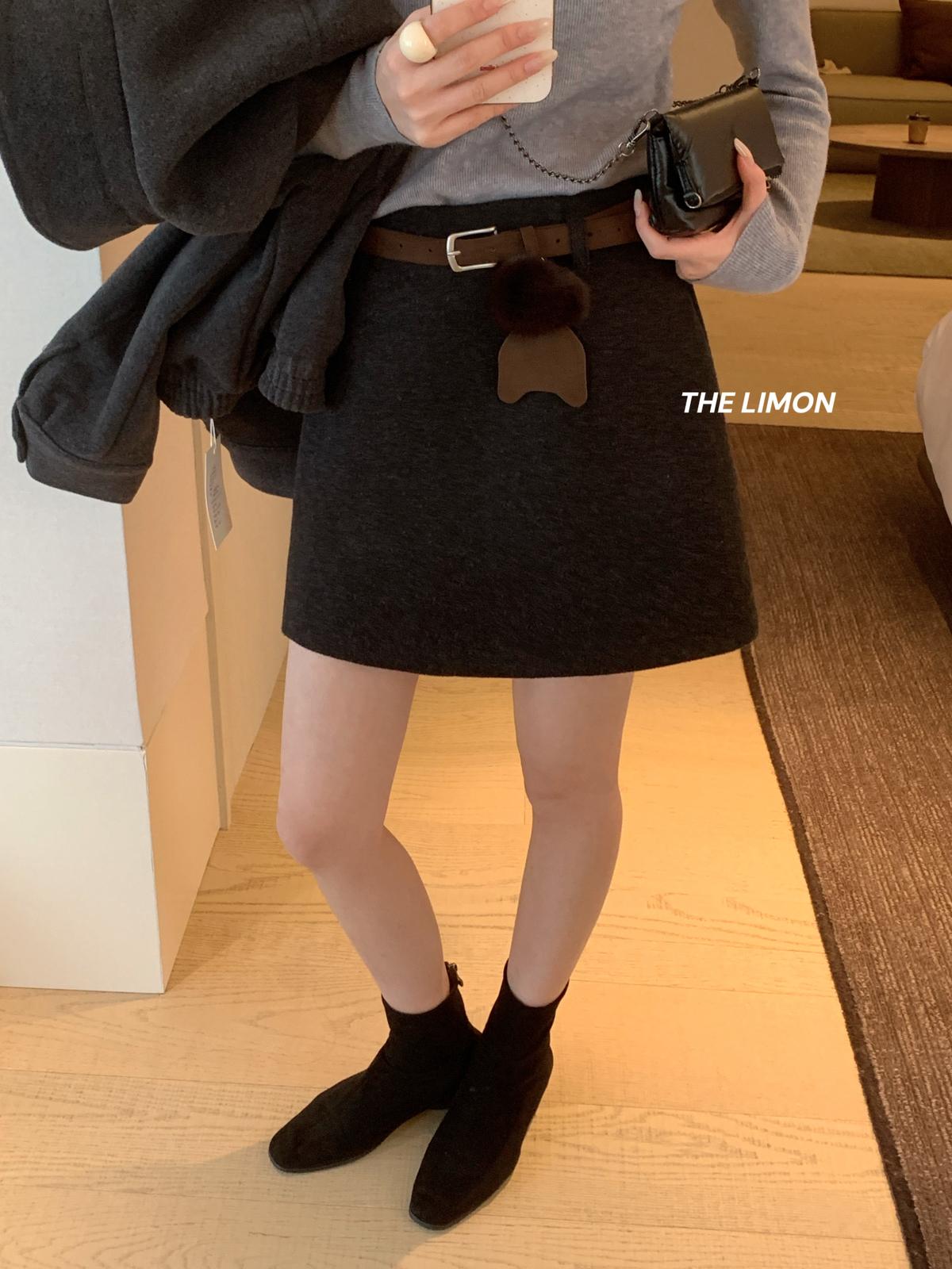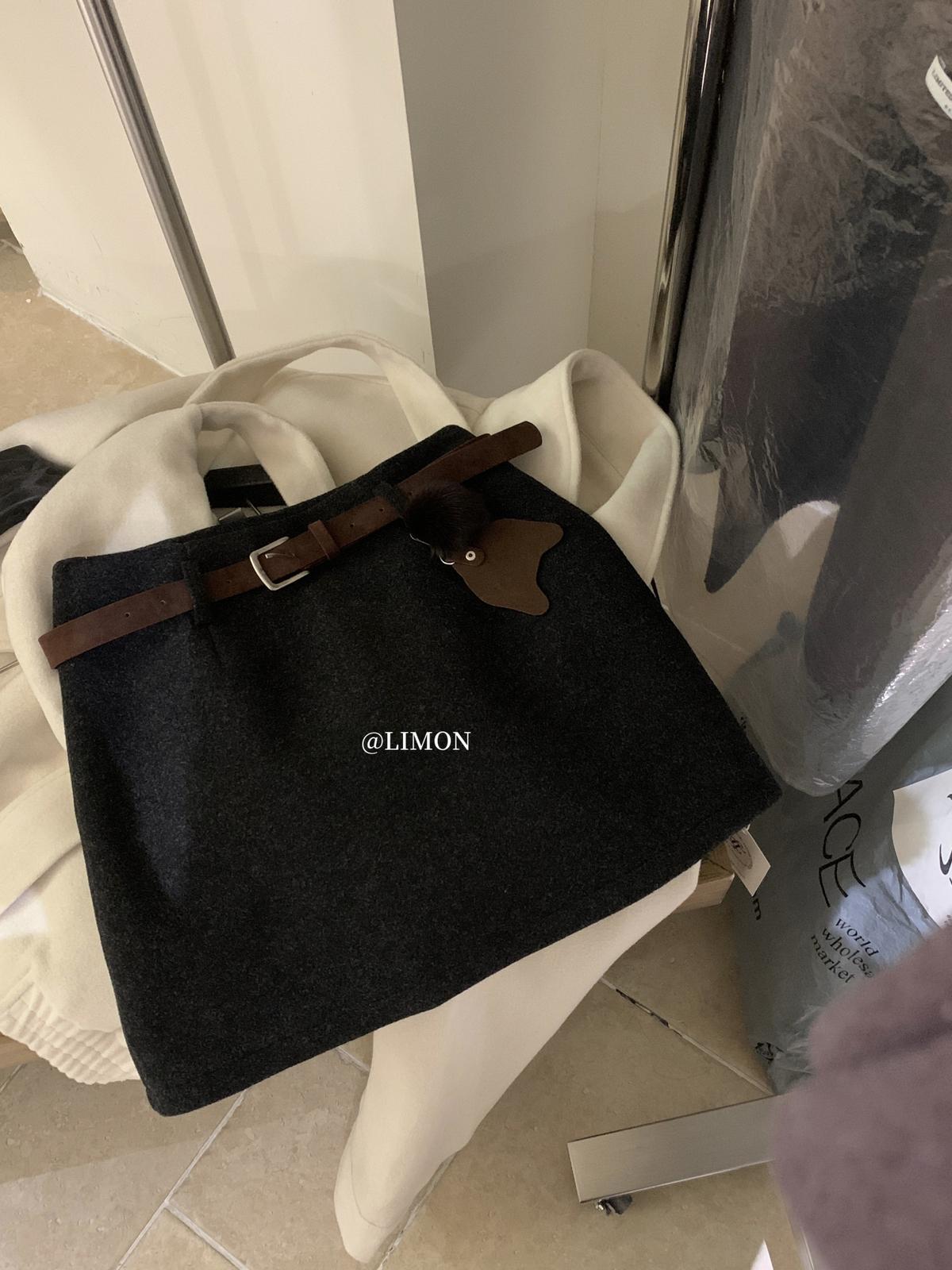 【C7695】時尚百搭顯瘦加厚毛呢半身裙(配腰帶)