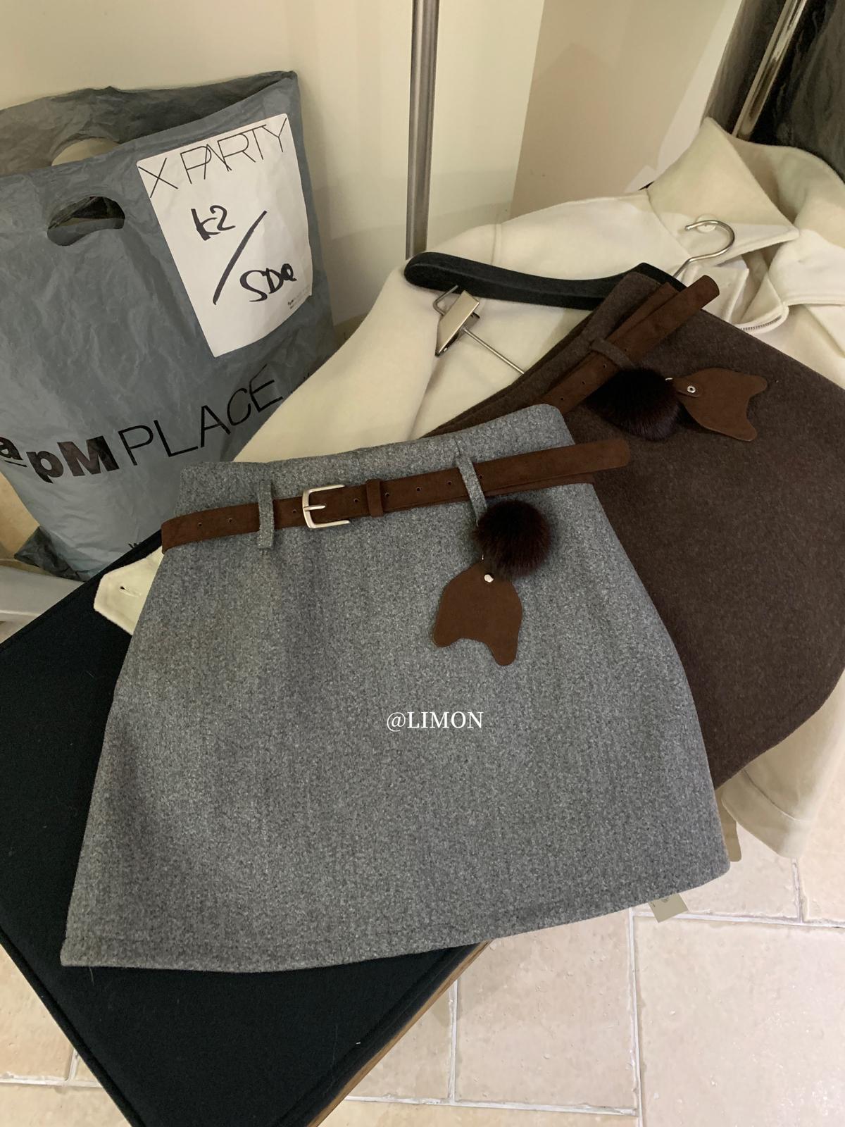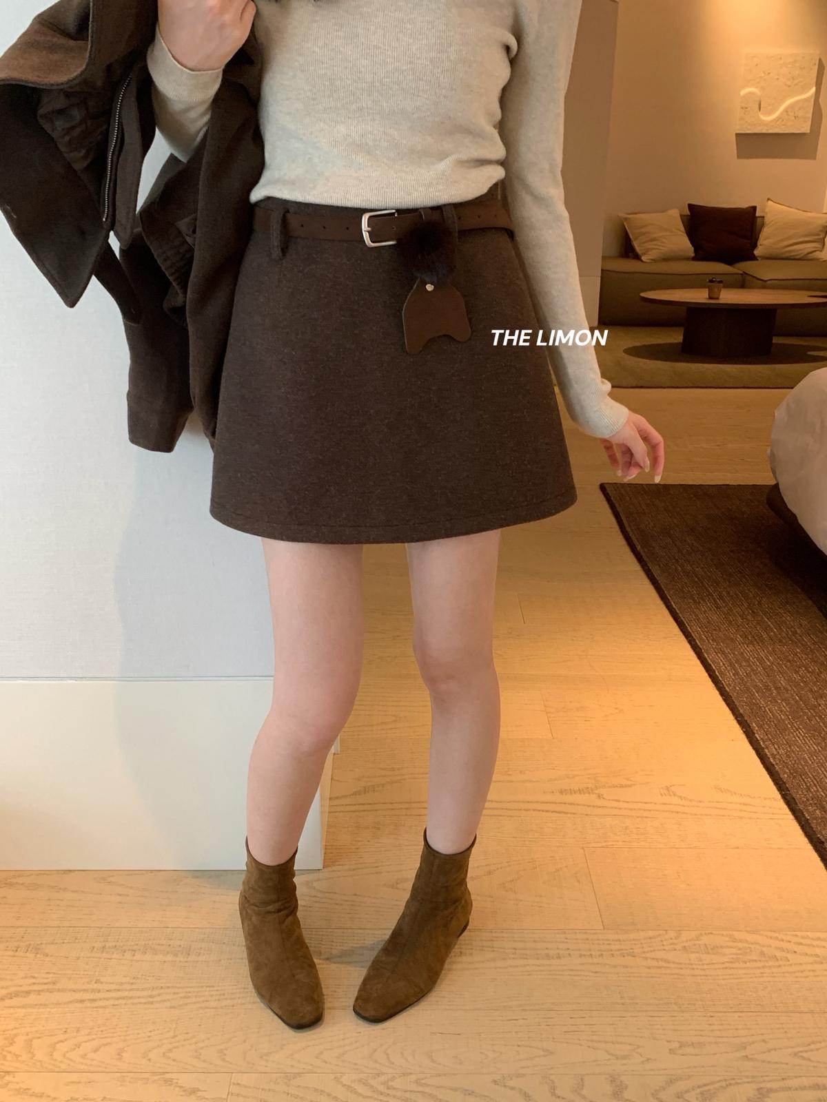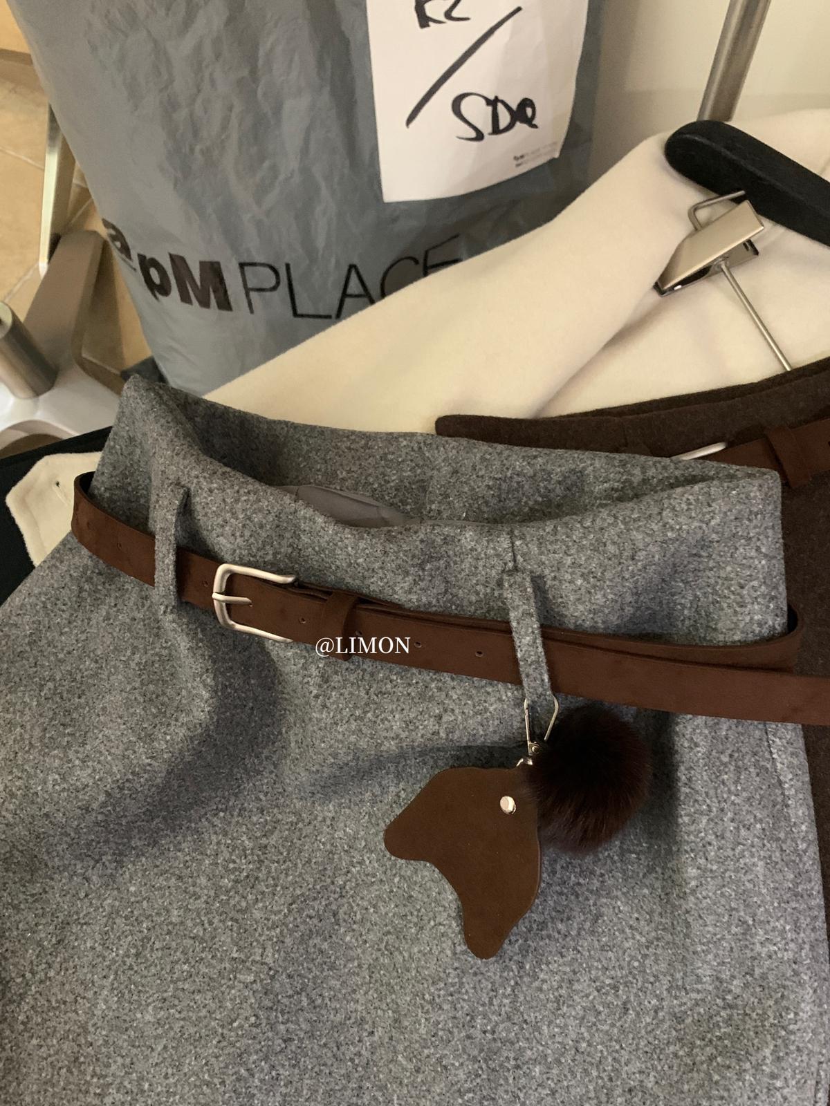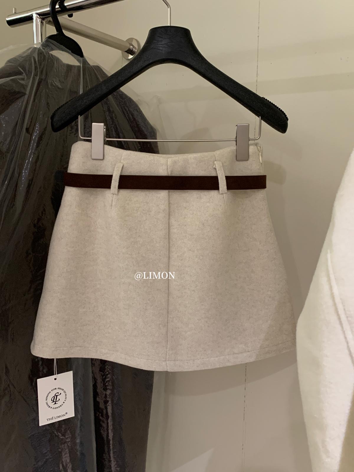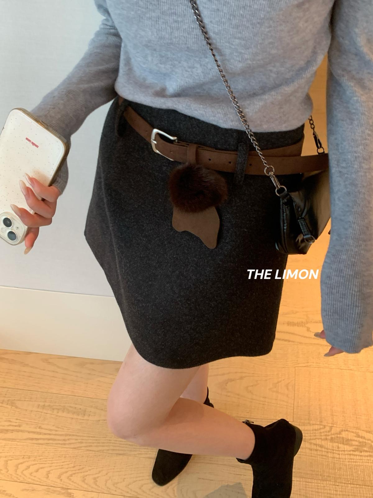【C7695】時尚百搭顯瘦加厚毛呢半身裙(配腰帶)