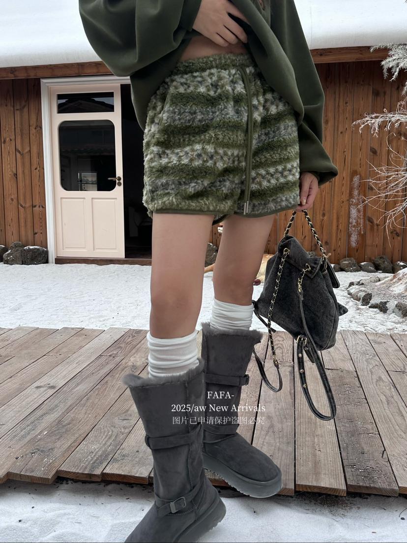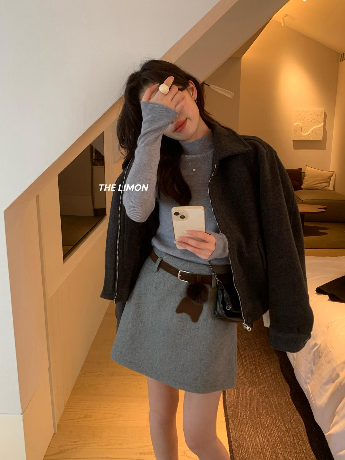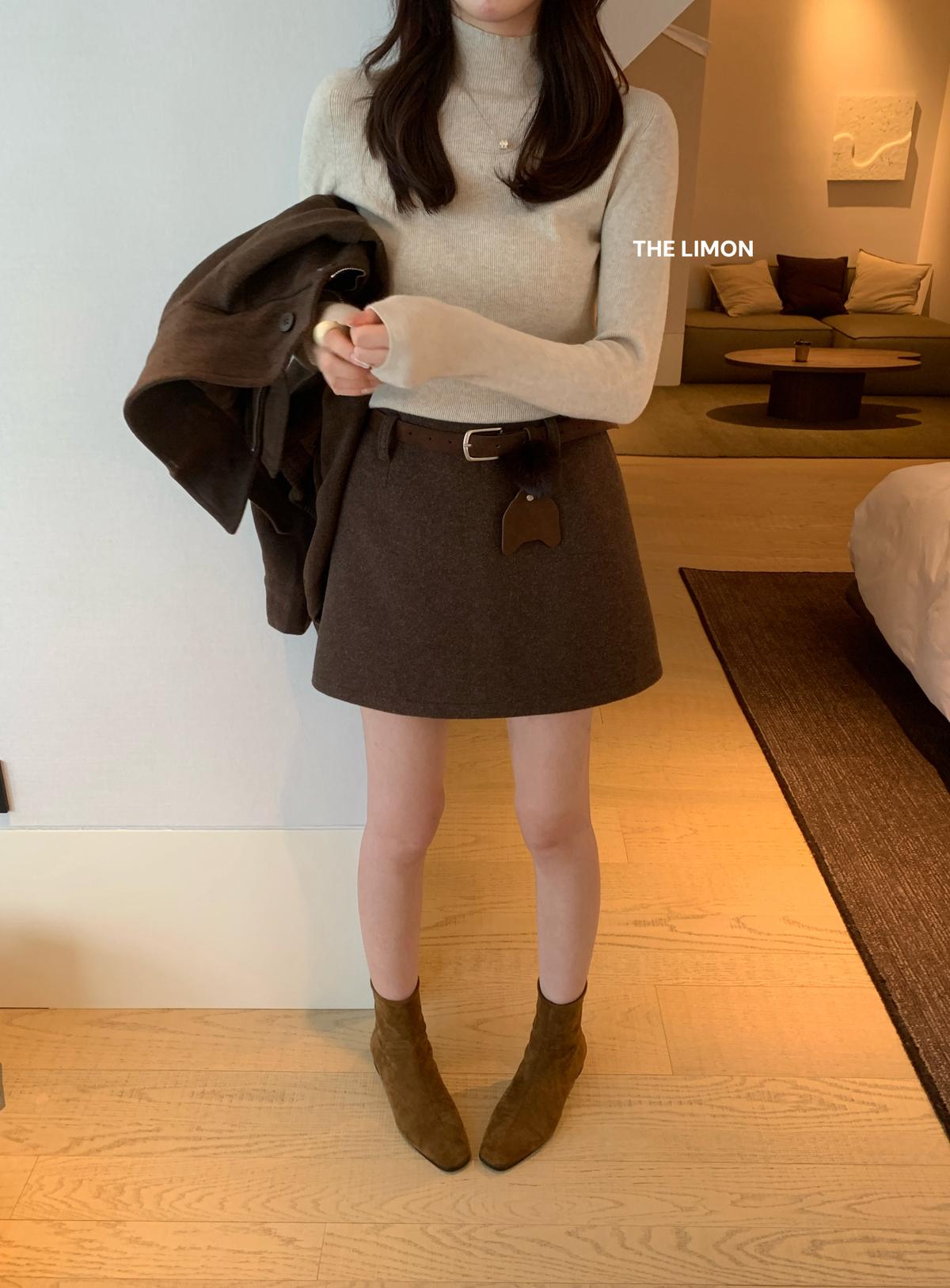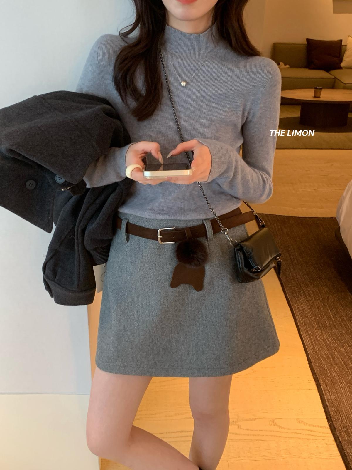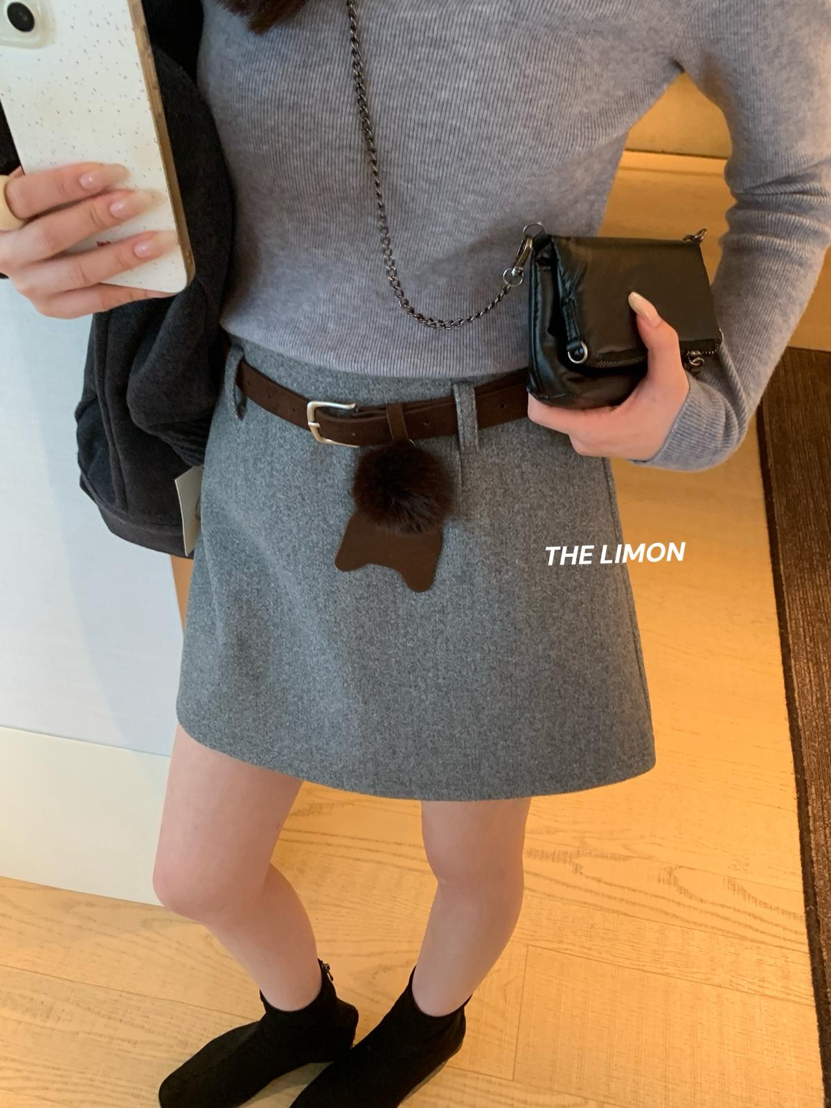 【C7695】時尚百搭顯瘦加厚毛呢半身裙(配腰帶)