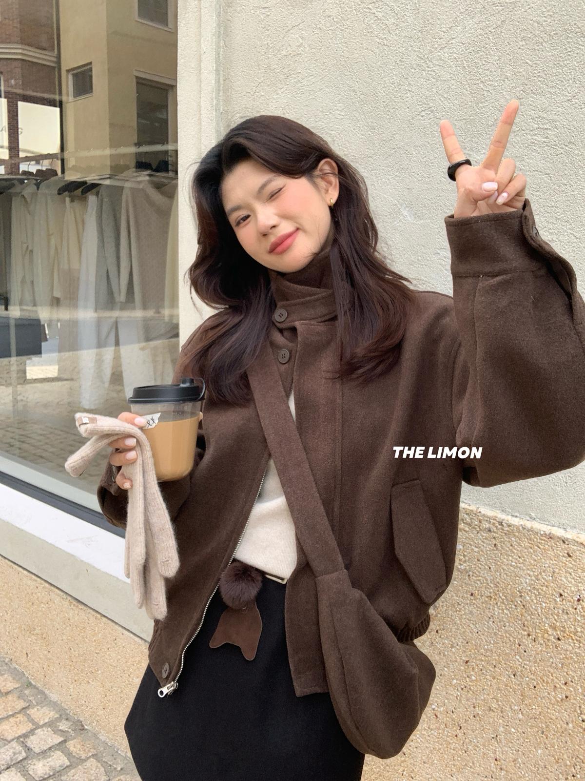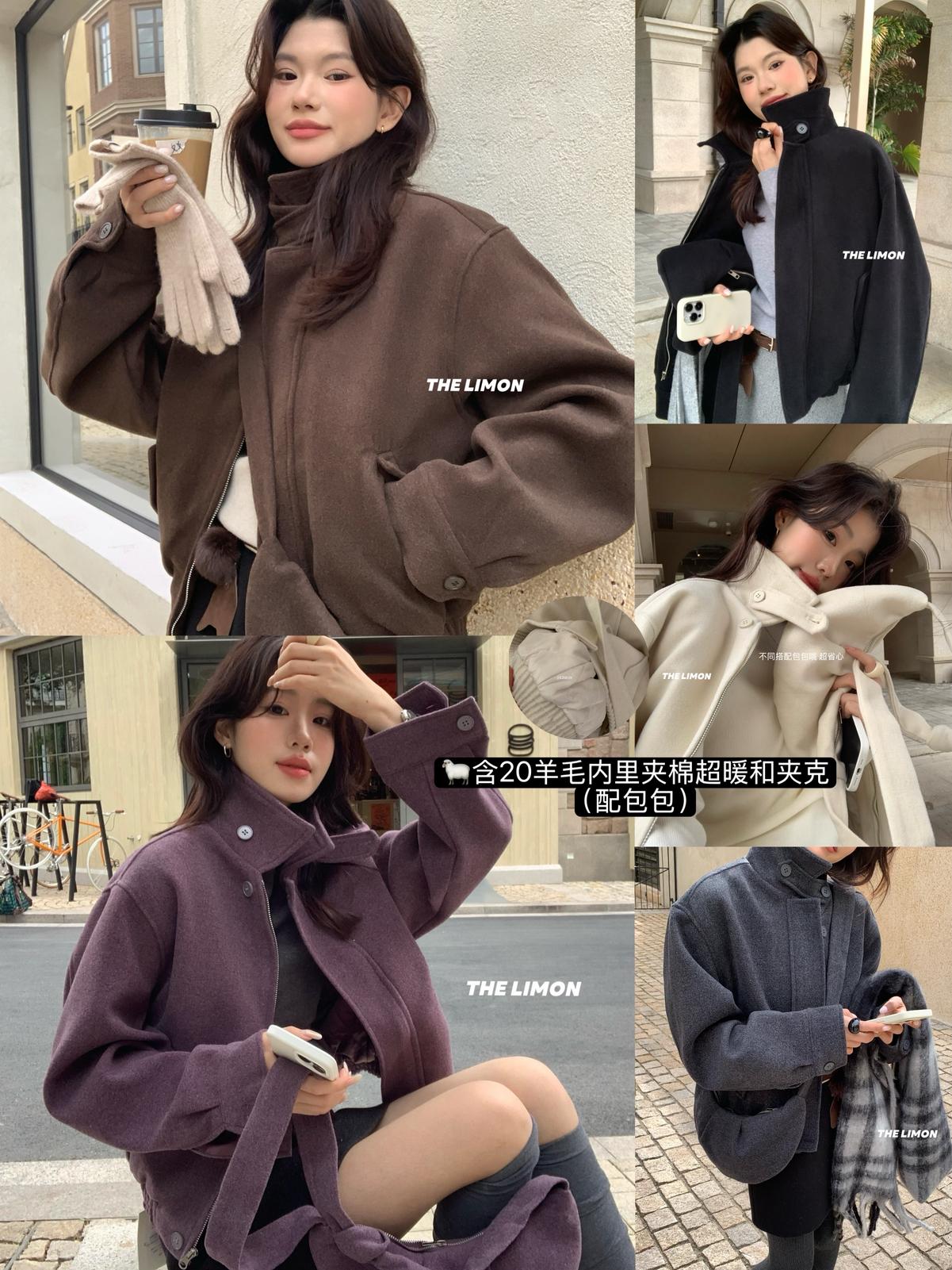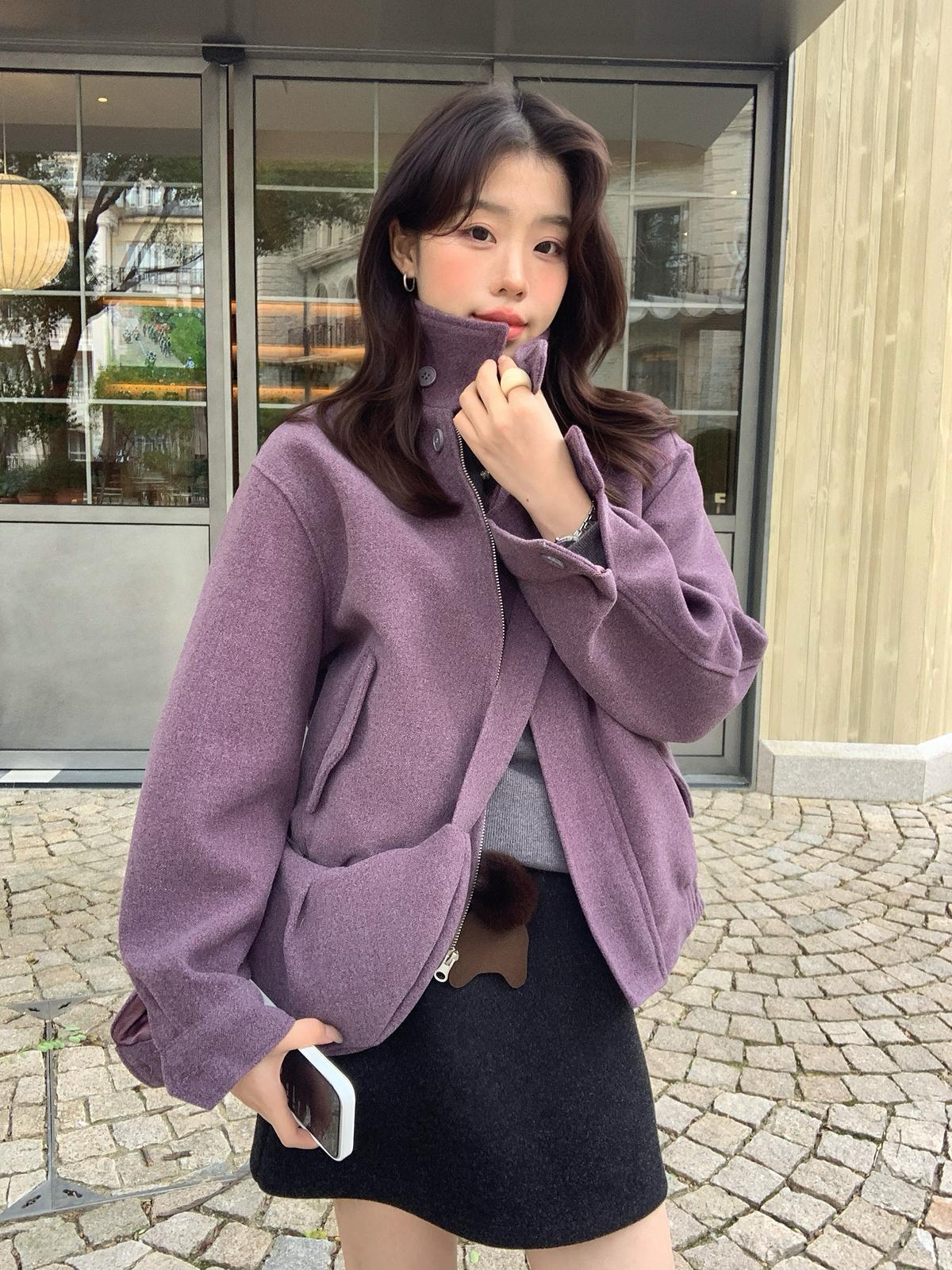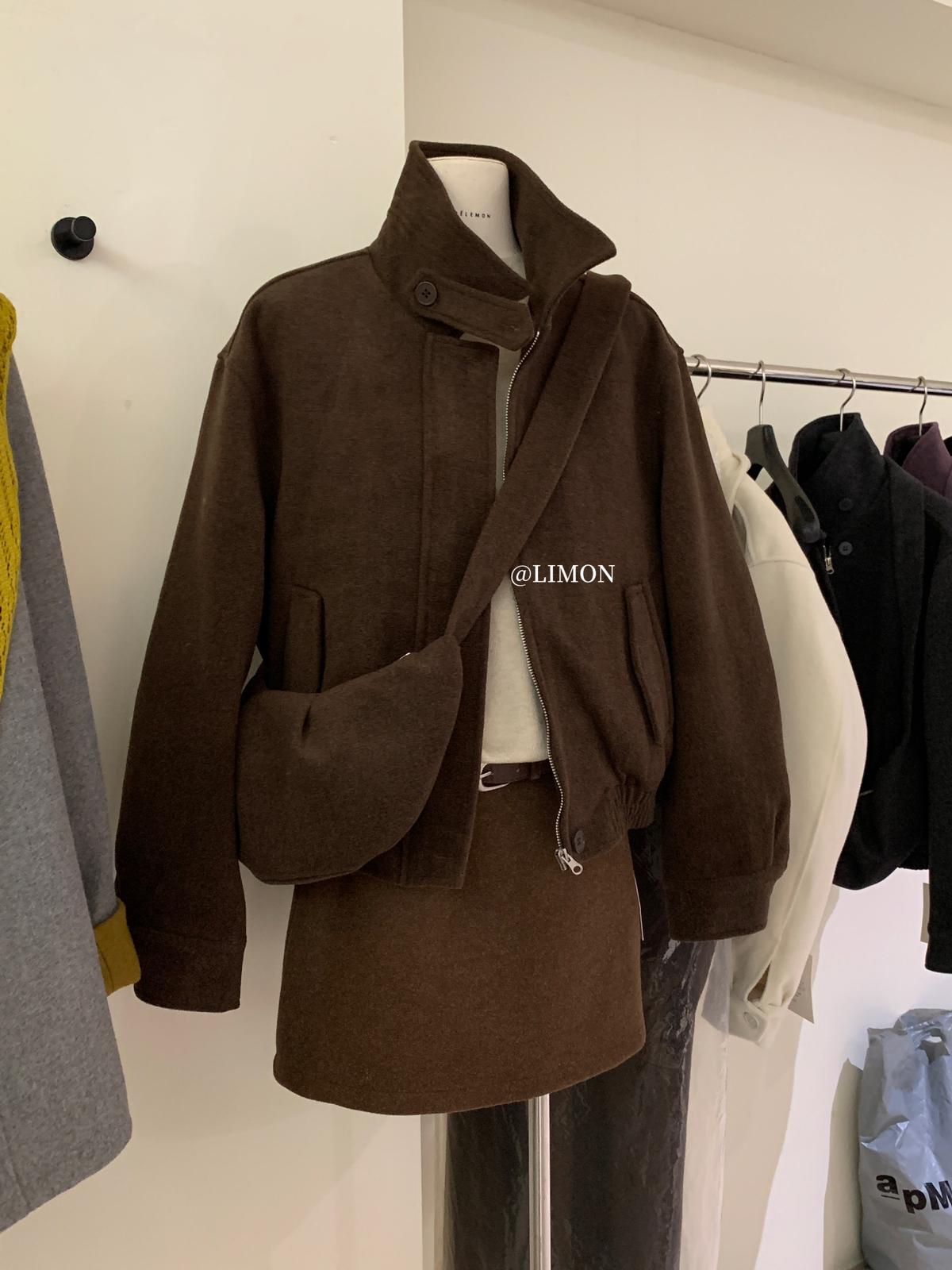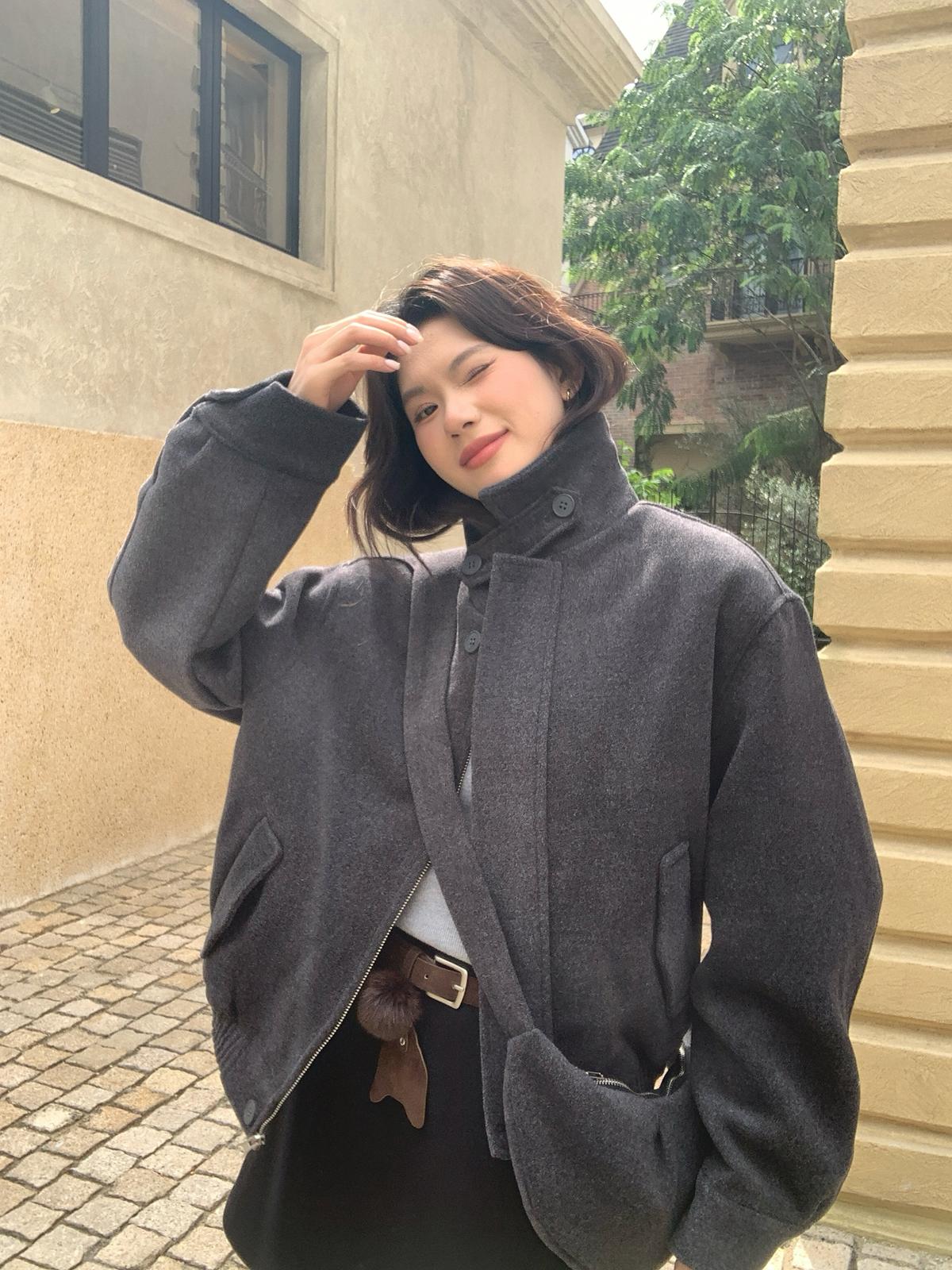【C7696】韓系時尚立領保暖夾克短外套(配斜挎包)(含20%羊毛)(內裏夾棉)