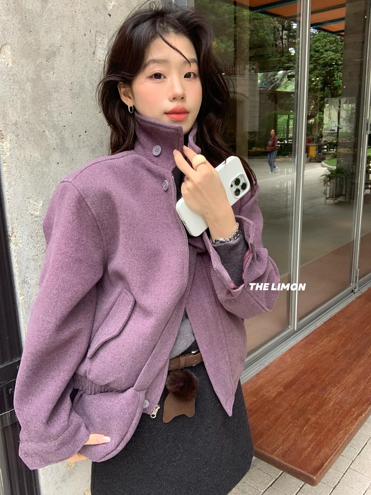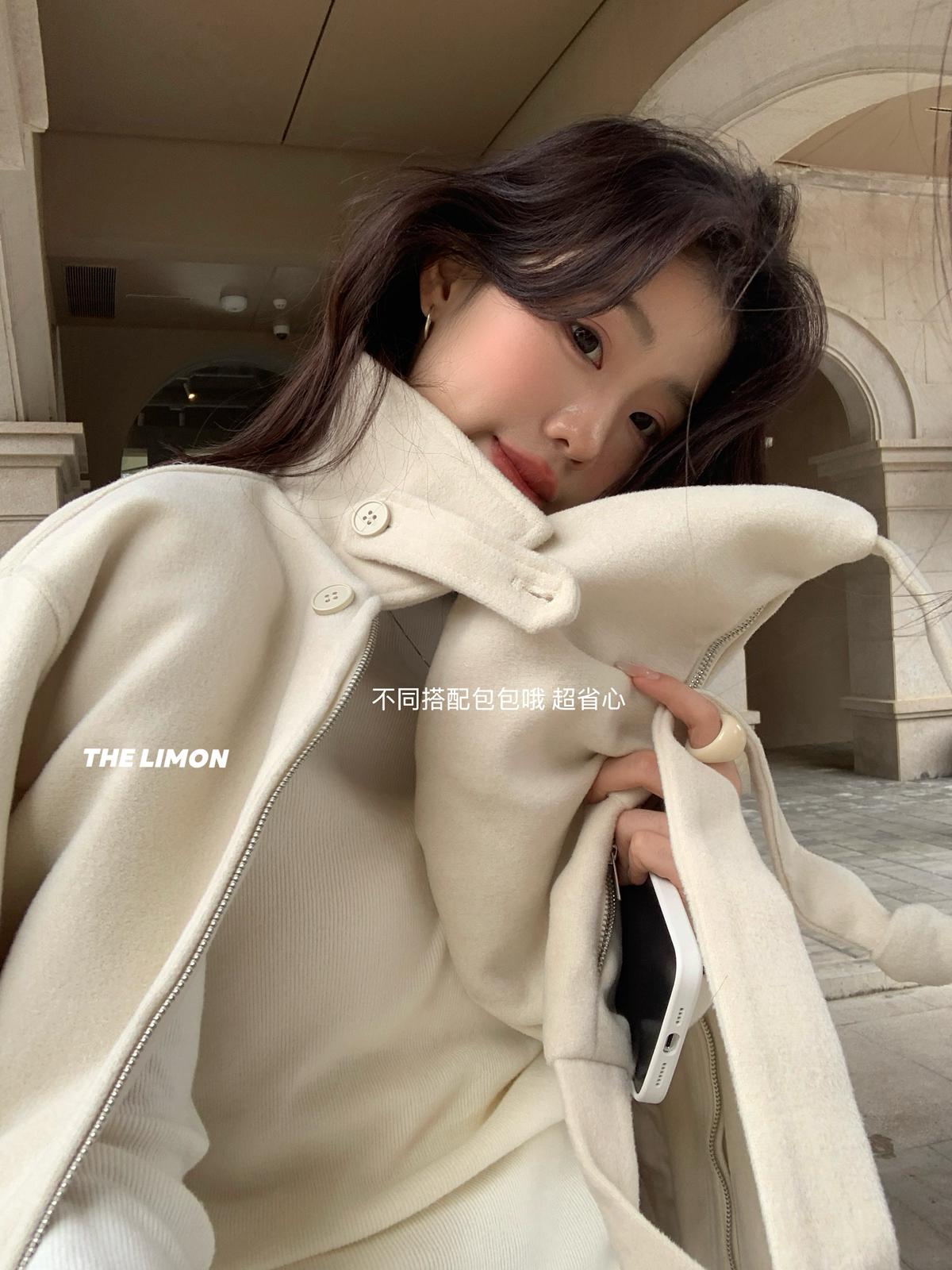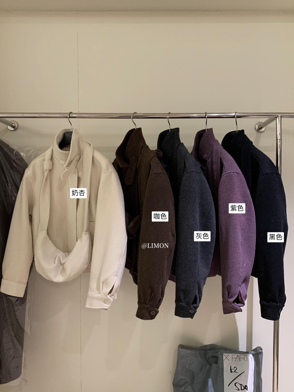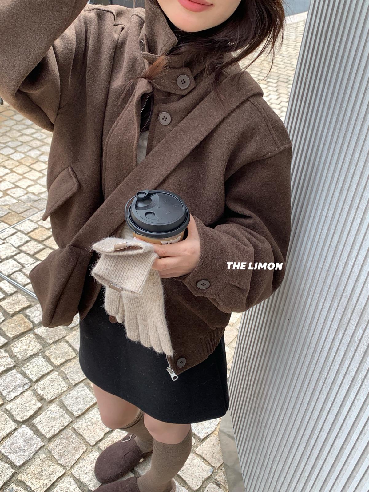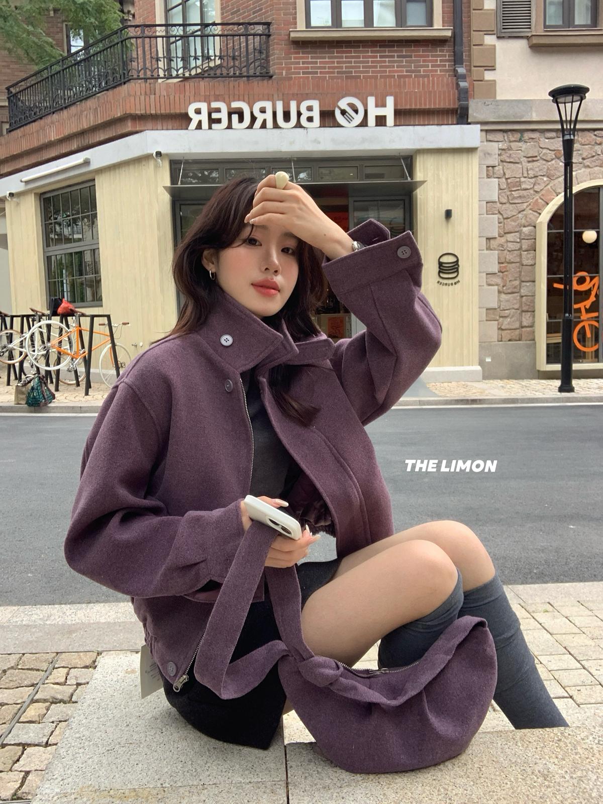 【C7696】韓系時尚立領保暖夾克短外套(配斜挎包)(含20%羊毛)(內裏夾棉)