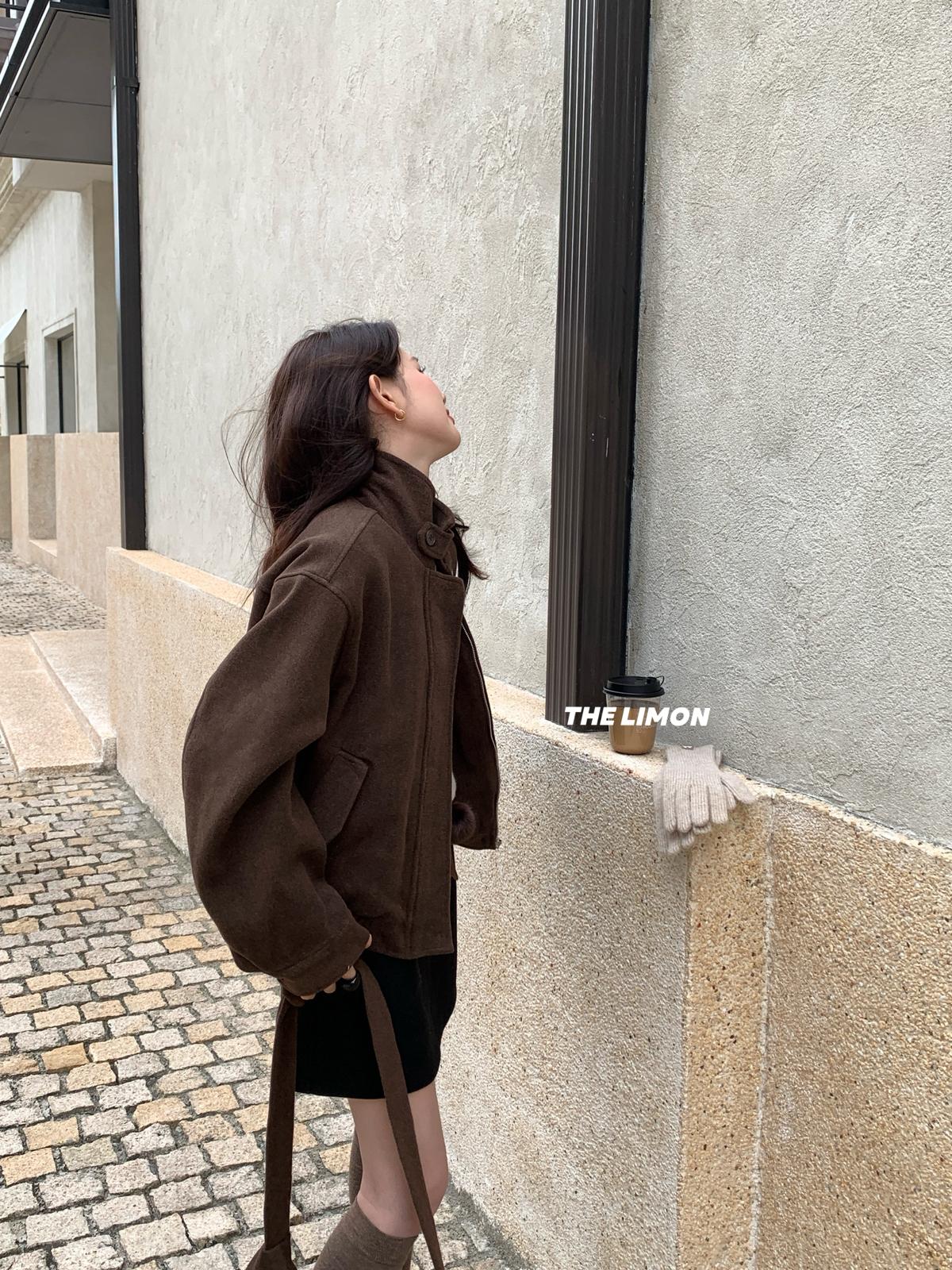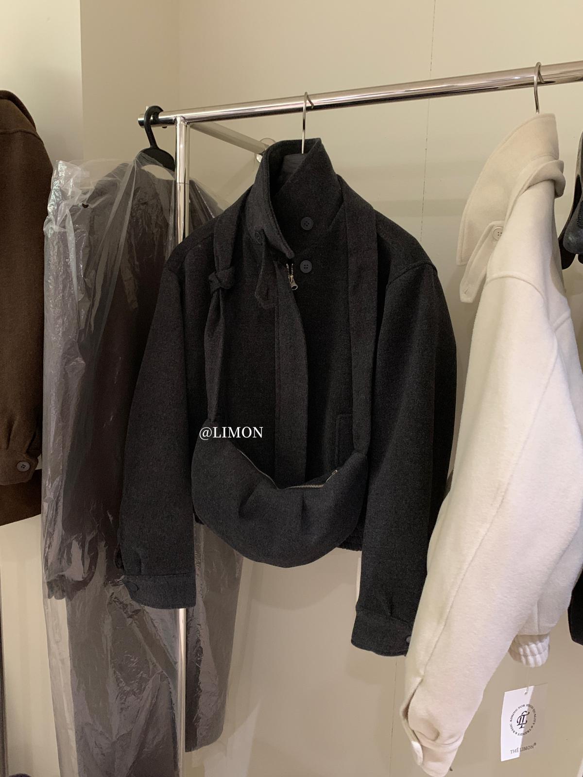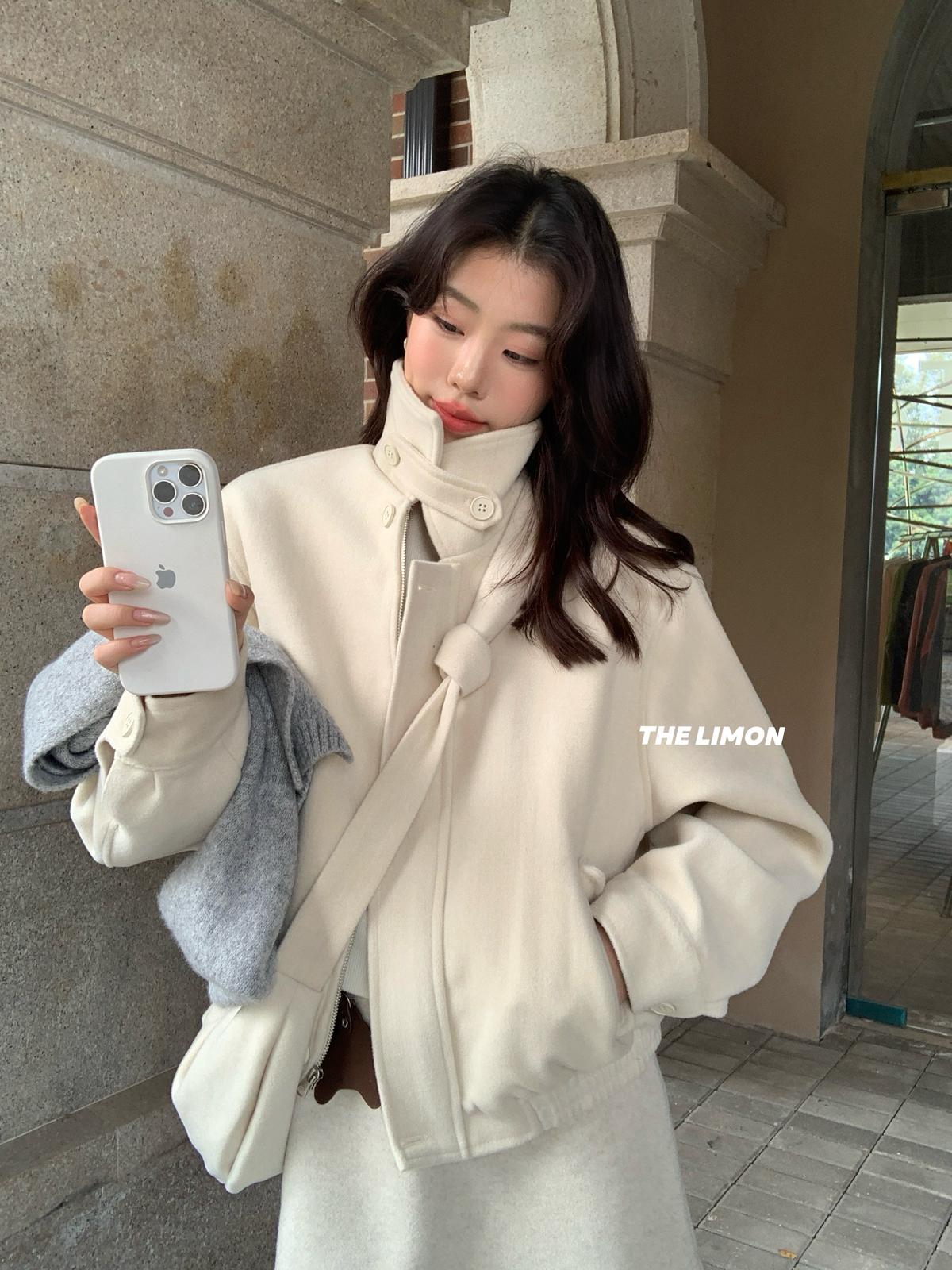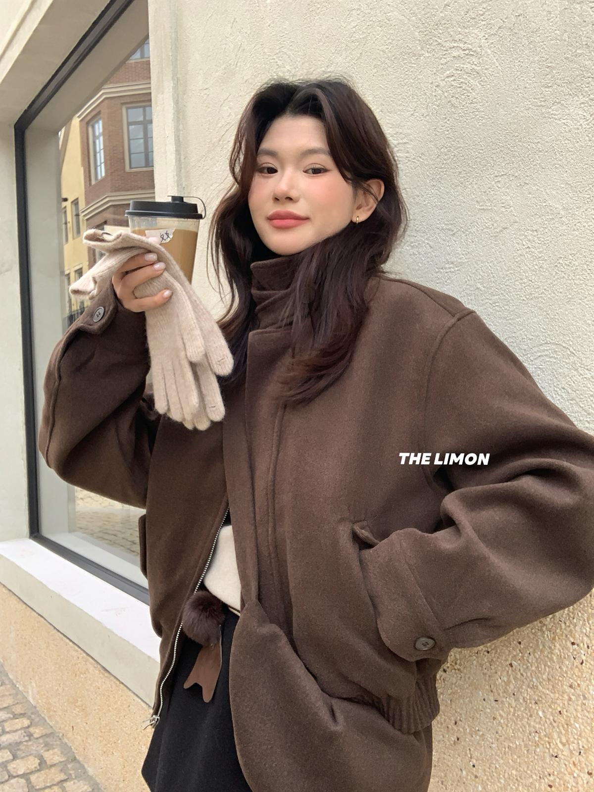 【C7696】韓系時尚立領保暖夾克短外套(配斜挎包)(含20%羊毛)(內裏夾棉)