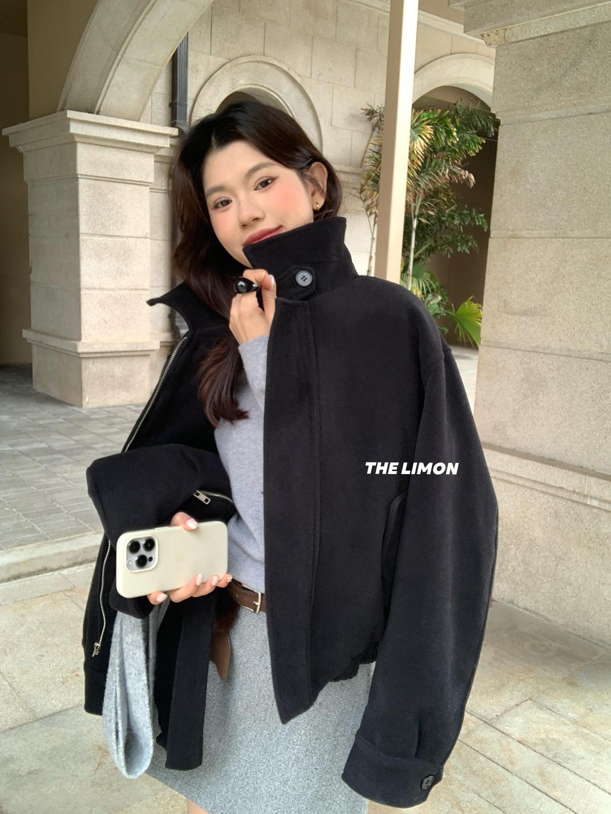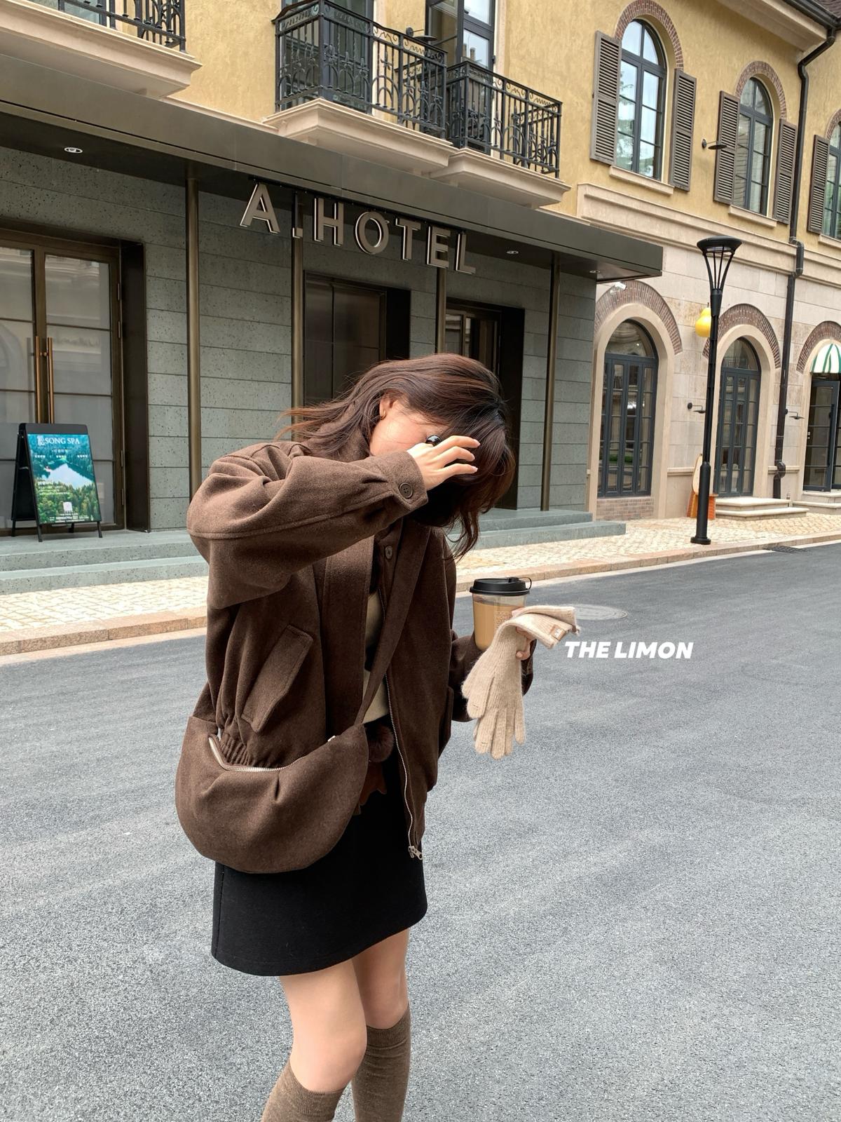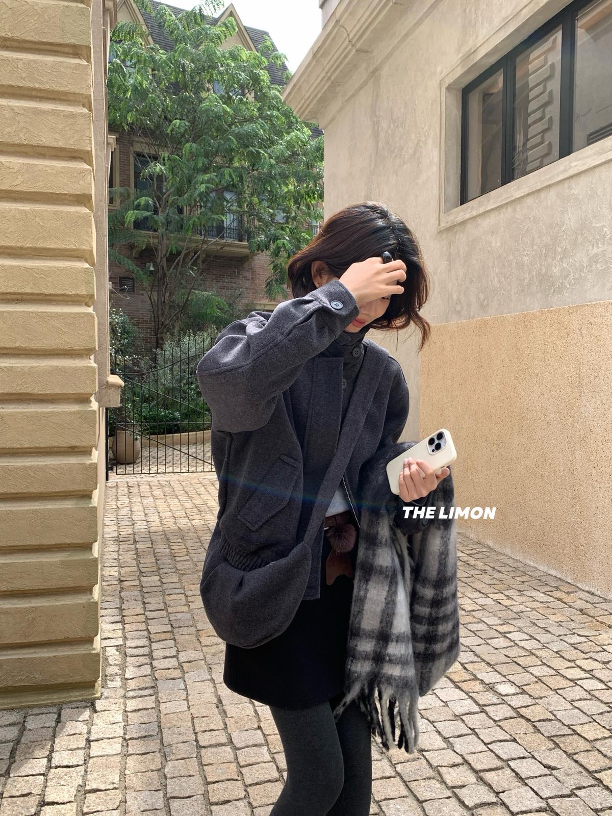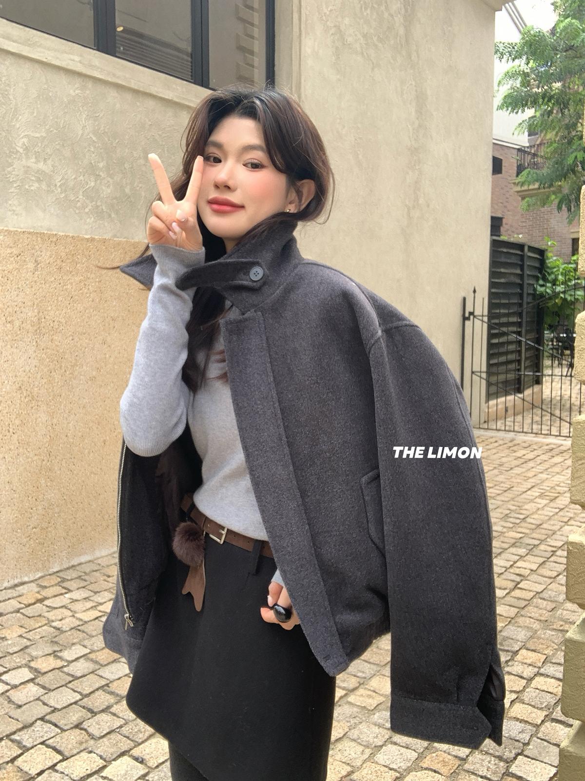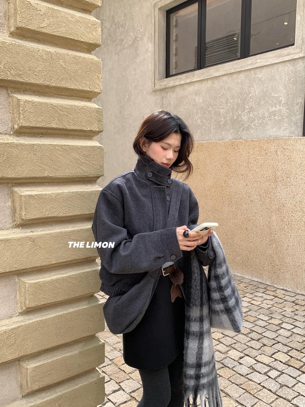 【C7696】韓系時尚立領保暖夾克短外套(配斜挎包)(含20%羊毛)(內裏夾棉)