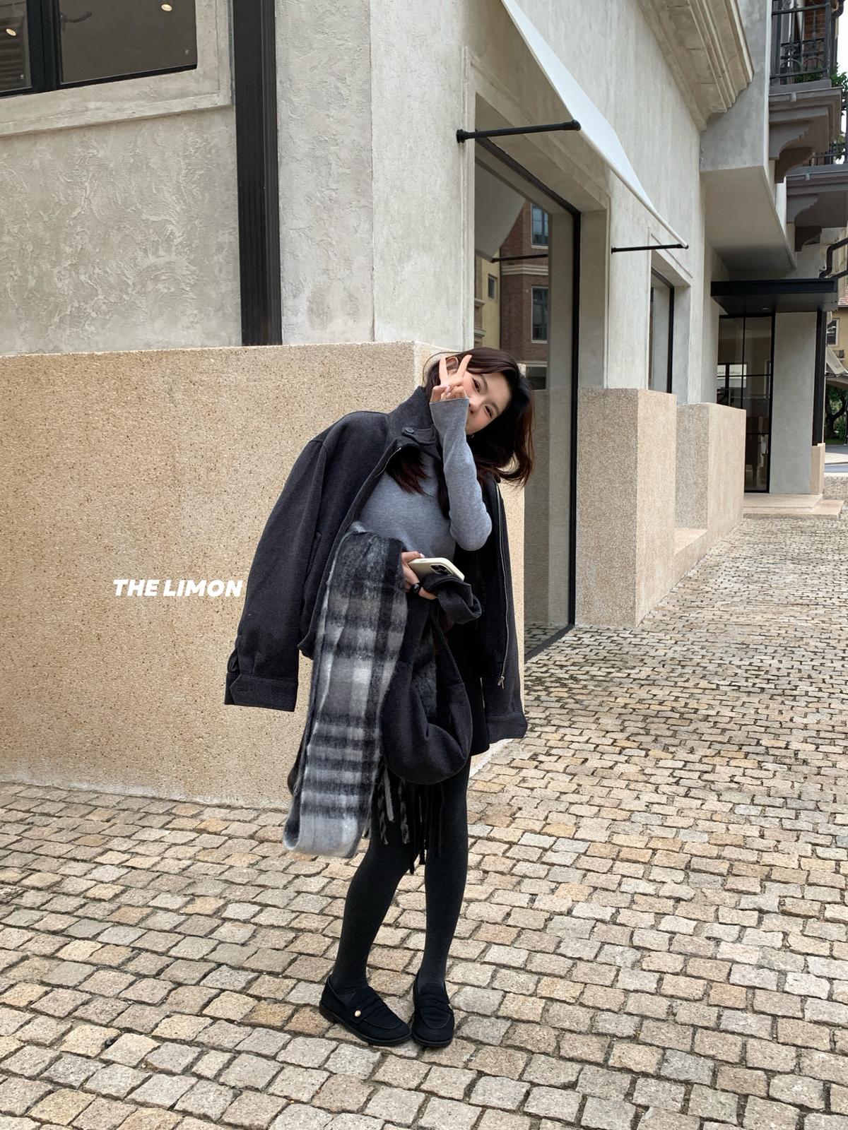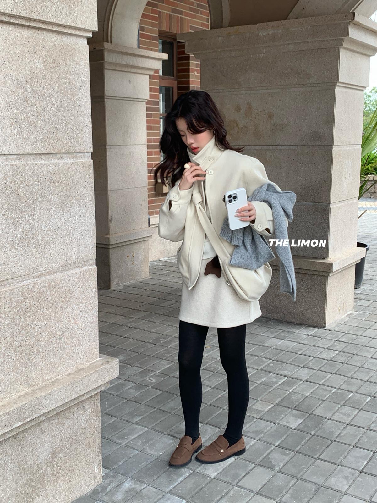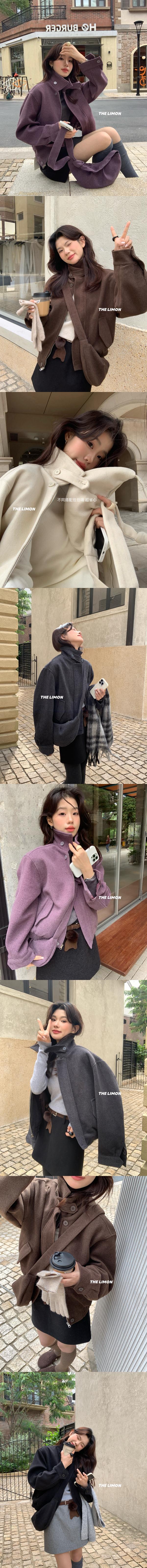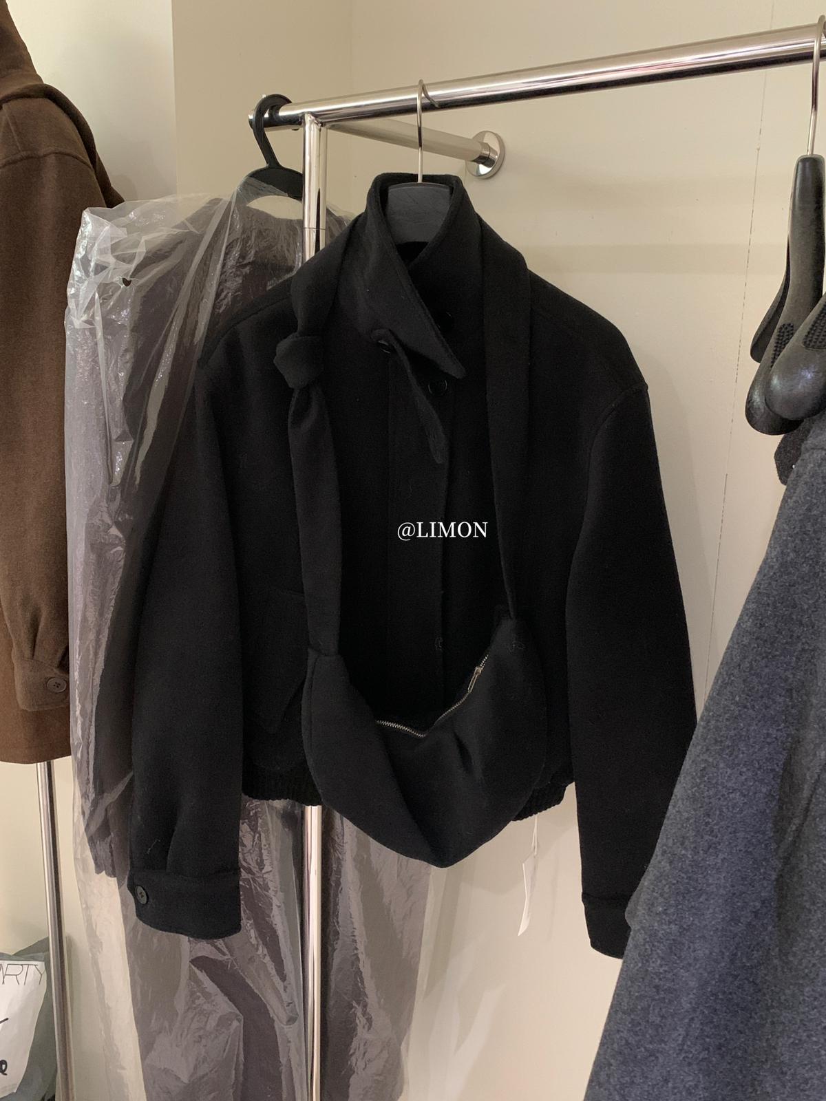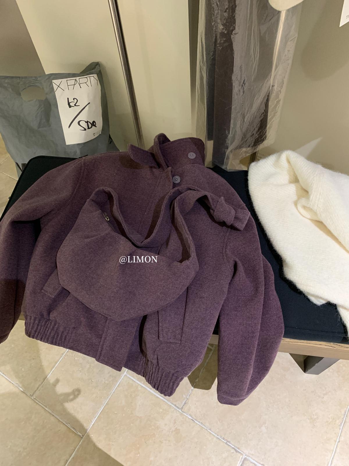 【C7696】韓系時尚立領保暖夾克短外套(配斜挎包)(含20%羊毛)(內裏夾棉)