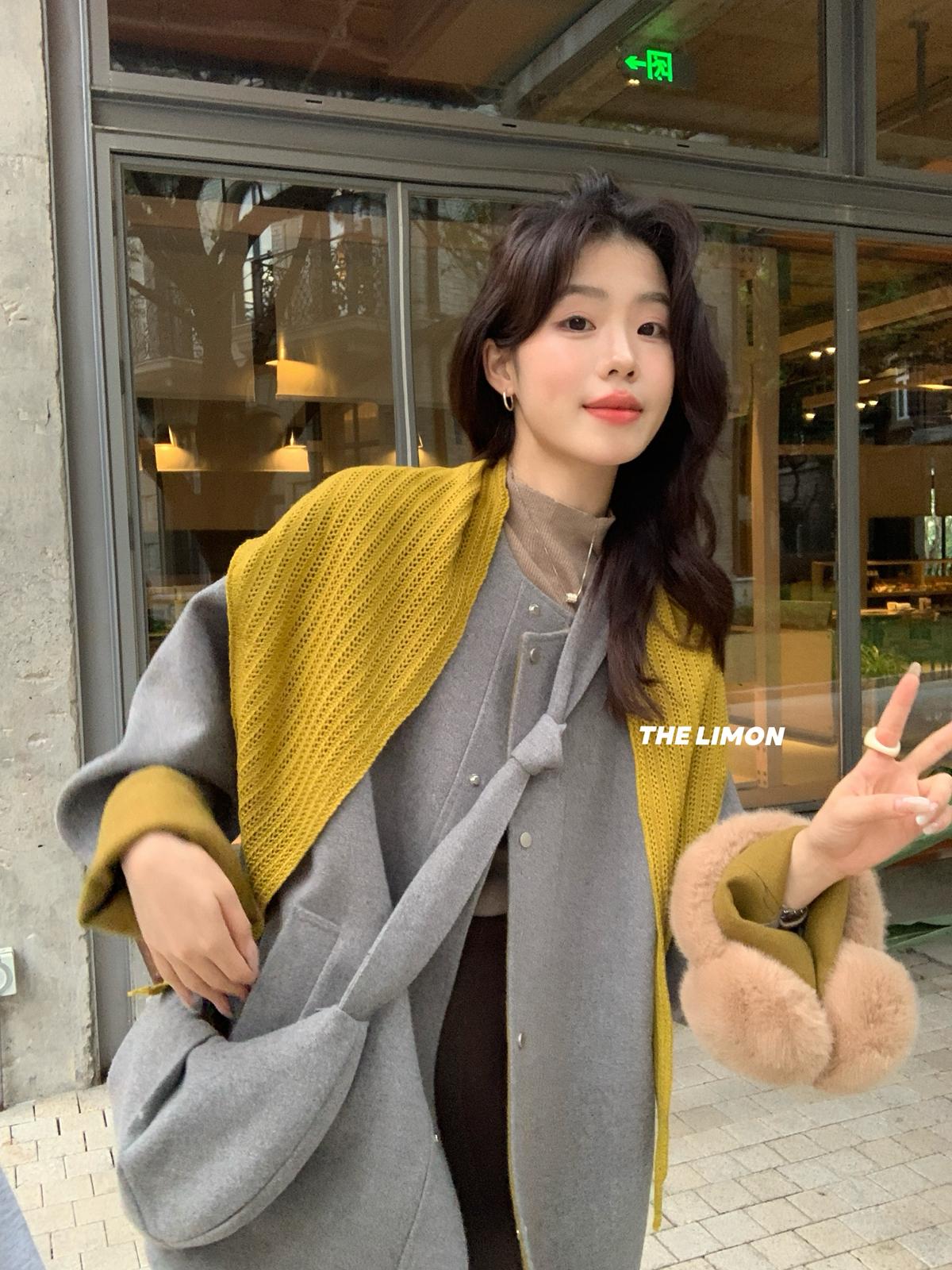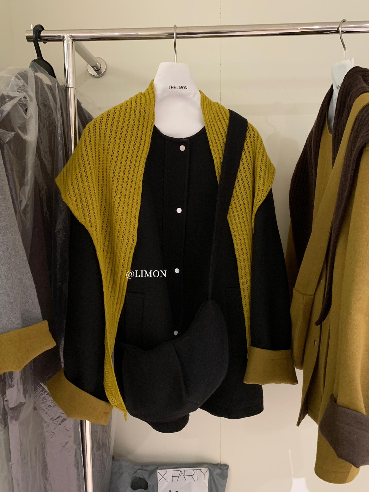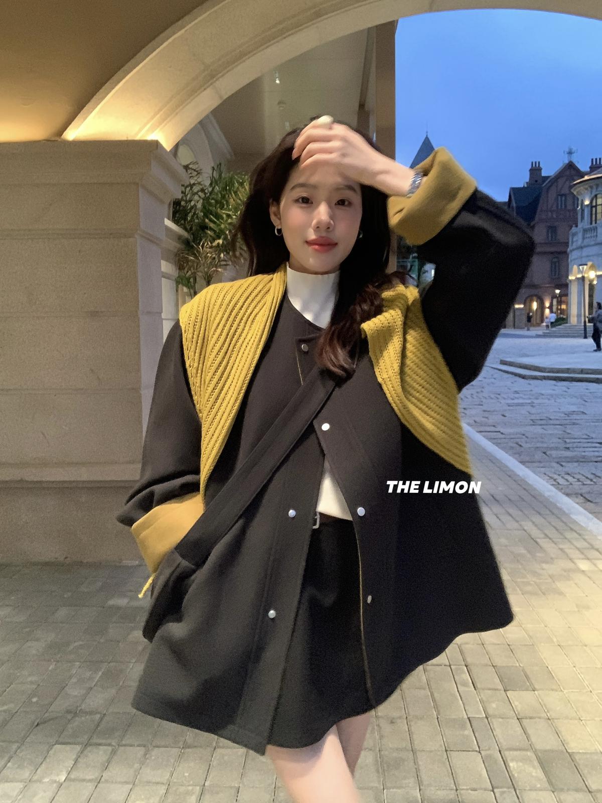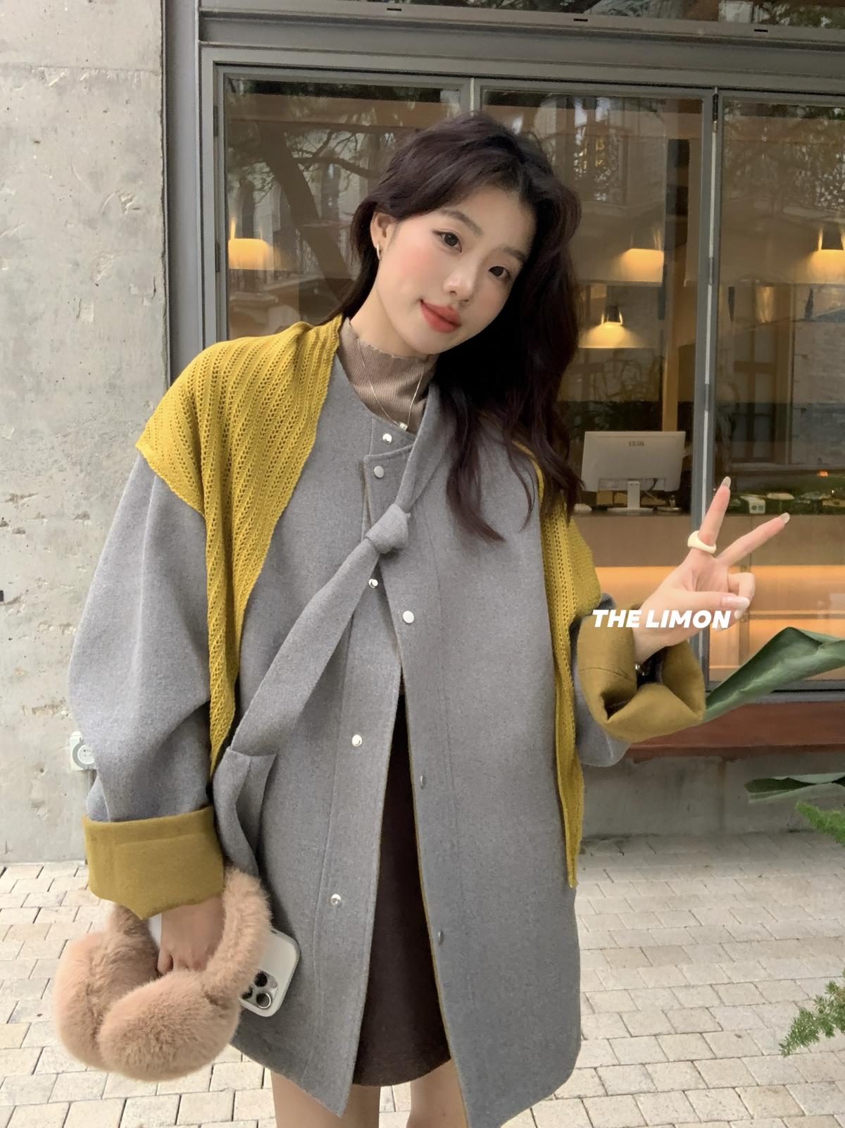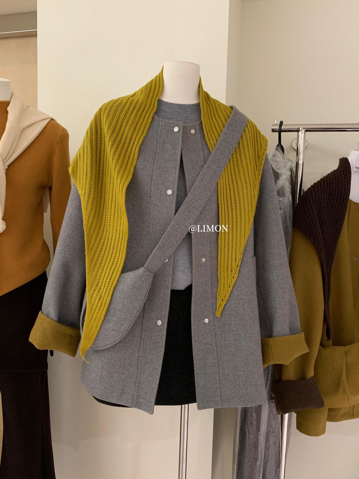 【C7697】超好看設計感撞色寬鬆呢料大衣(配披肩,斜挎包)