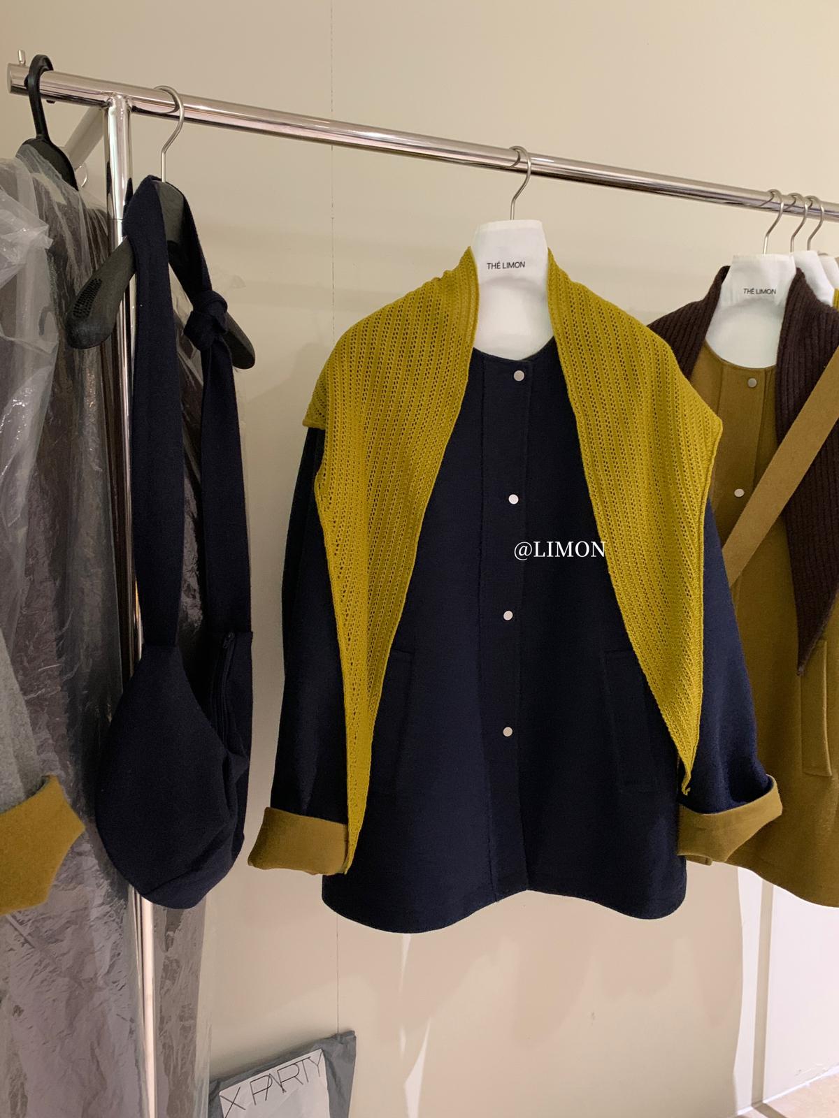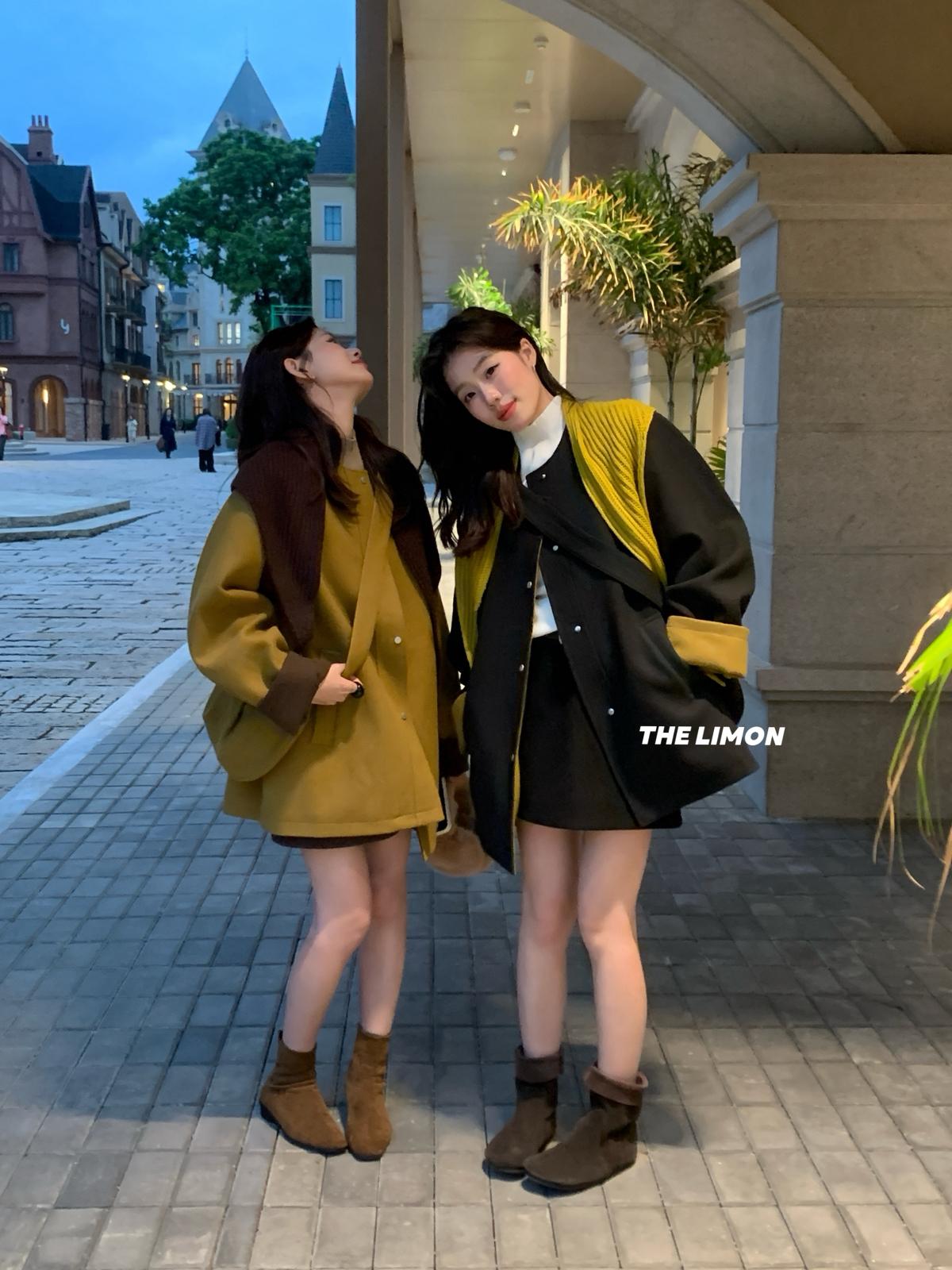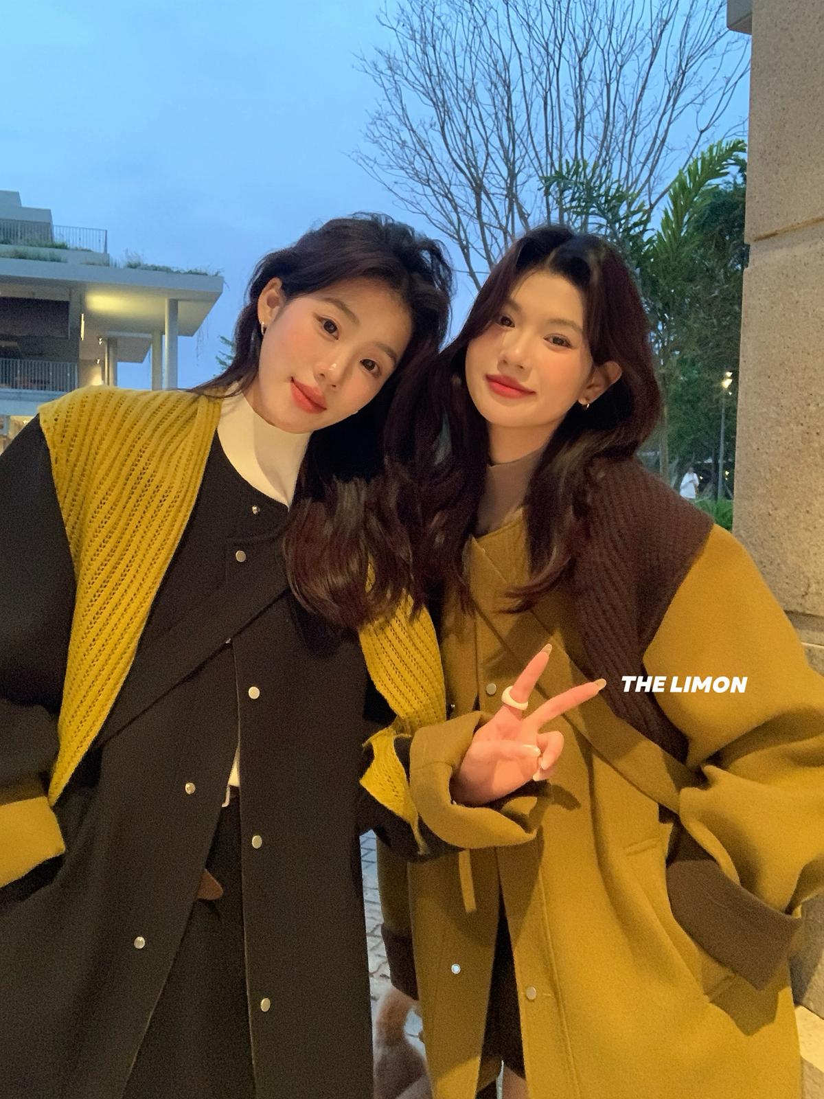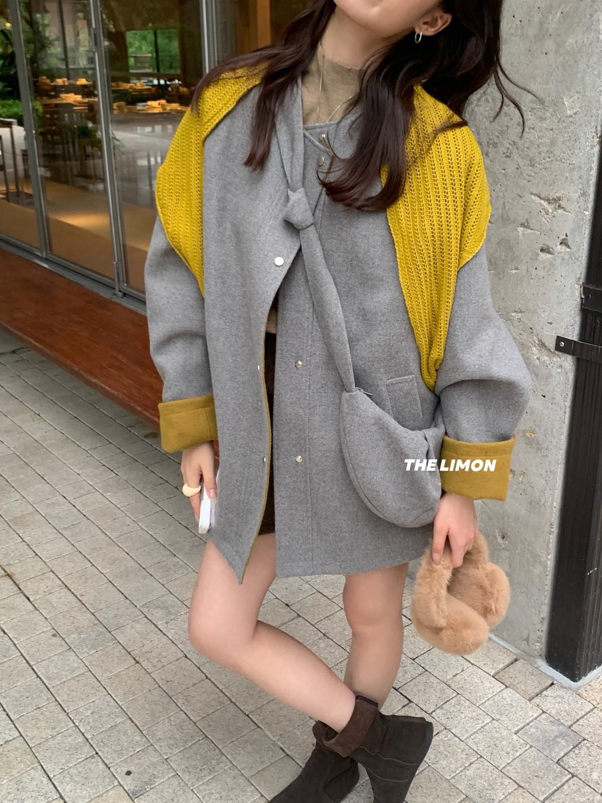 【C7697】超好看設計感撞色寬鬆呢料大衣(配披肩,斜挎包)