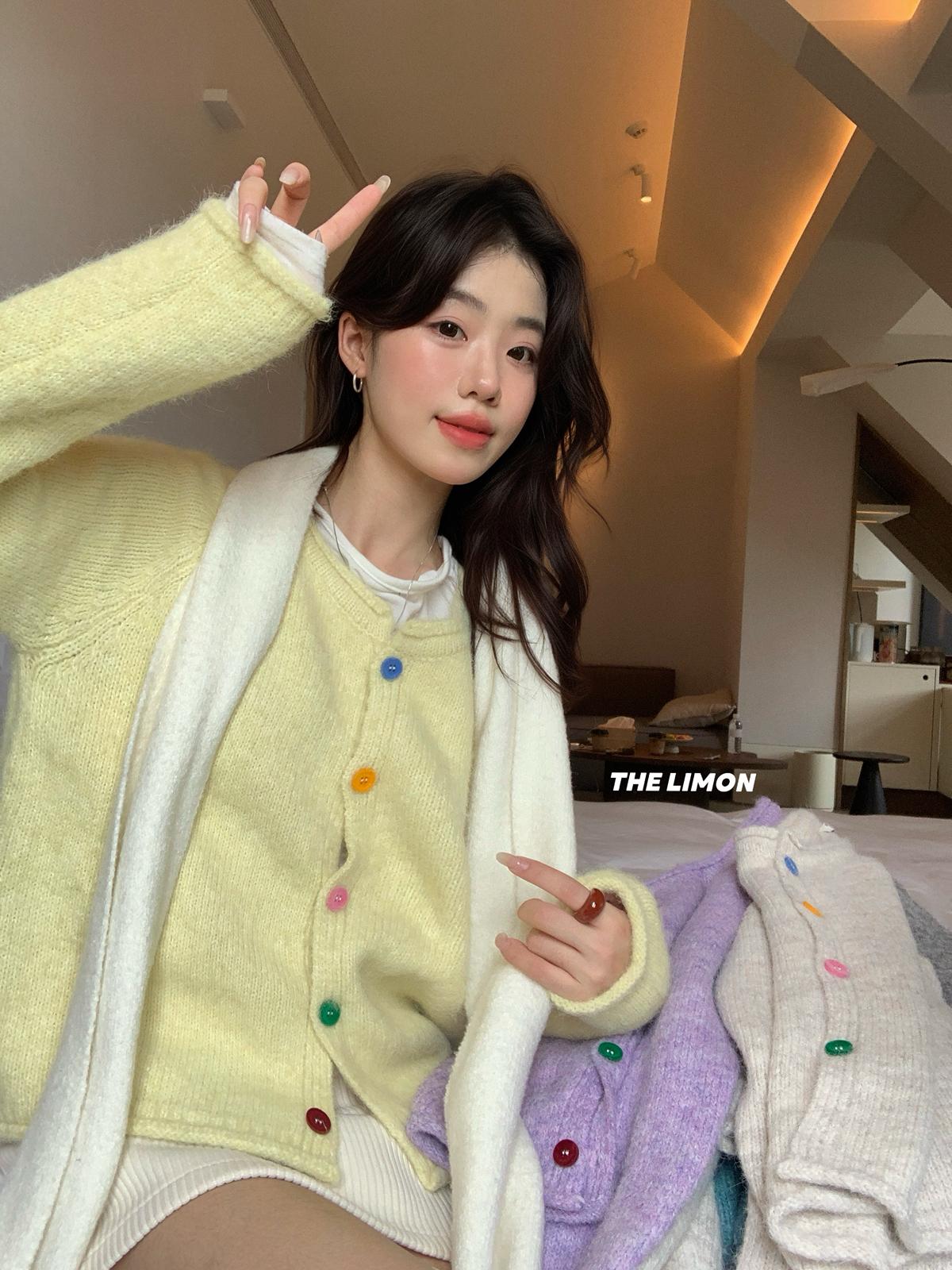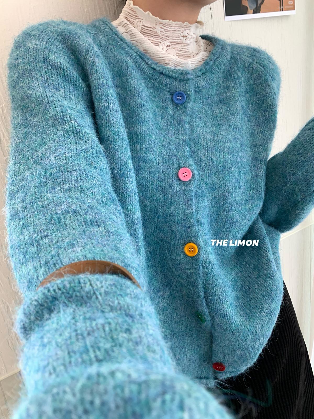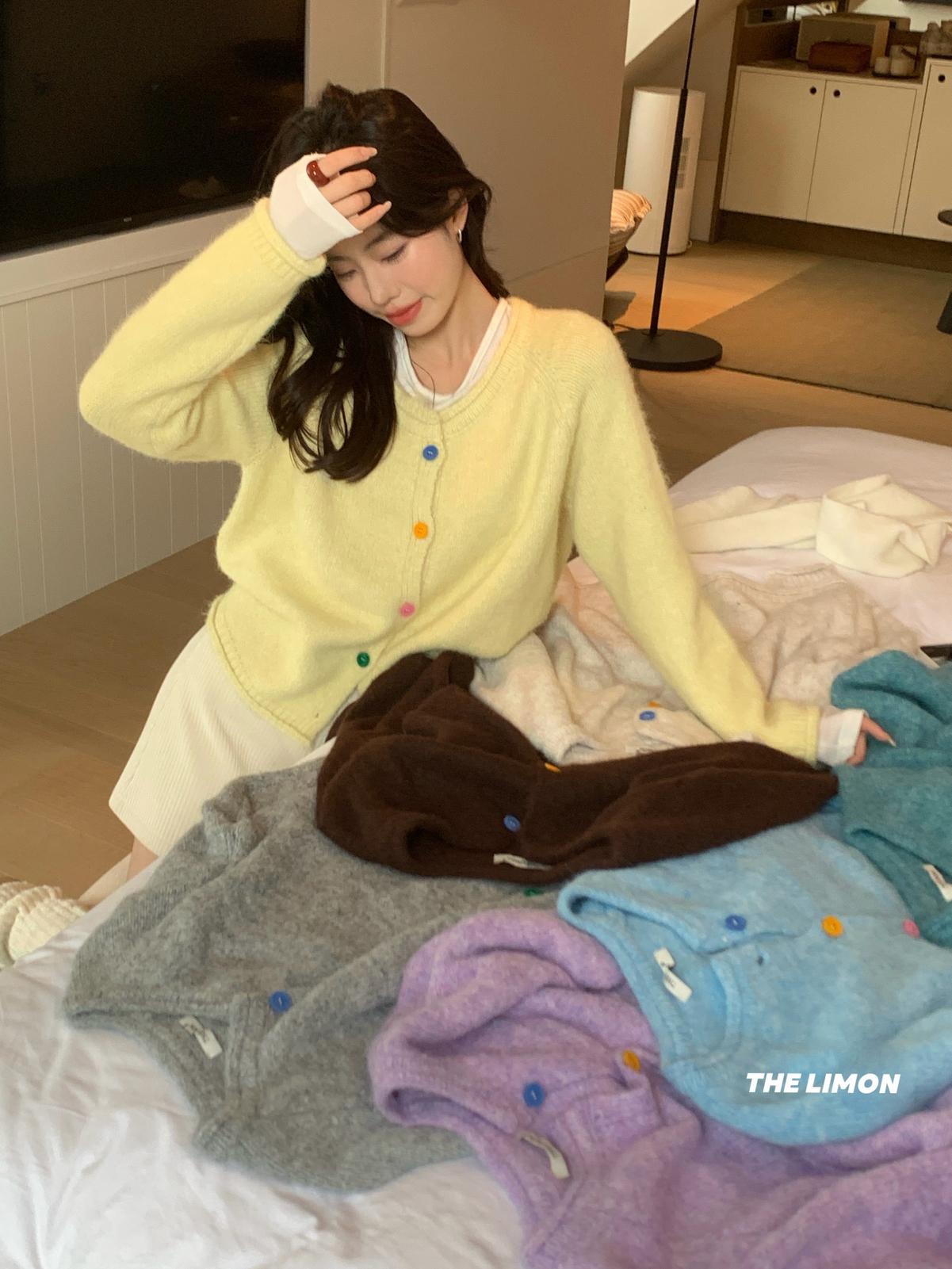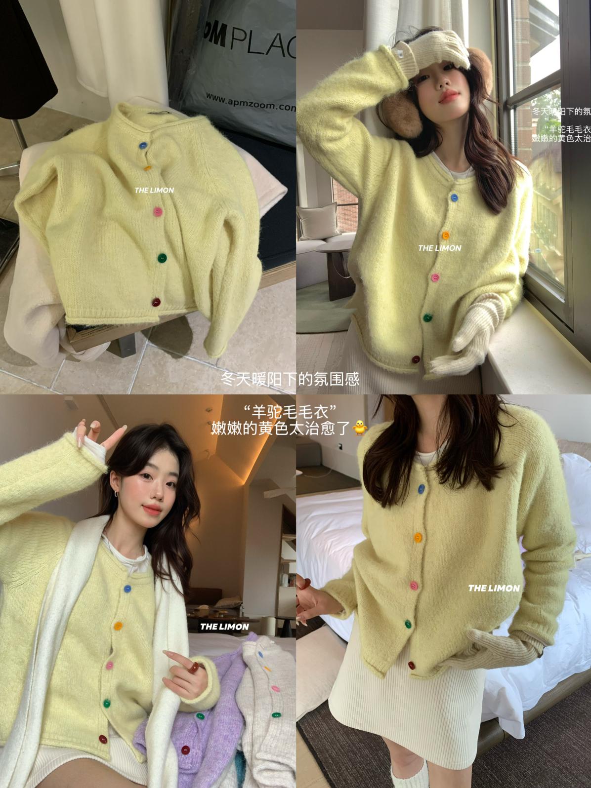 【C7698】韓系溫柔軟糯彩扣羊駝毛開衫毛衣(含8%羊毛)