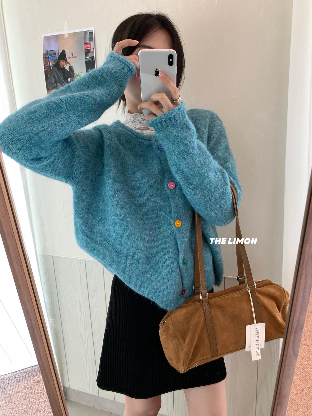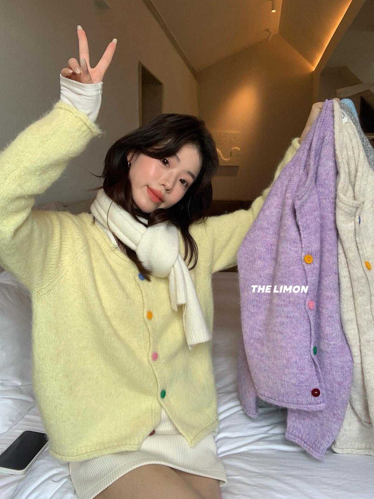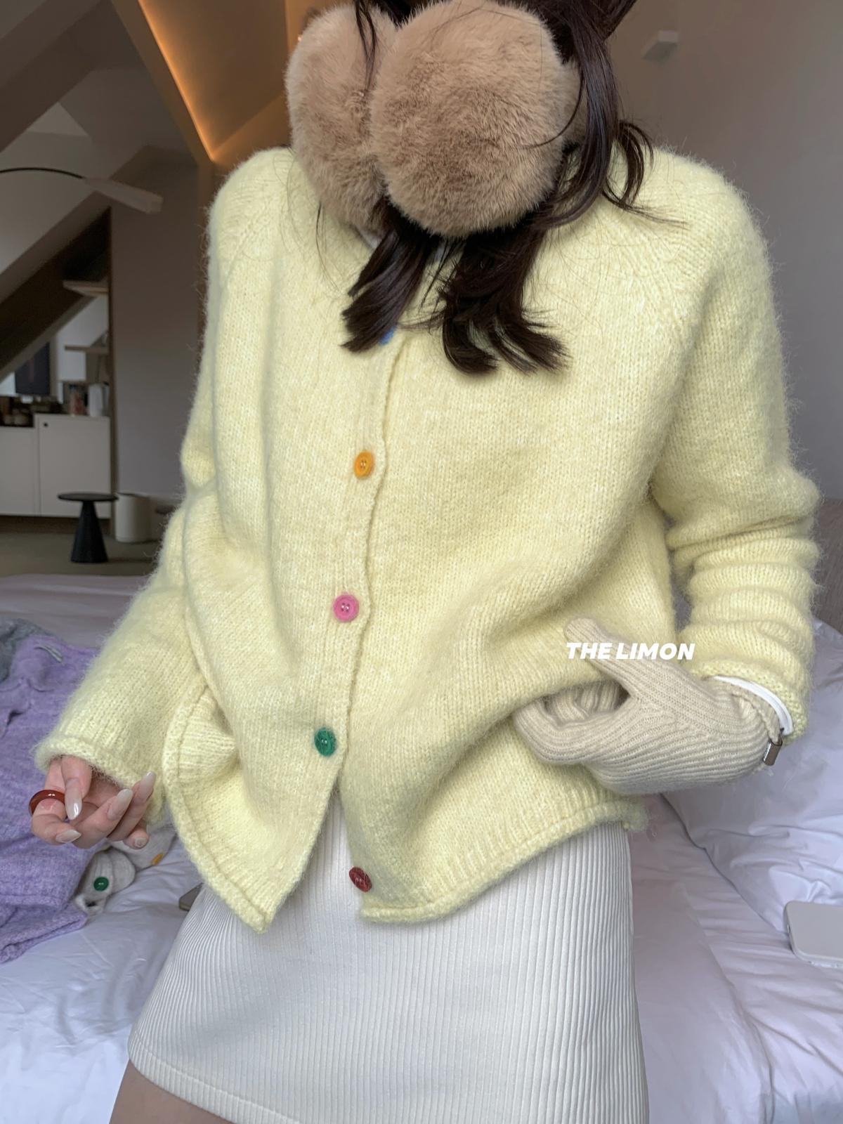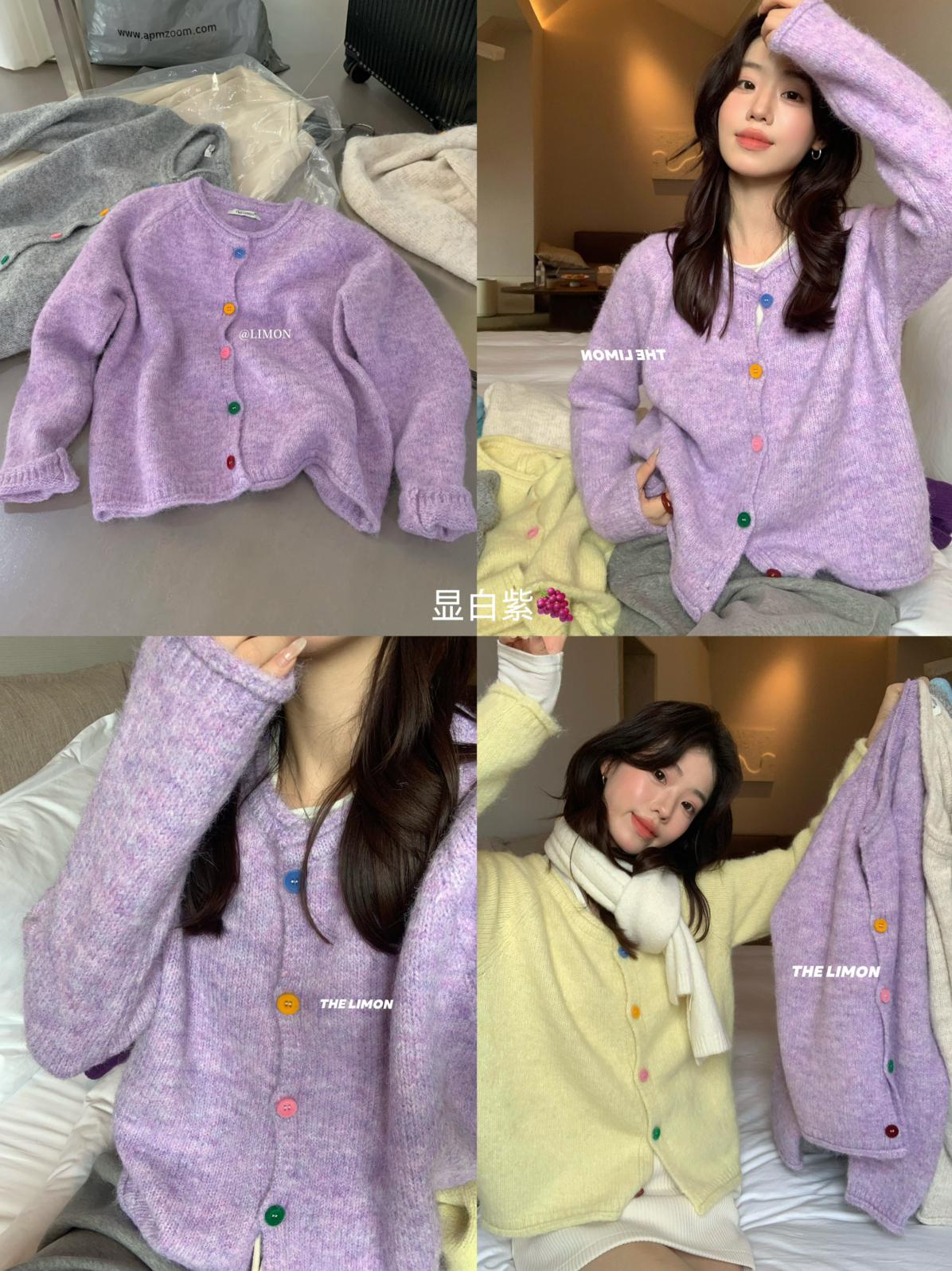 【C7698】韓系溫柔軟糯彩扣羊駝毛開衫毛衣(含8%羊毛)