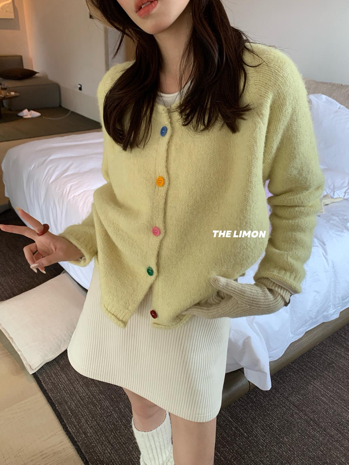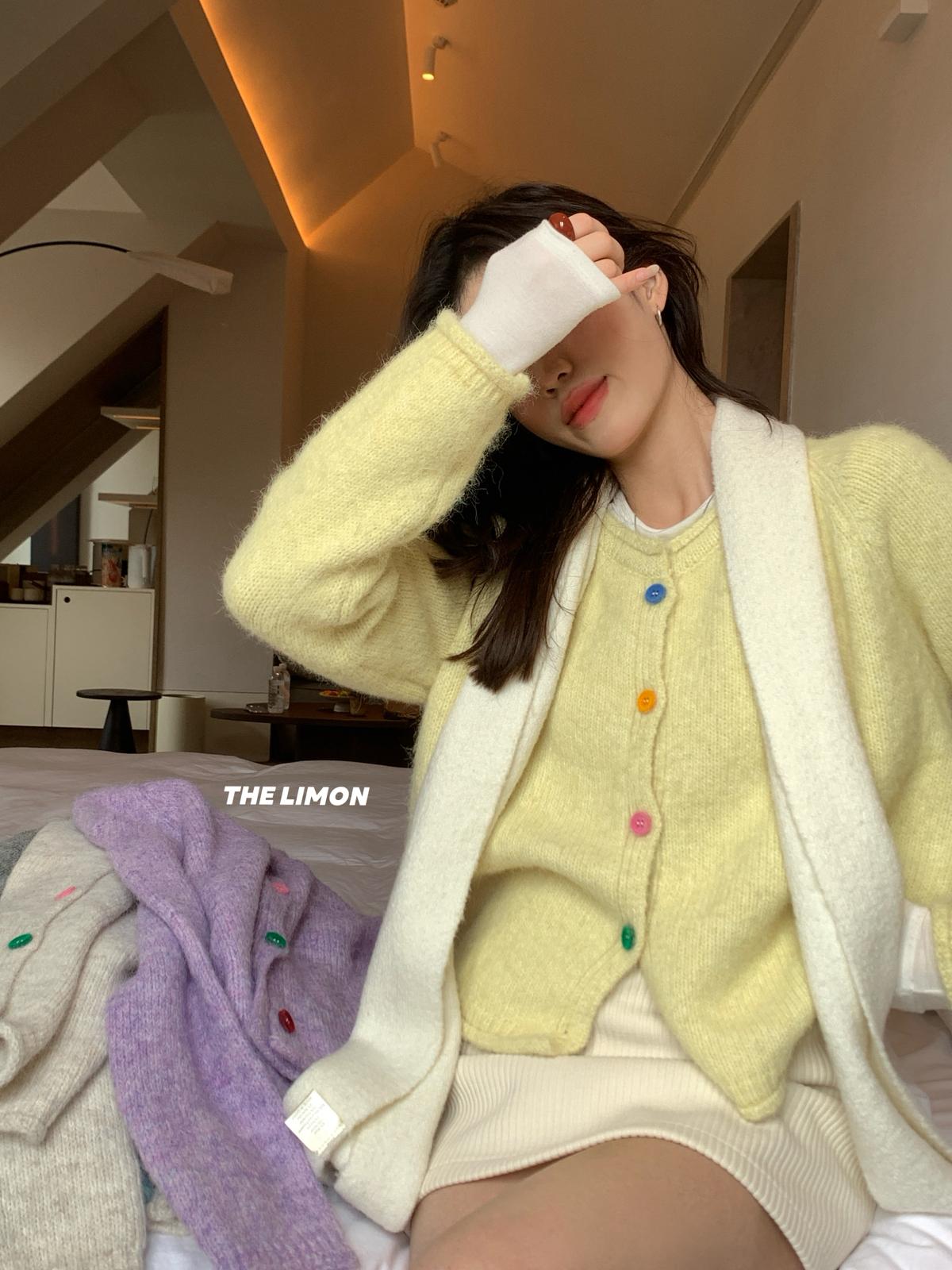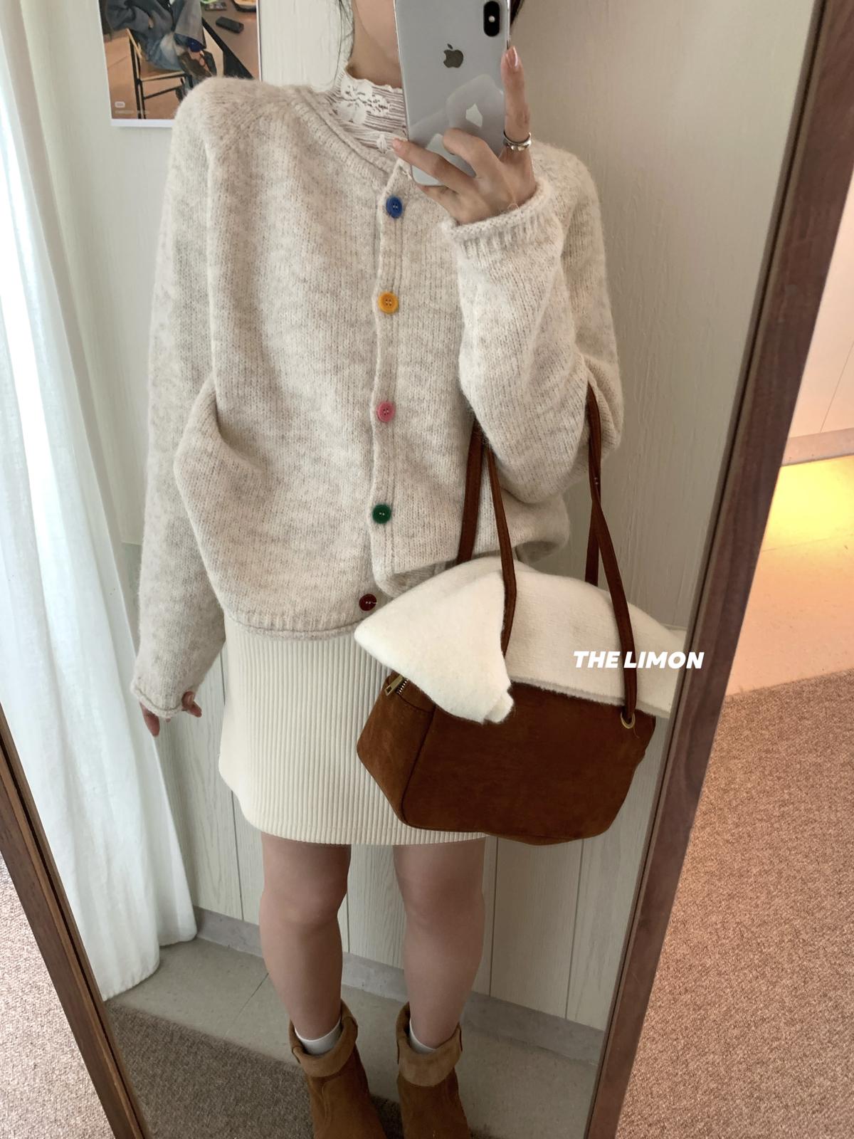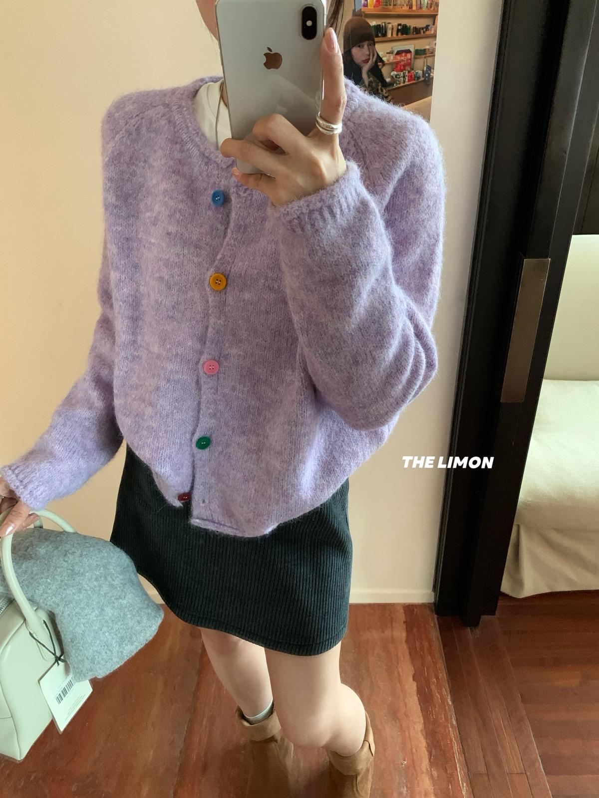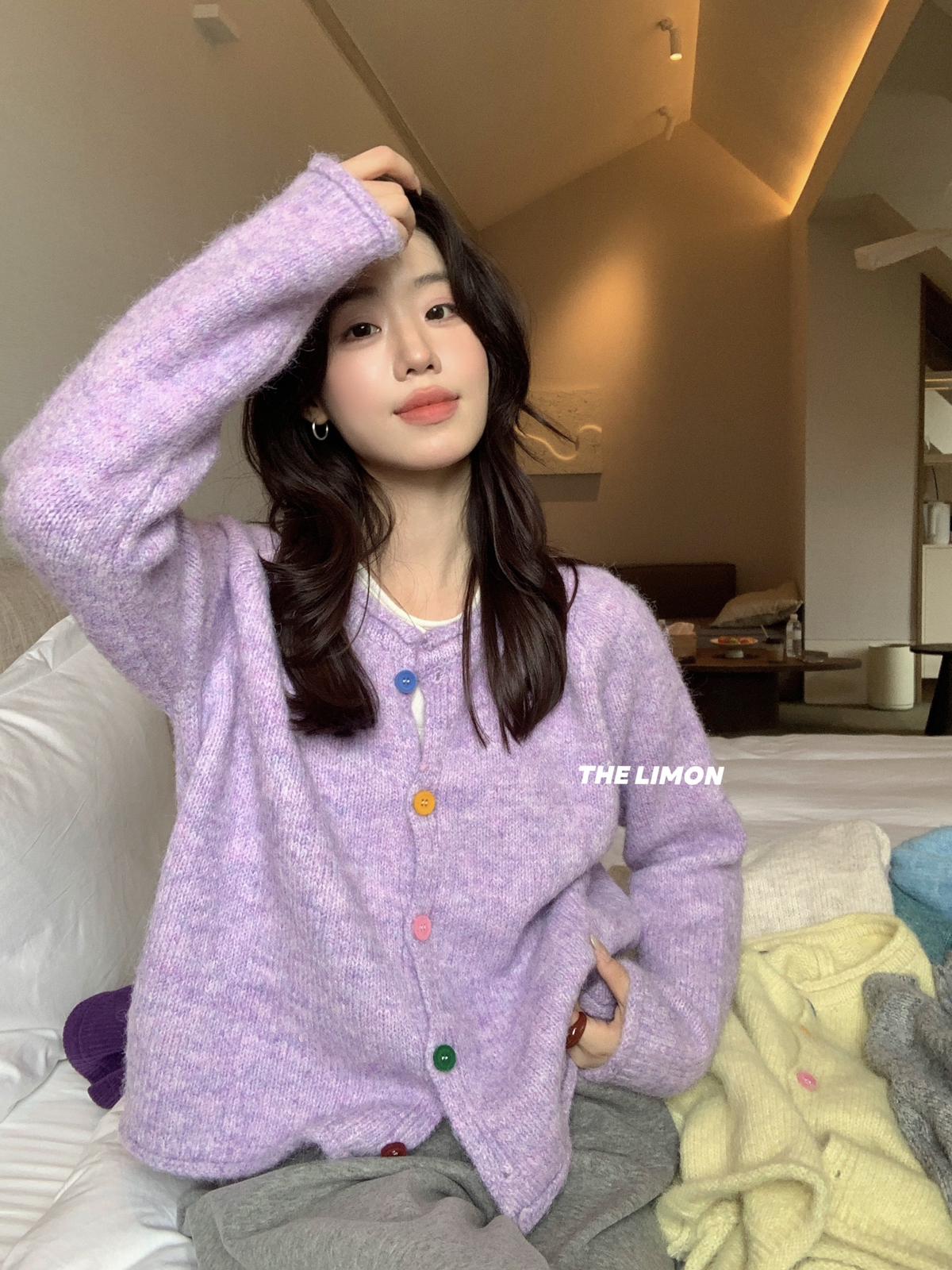 【C7698】韓系溫柔軟糯彩扣羊駝毛開衫毛衣(含8%羊毛)