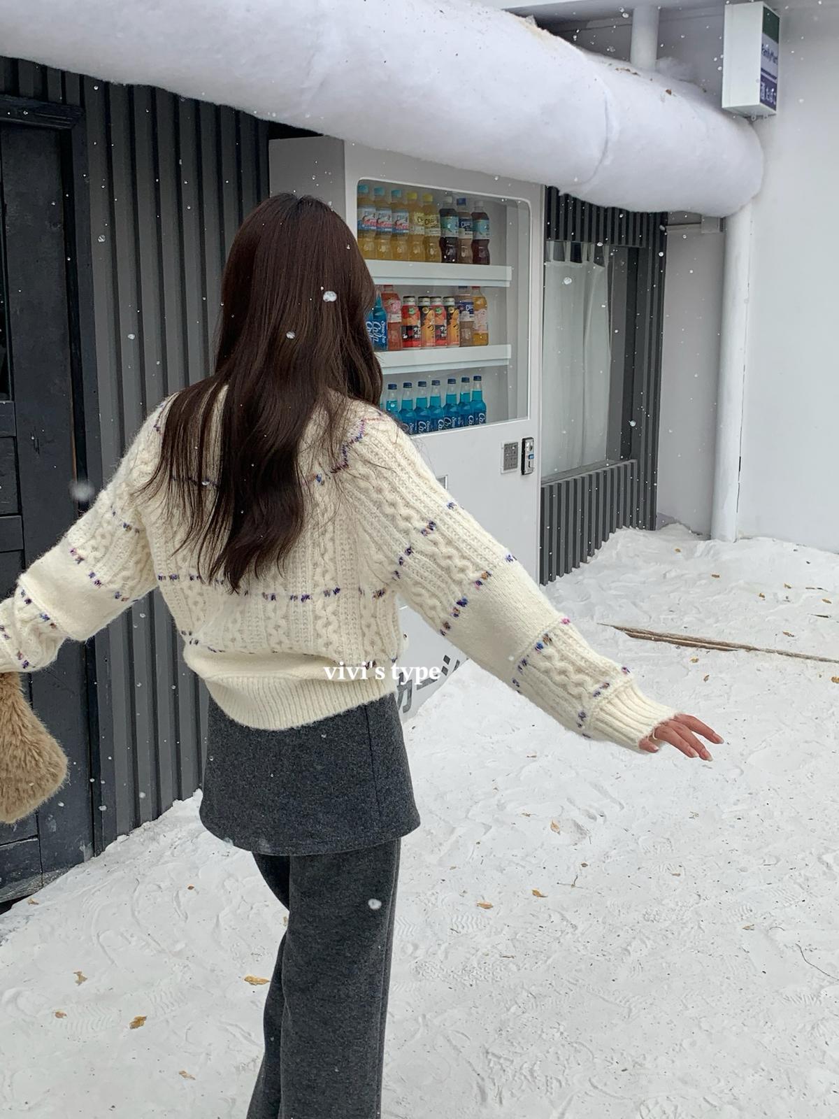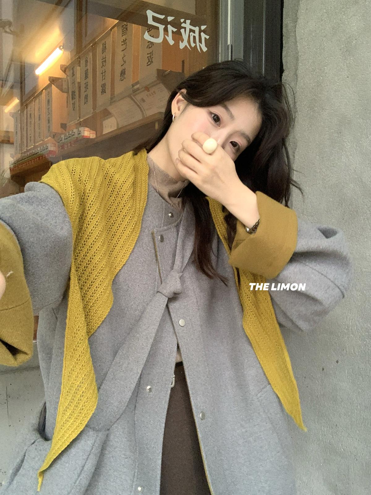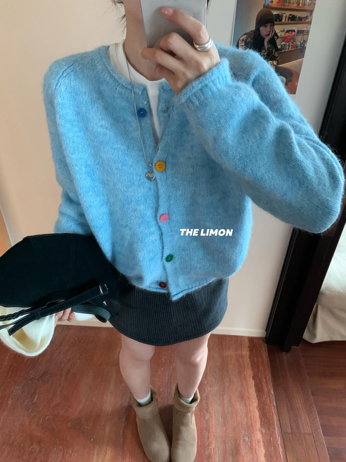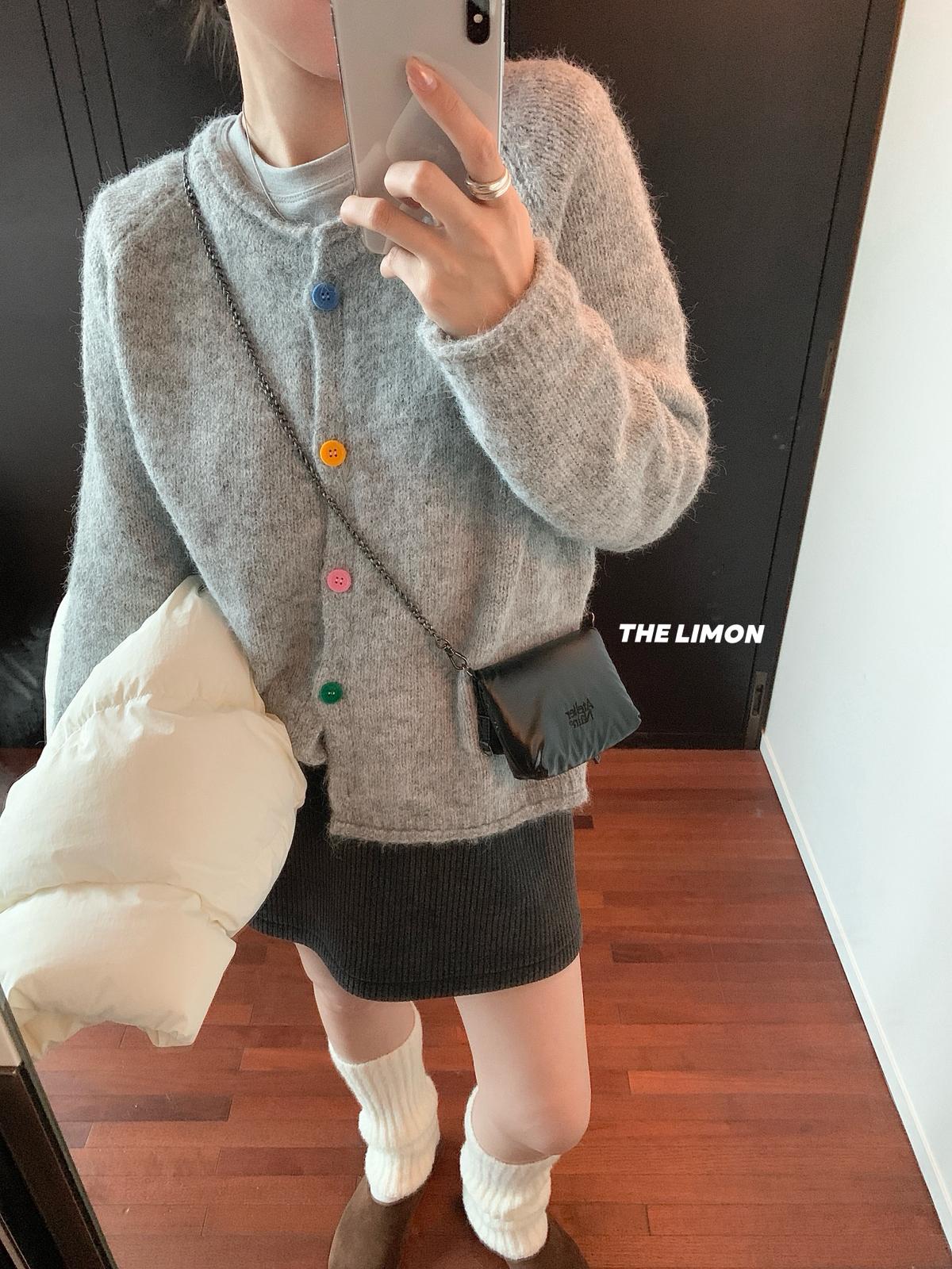 【C7698】韓系溫柔軟糯彩扣羊駝毛開衫毛衣(含8%羊毛)