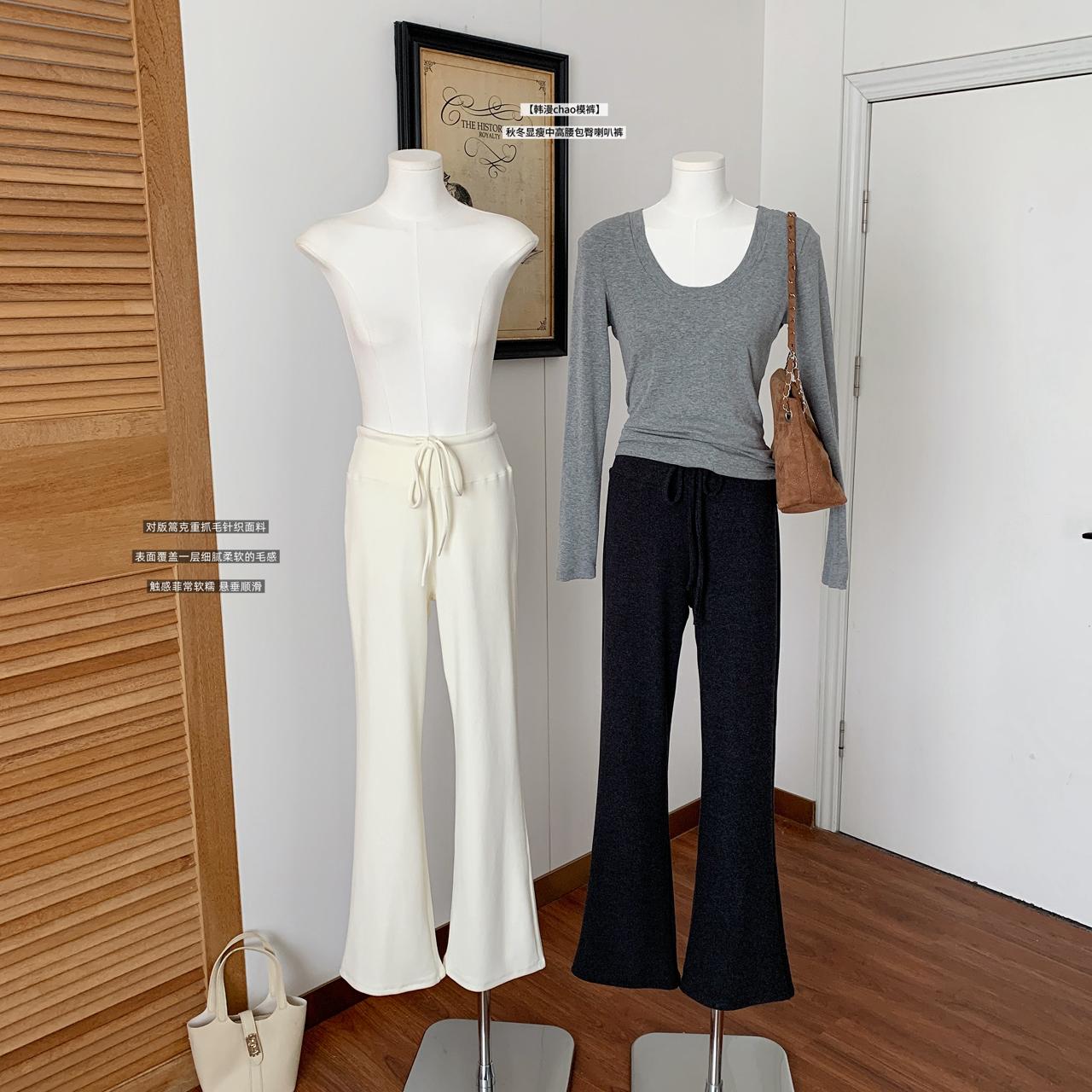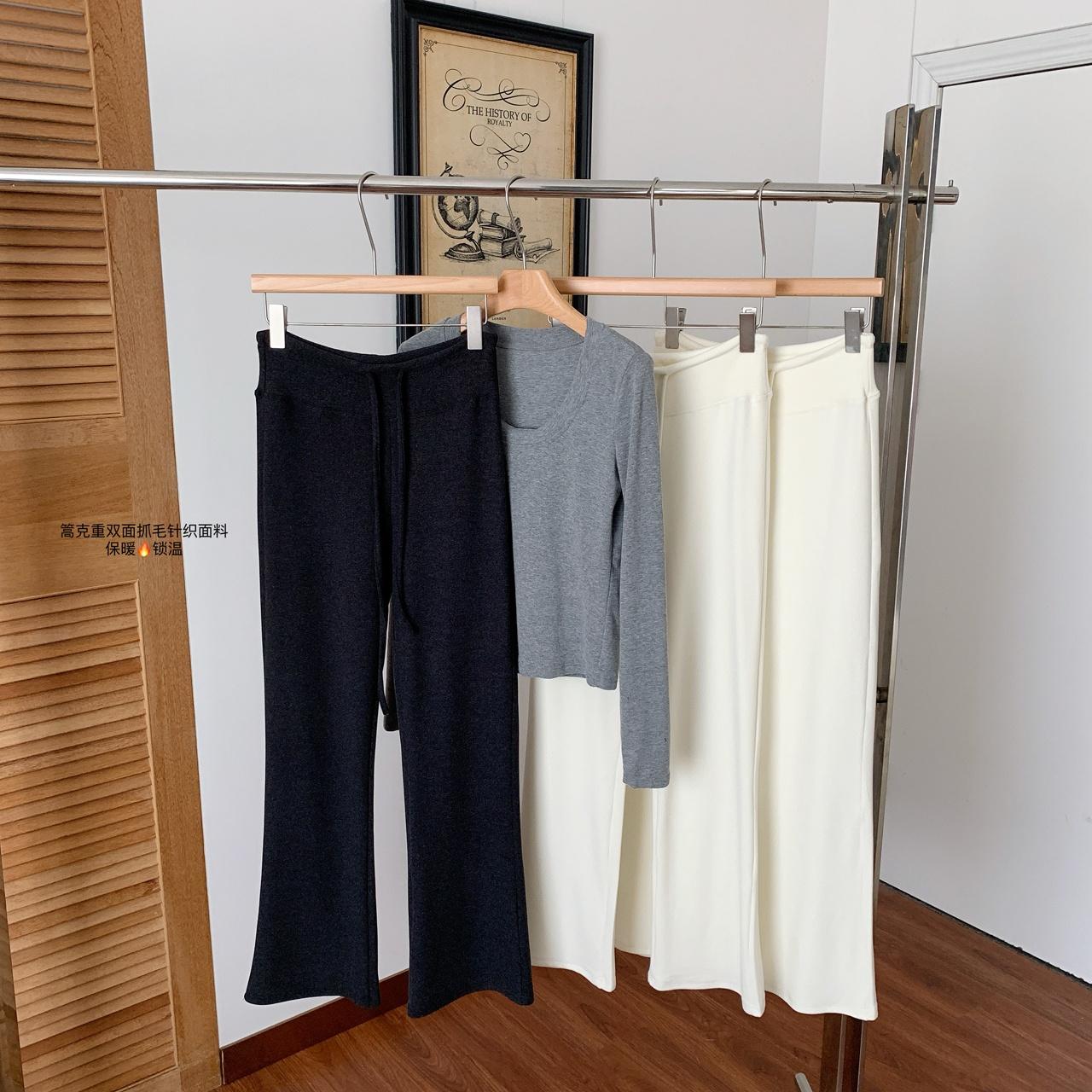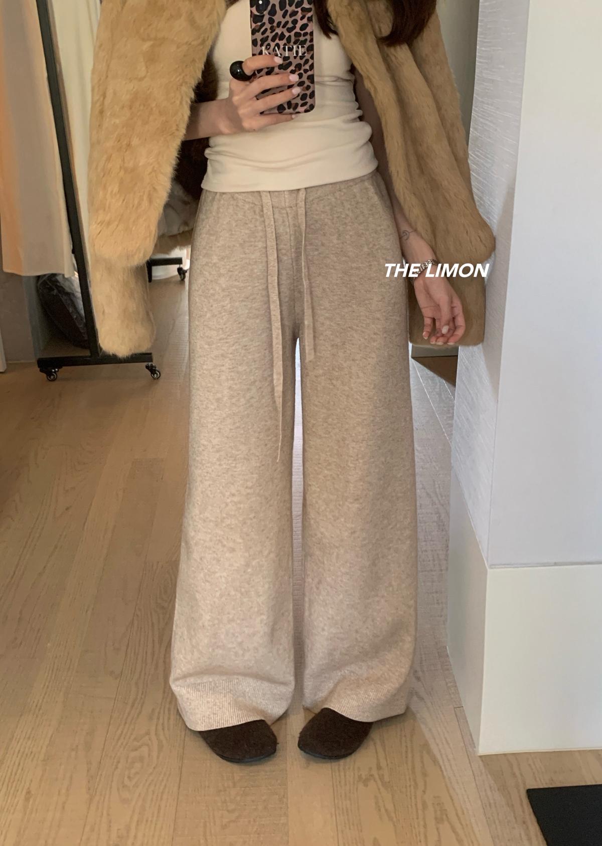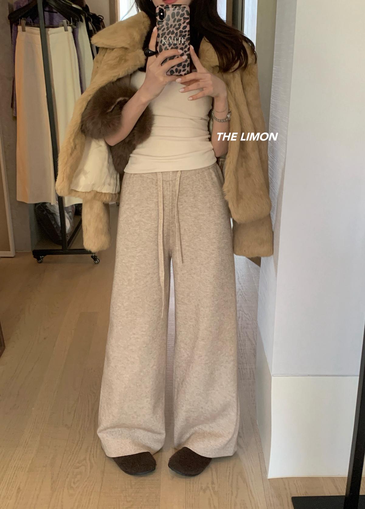 【C7699】安迪絨保暖顯瘦百搭寬鬆拖地針織休閒褲