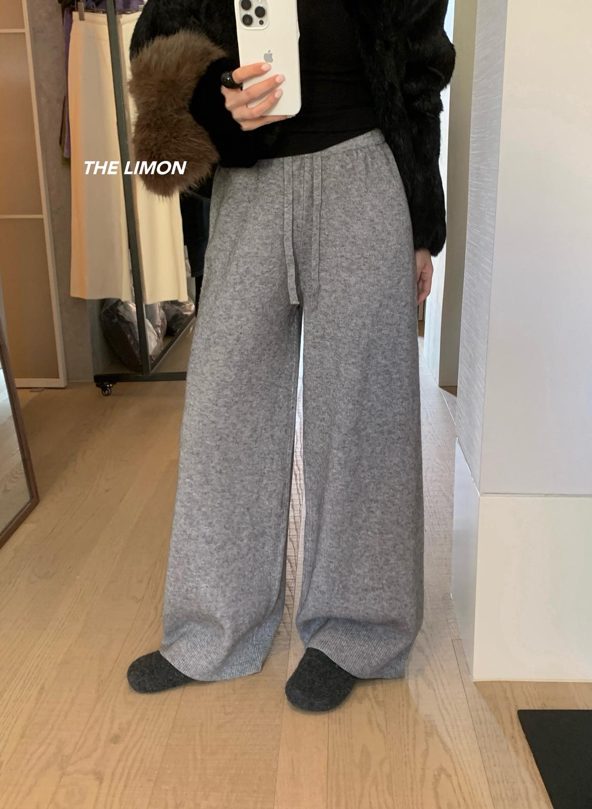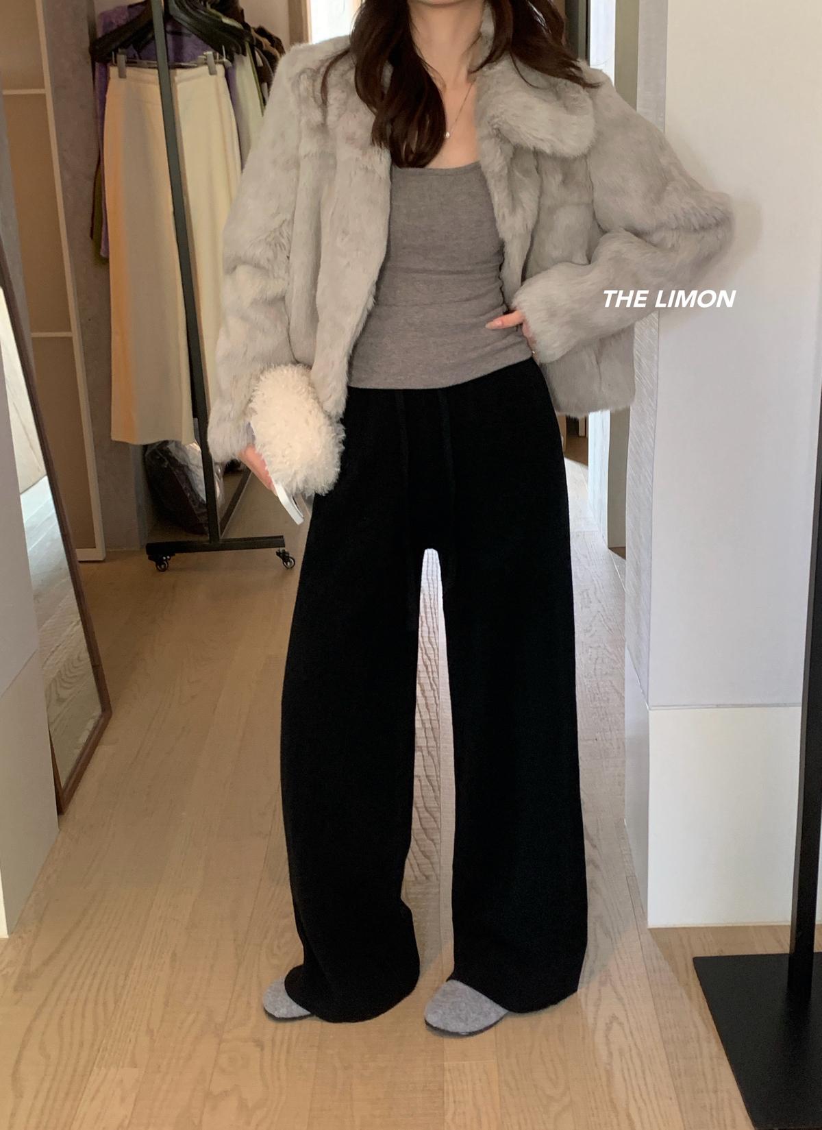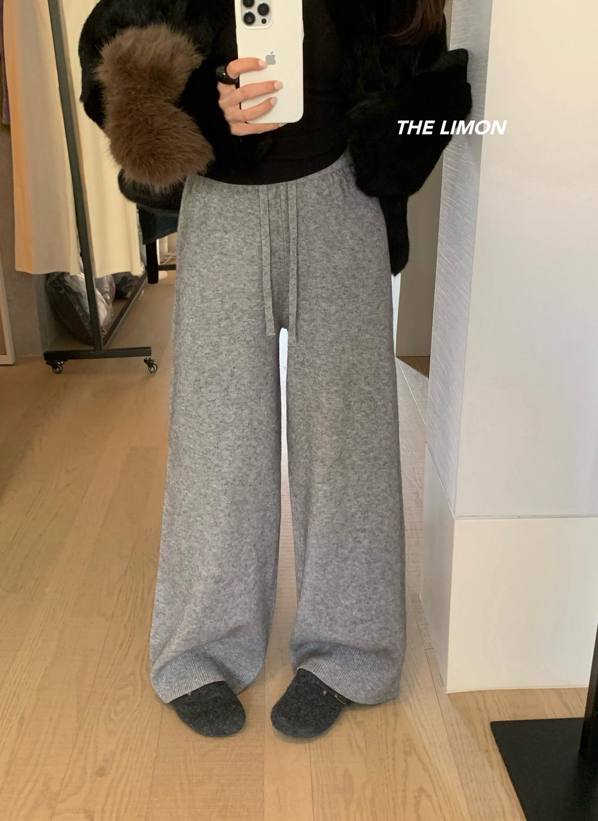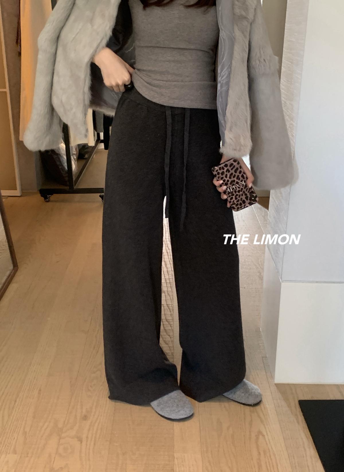【C7699】安迪絨保暖顯瘦百搭寬鬆拖地針織休閒褲