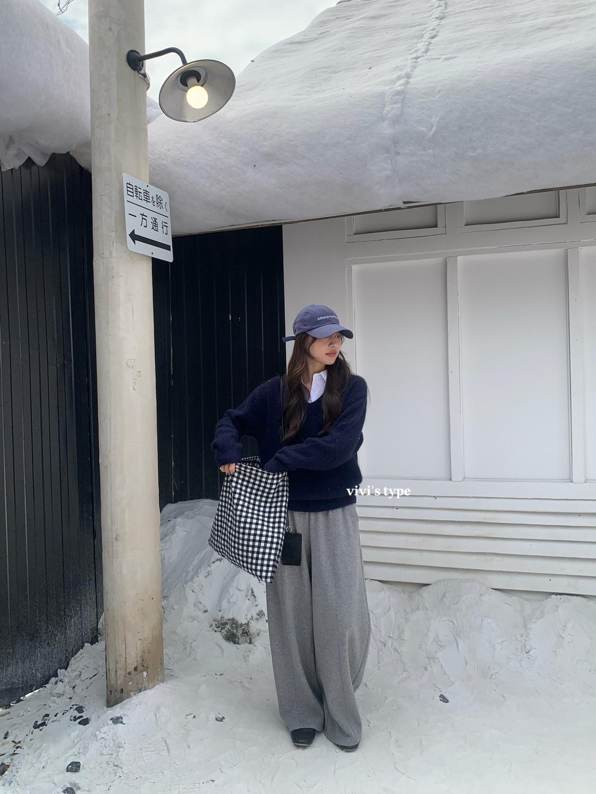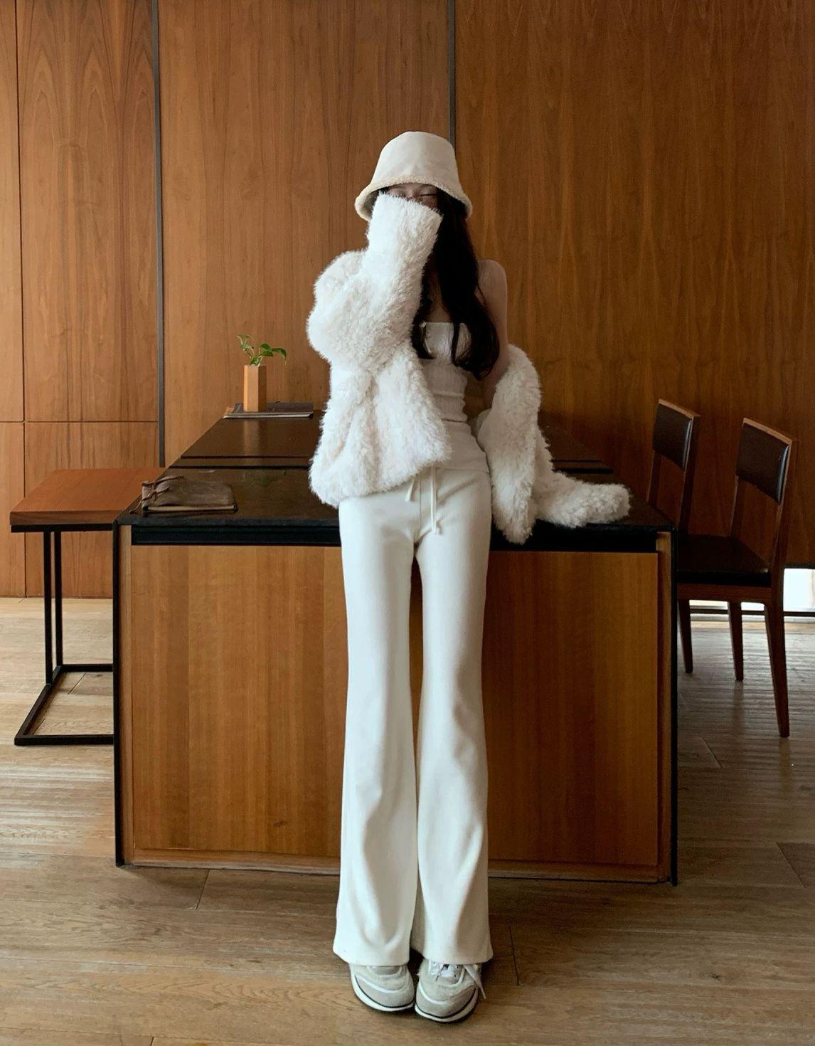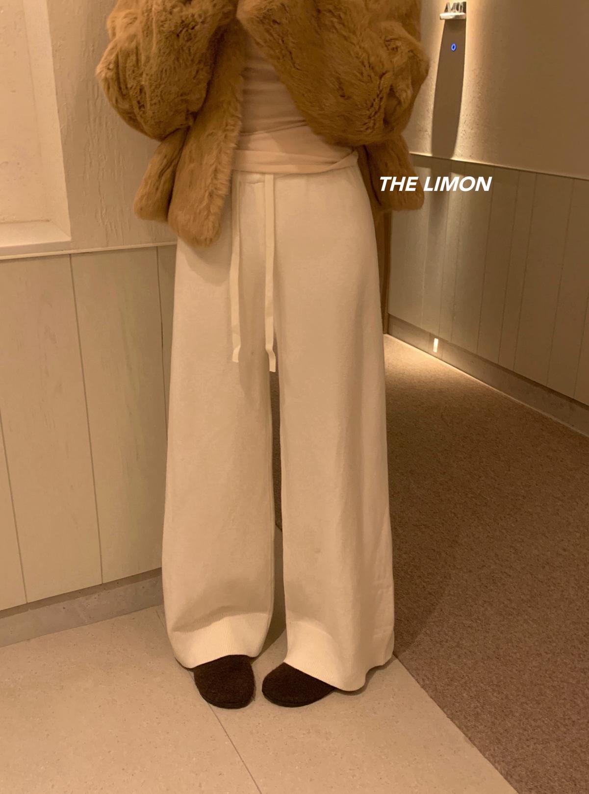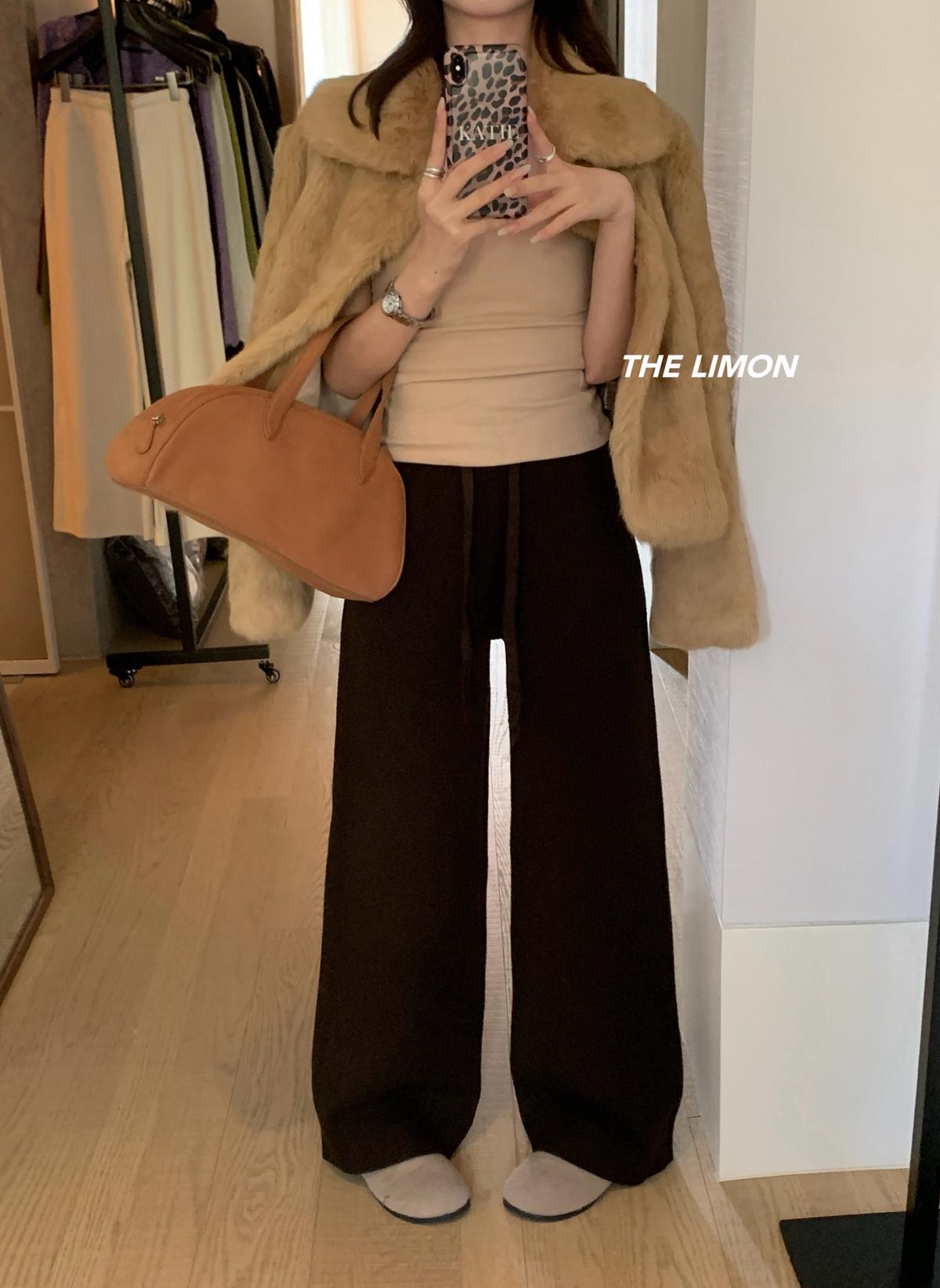 【C7699】安迪絨保暖顯瘦百搭寬鬆拖地針織休閒褲