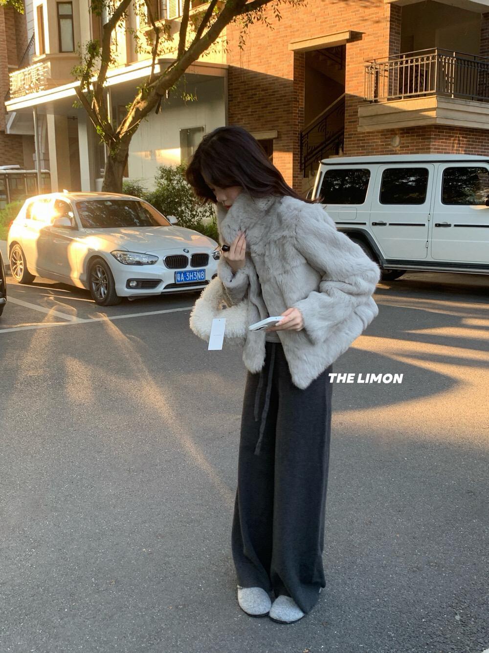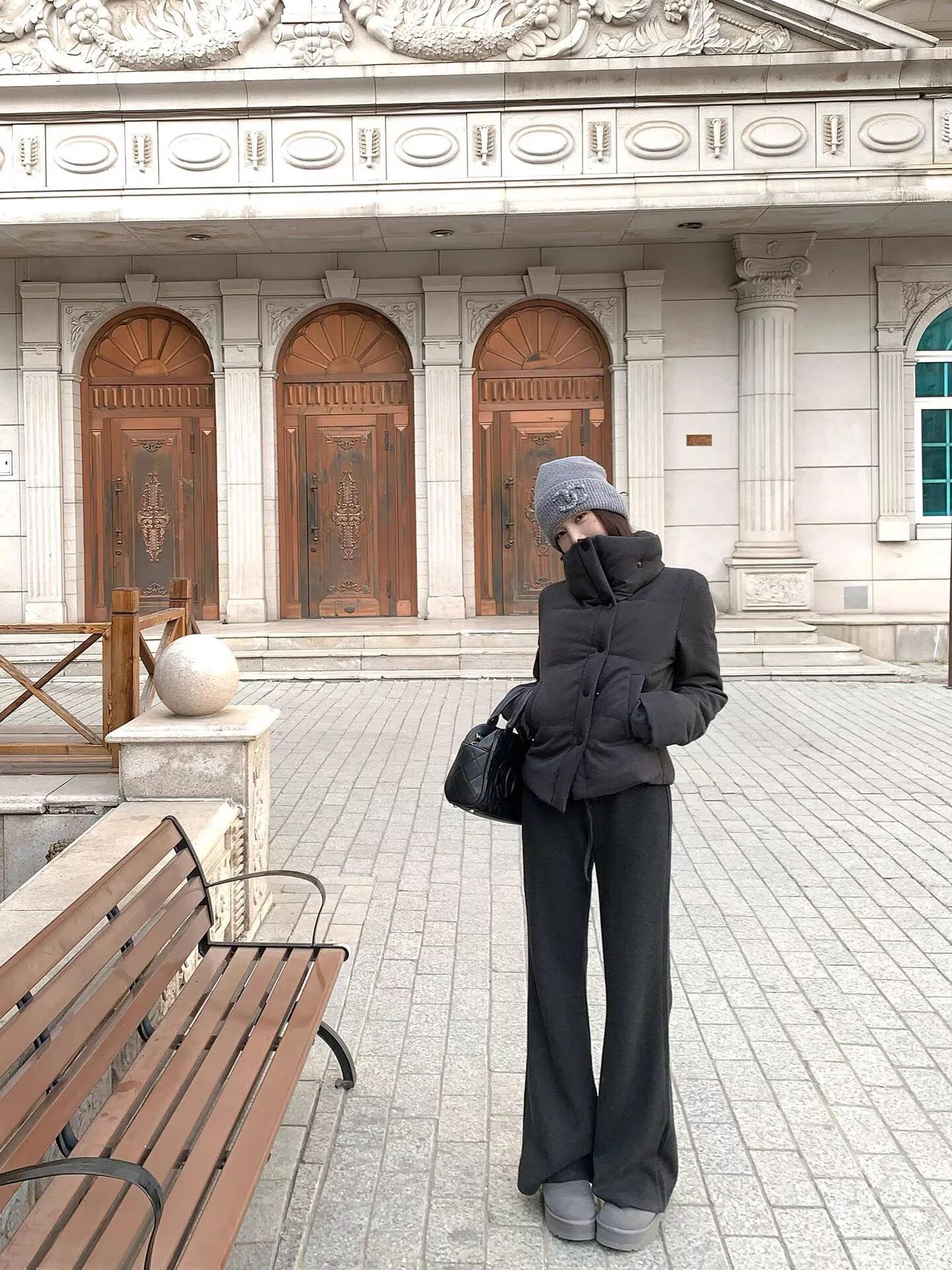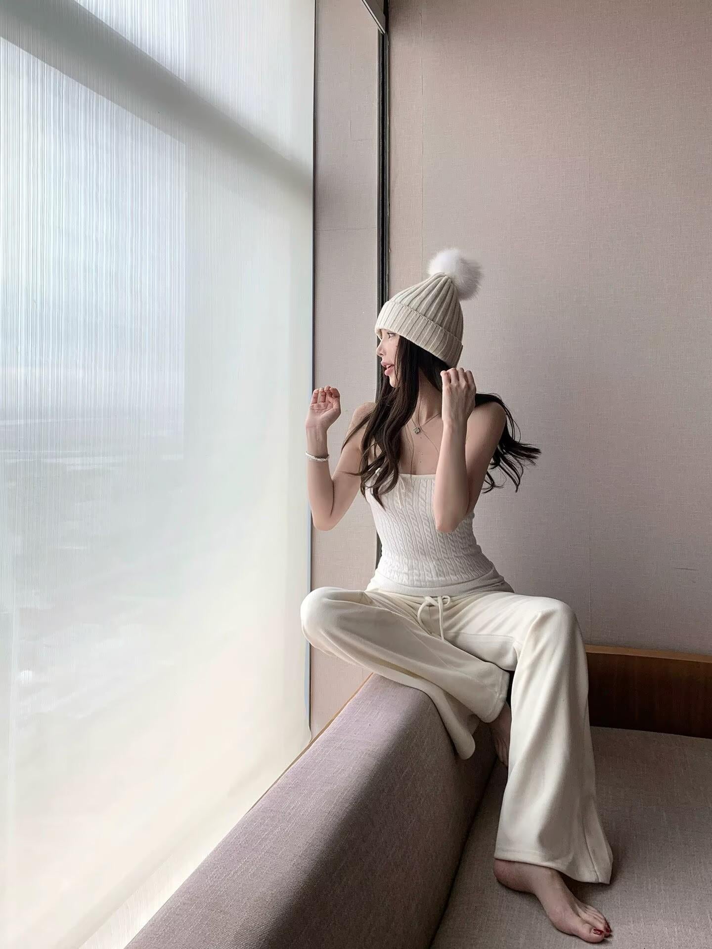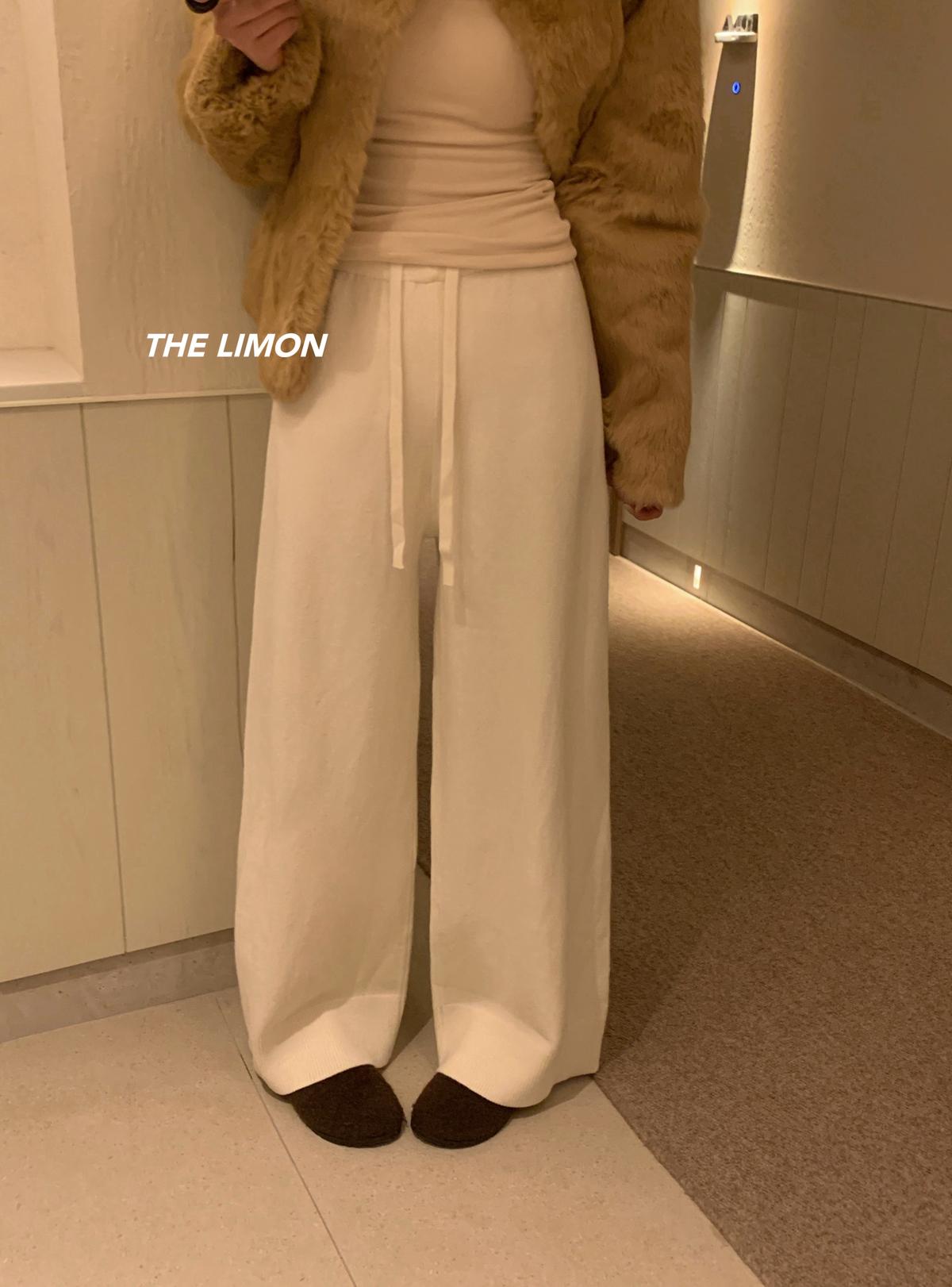 【C7699】安迪絨保暖顯瘦百搭寬鬆拖地針織休閒褲