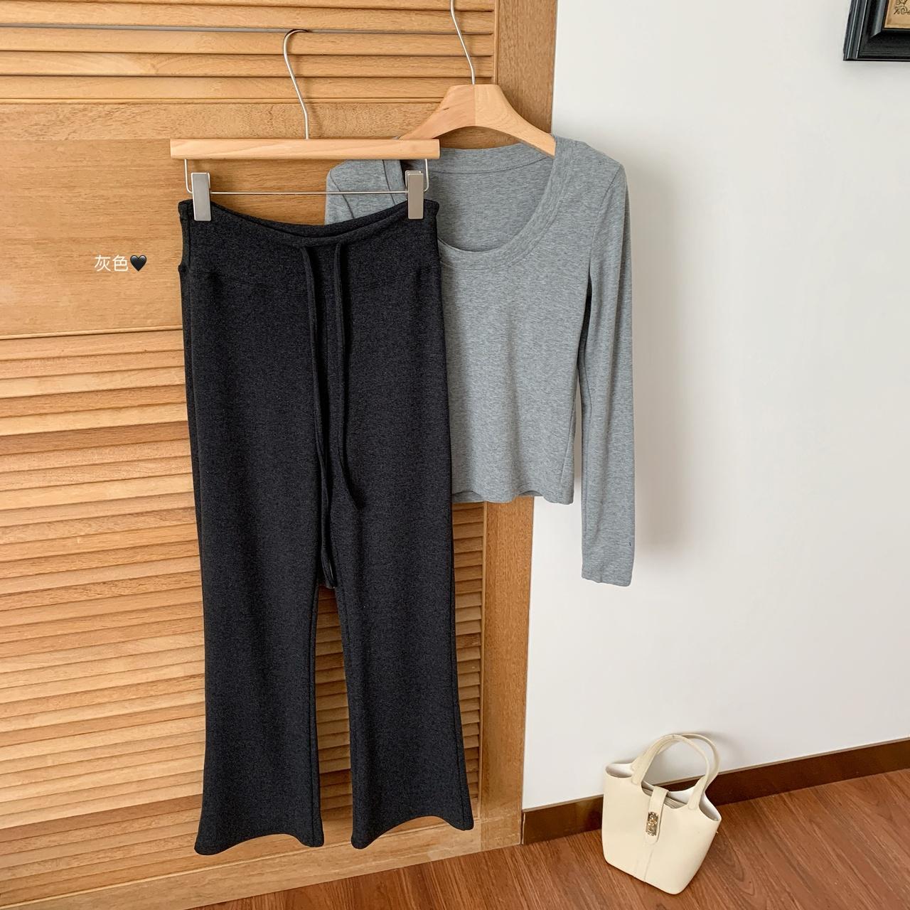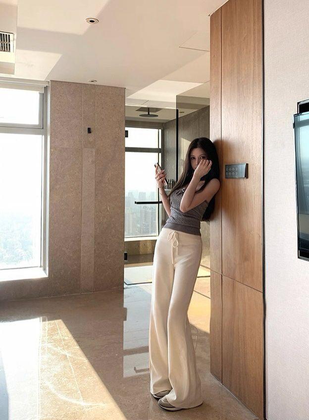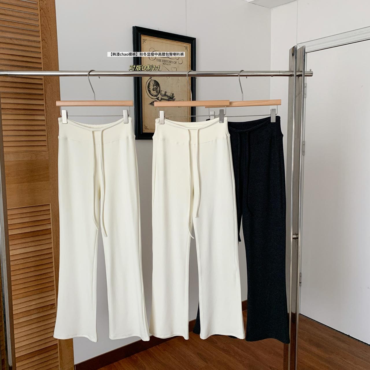 【C7720】韓漫超模褲!氣質顯瘦高腰包臀微喇休閒褲
