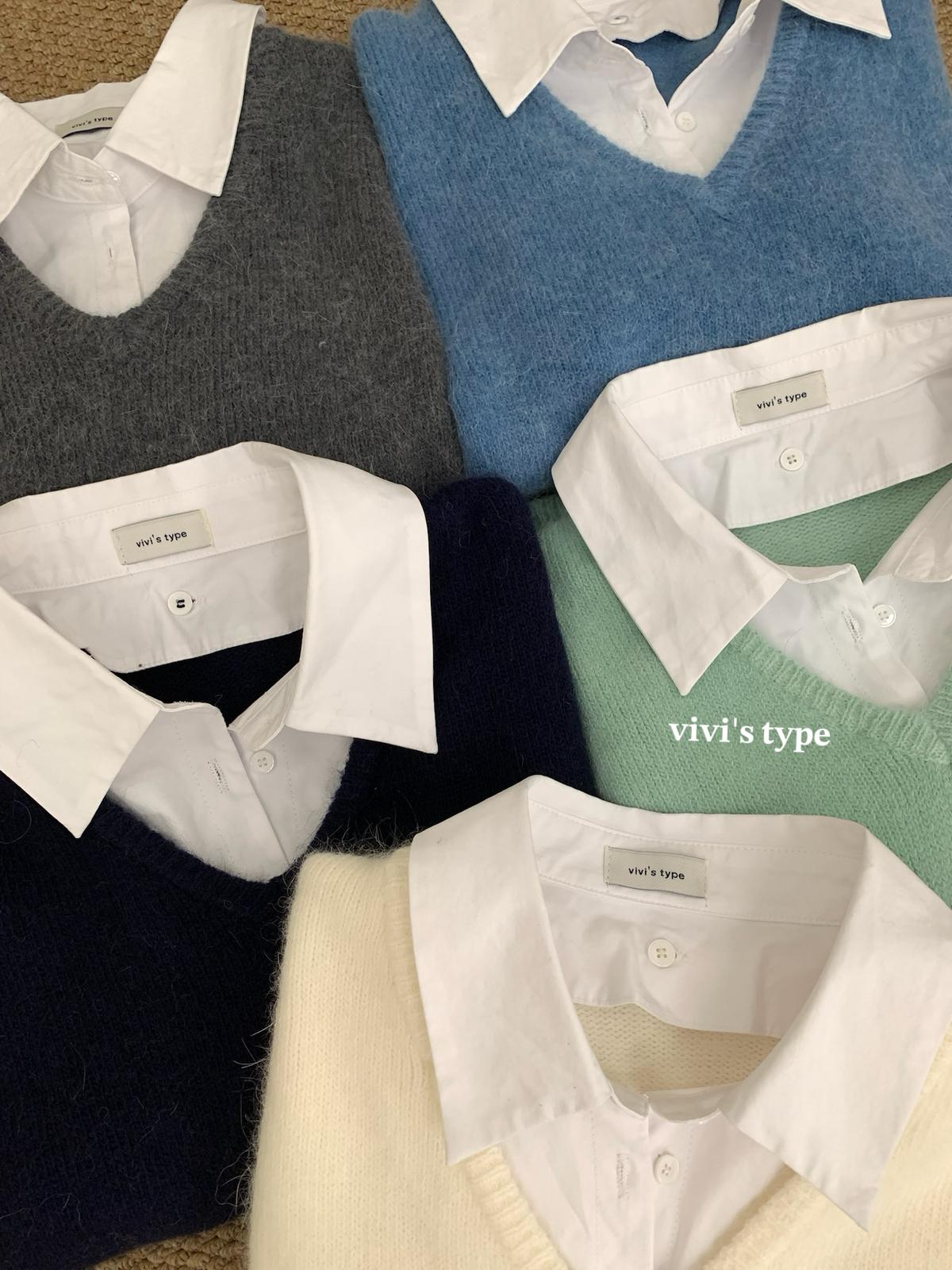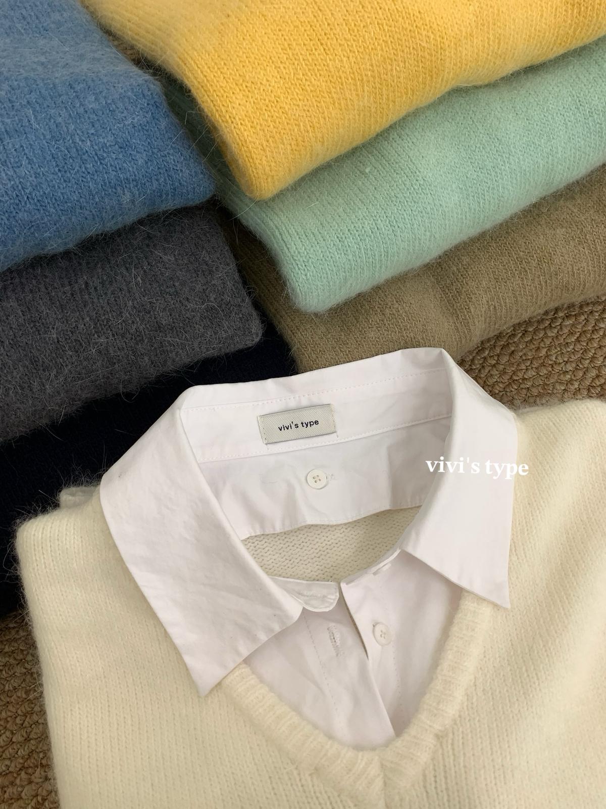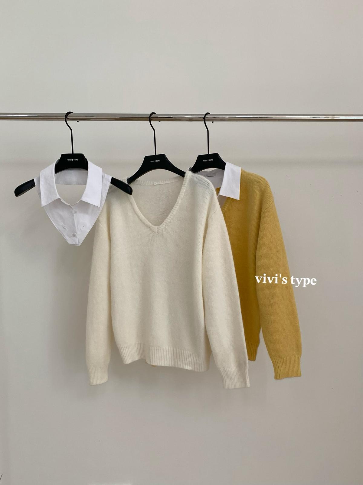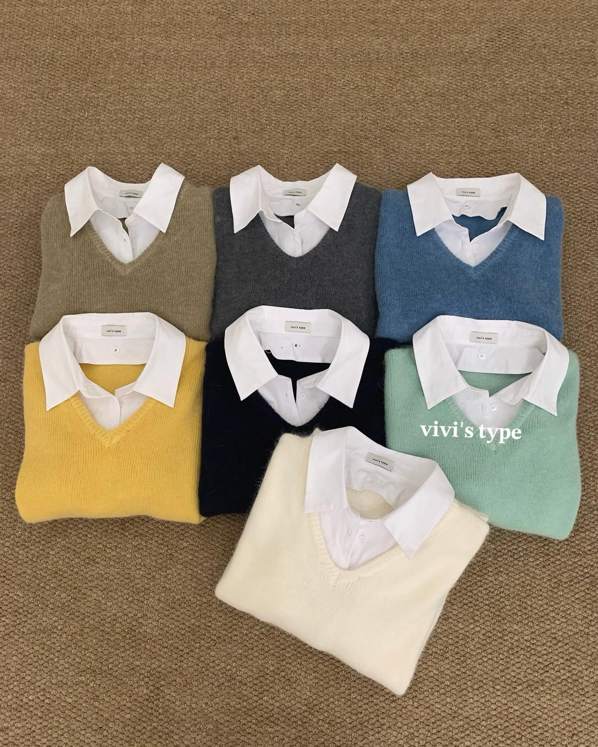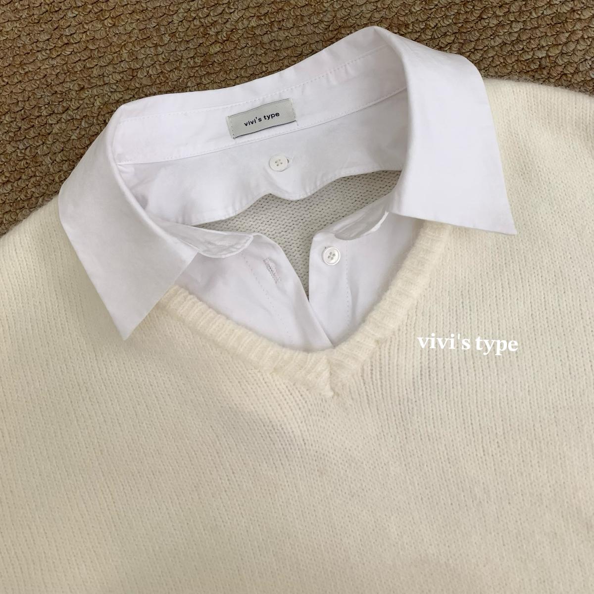【C7721】V領百搭假兩件保暖毛衣(配可拆卸領)