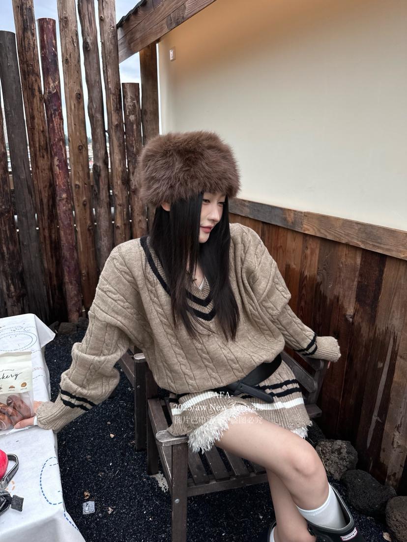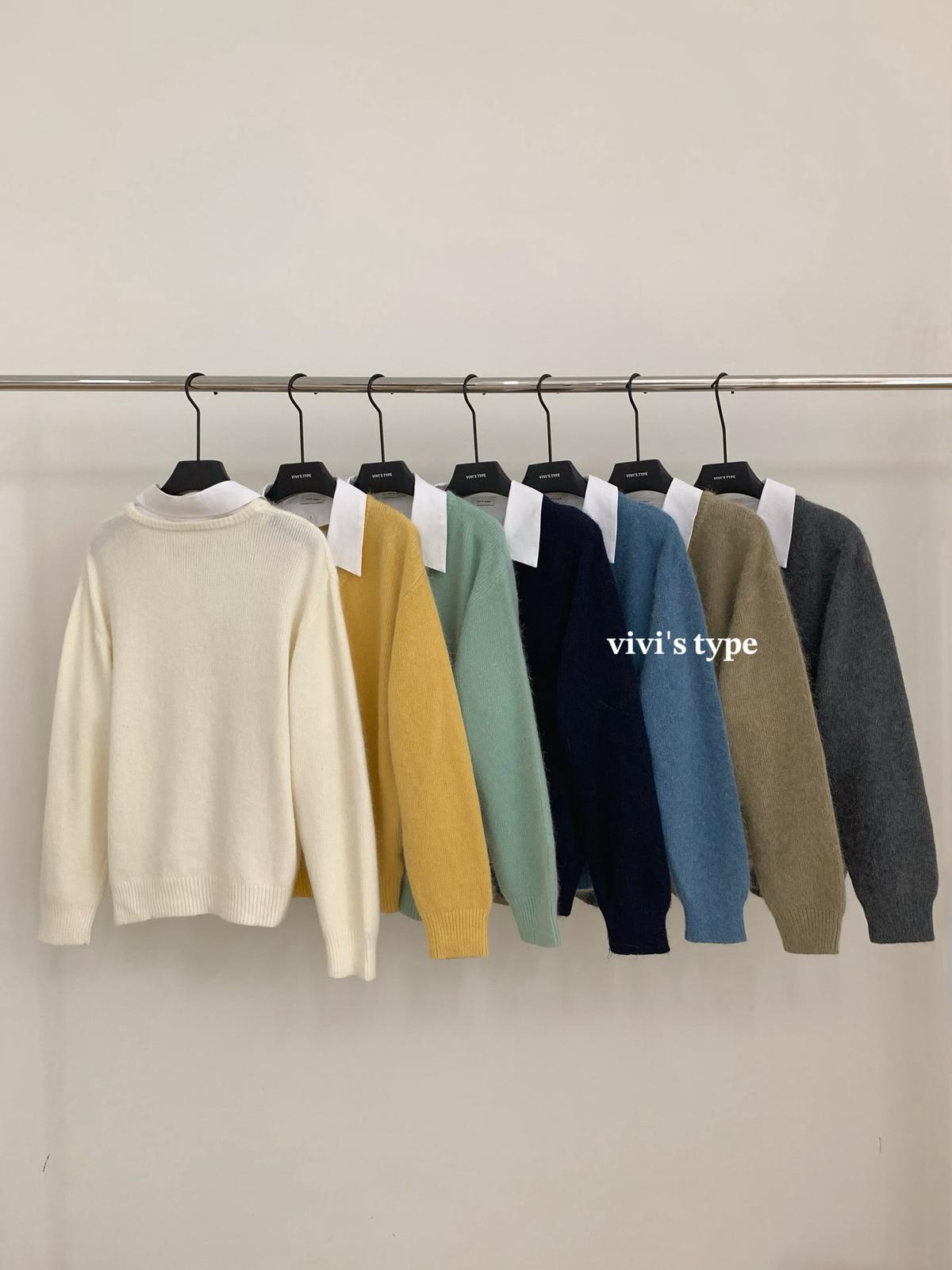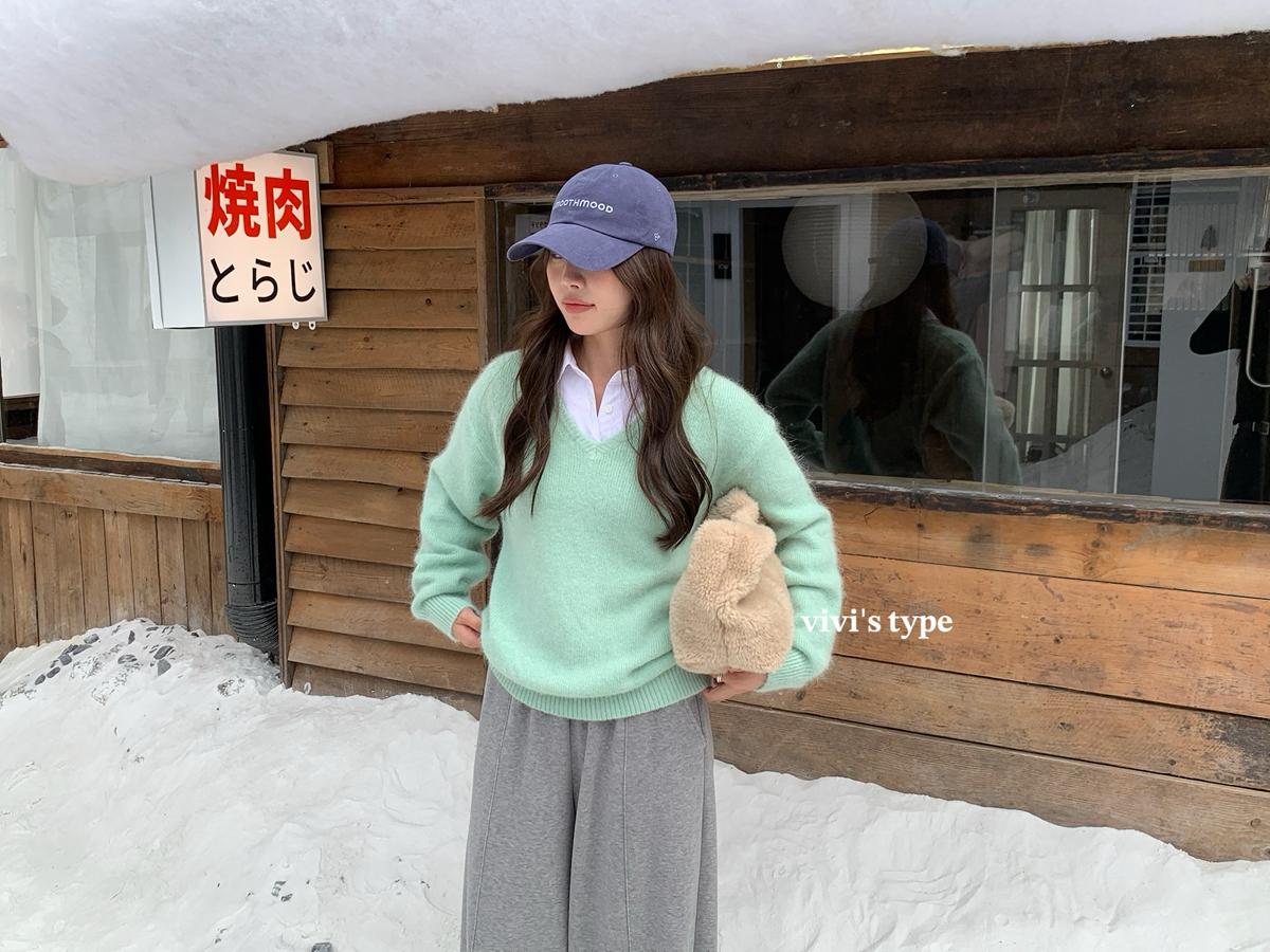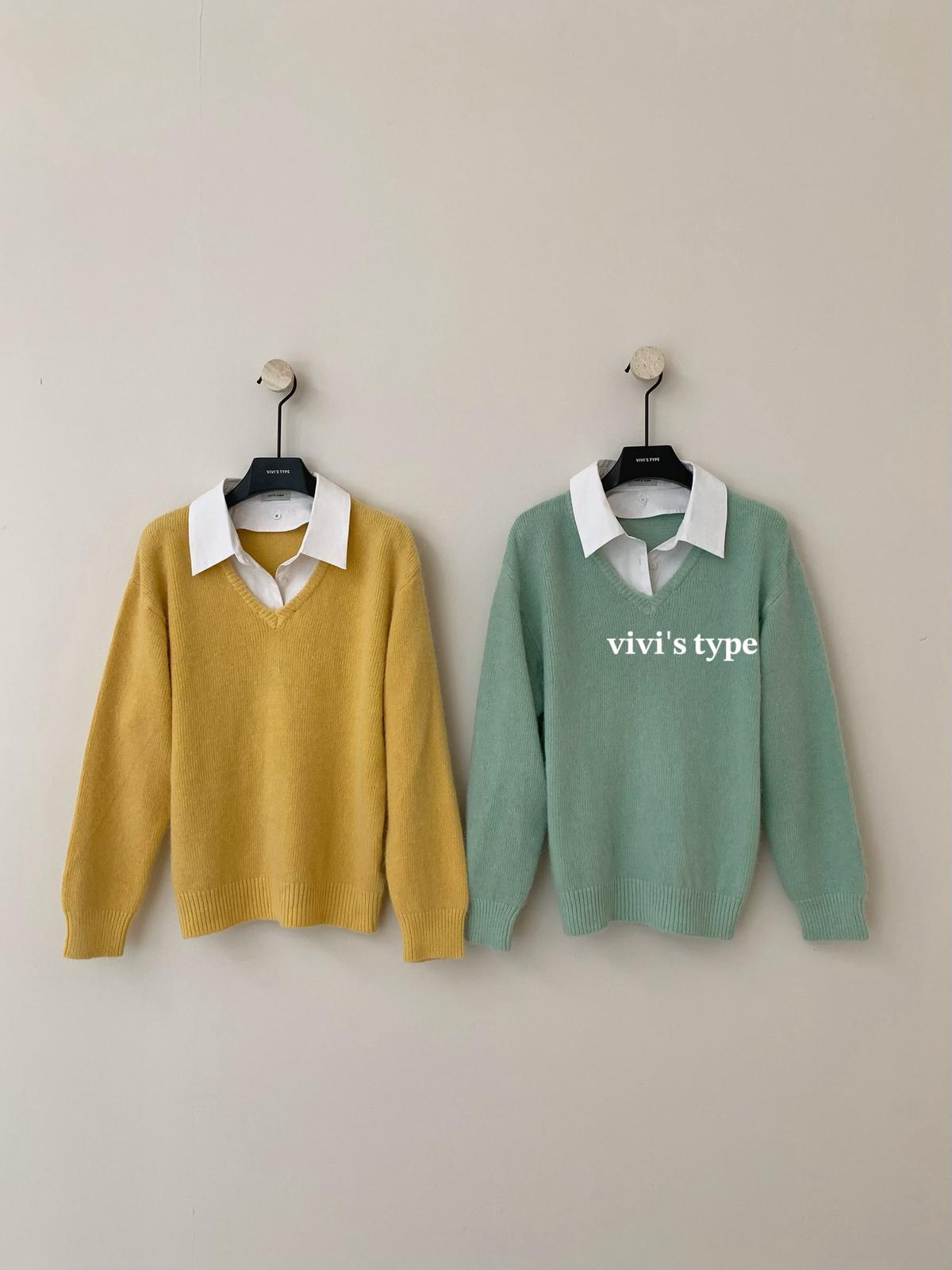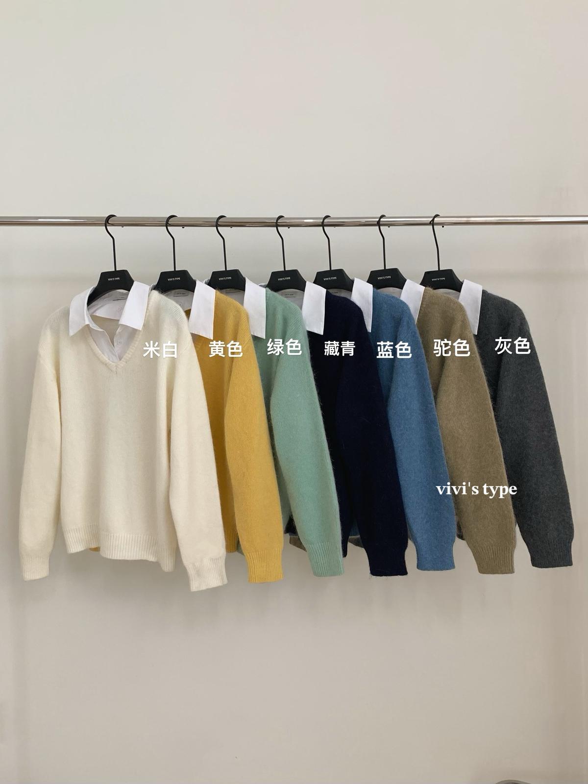 【C7721】V領百搭假兩件保暖毛衣(配可拆卸領)