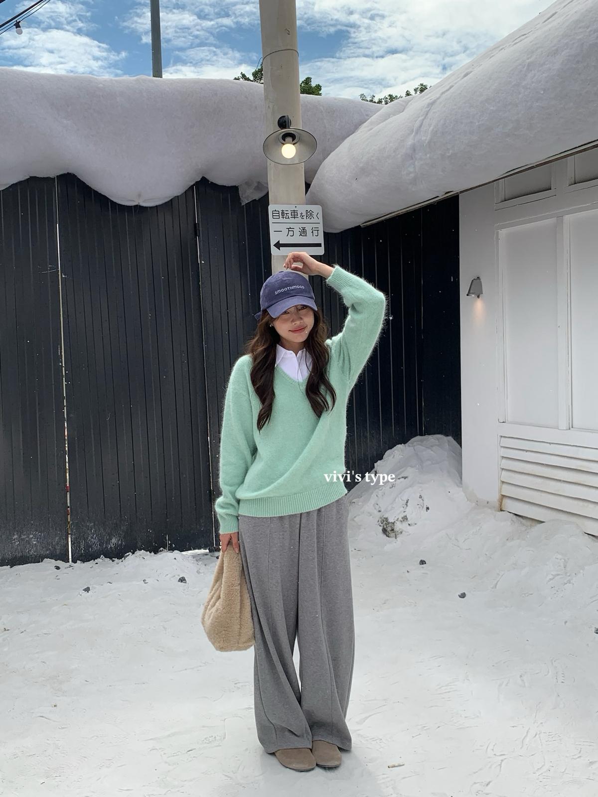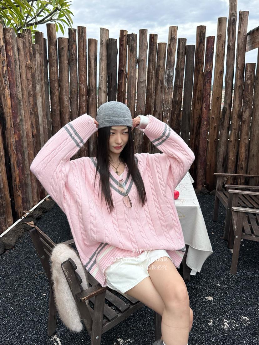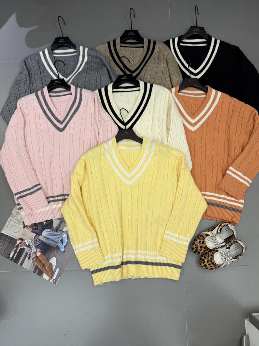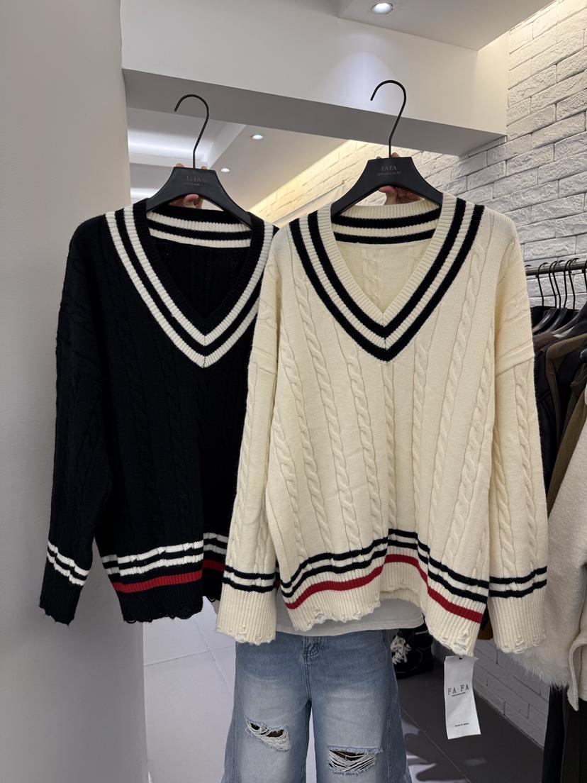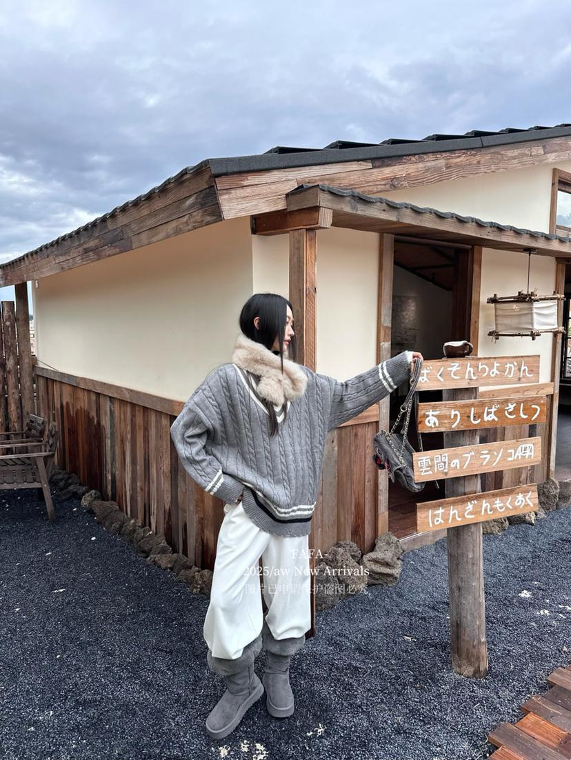 【C7721】V領百搭假兩件保暖毛衣(配可拆卸領)