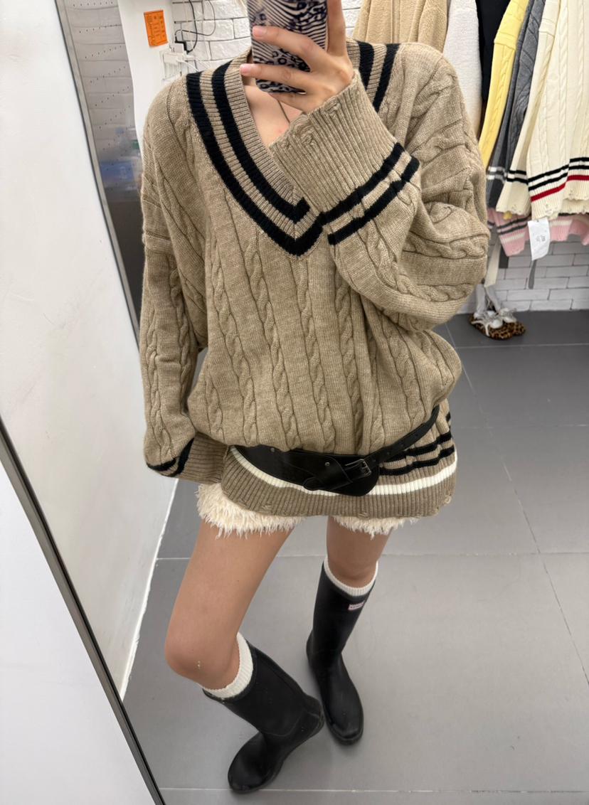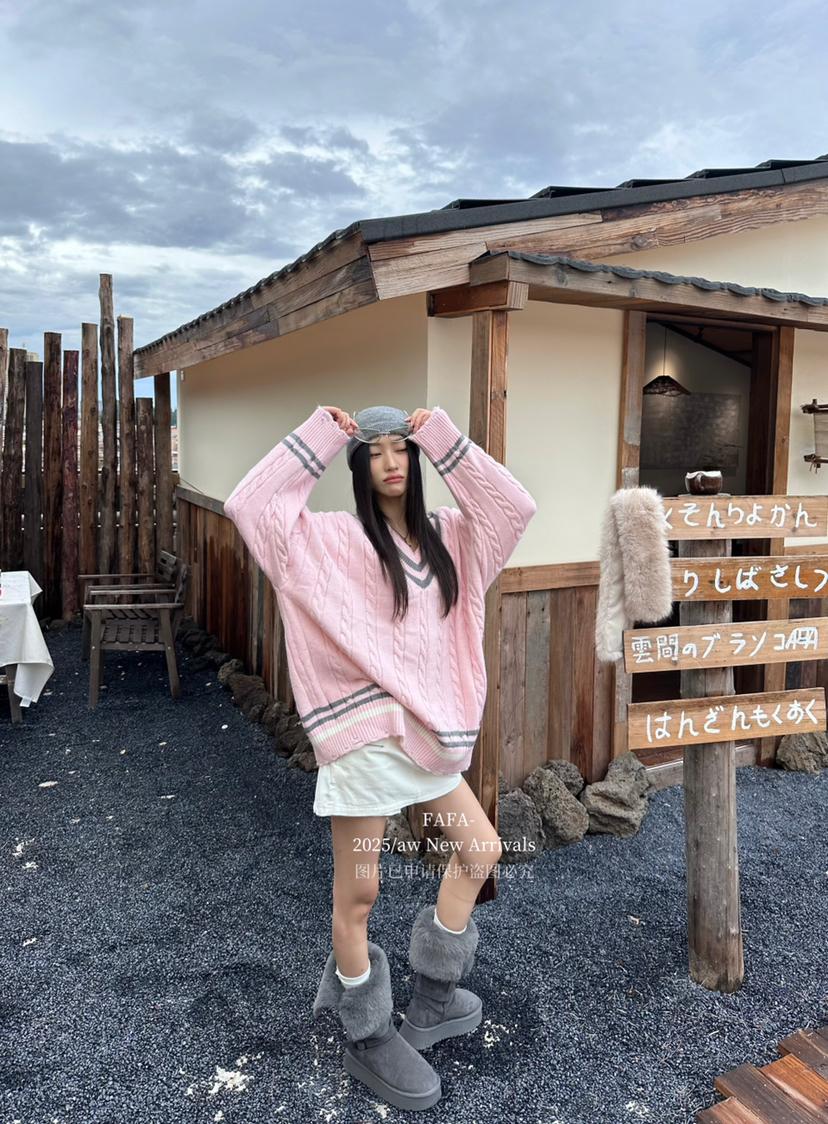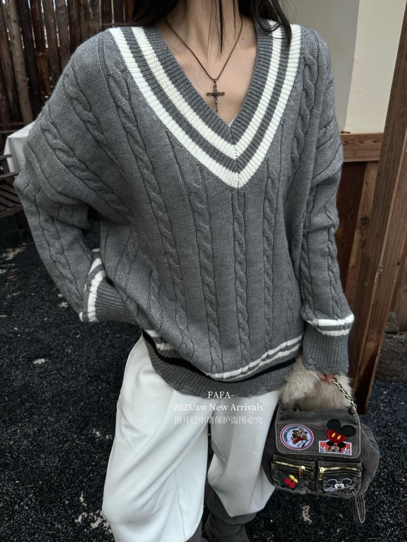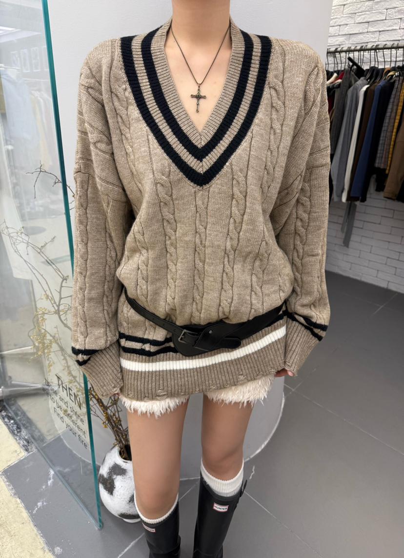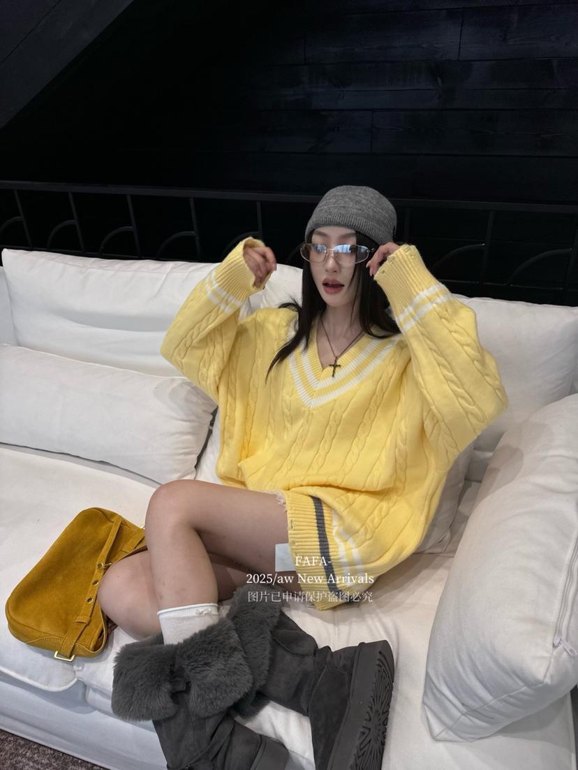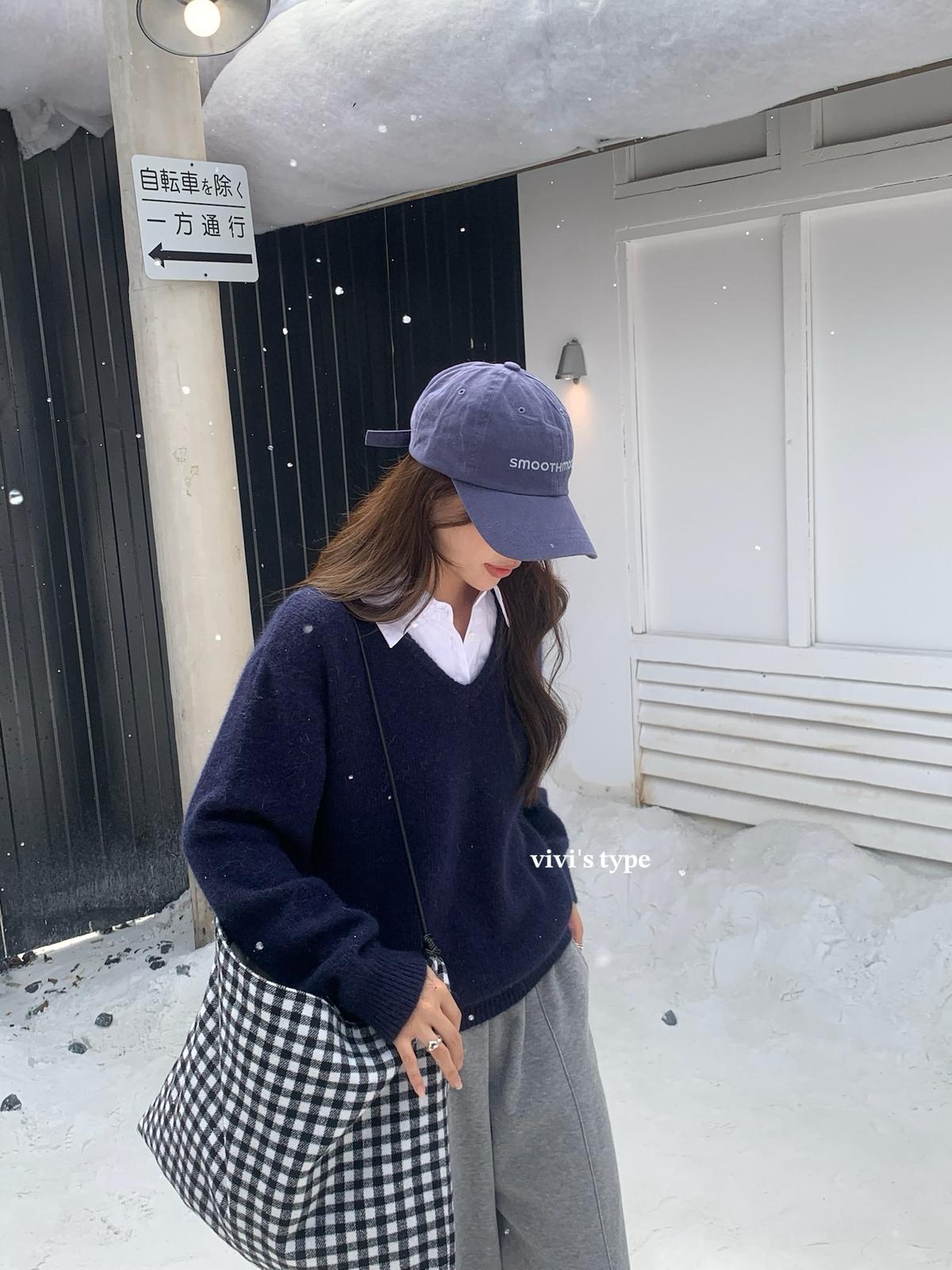 【C7721】V領百搭假兩件保暖毛衣(配可拆卸領)