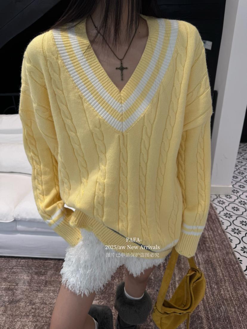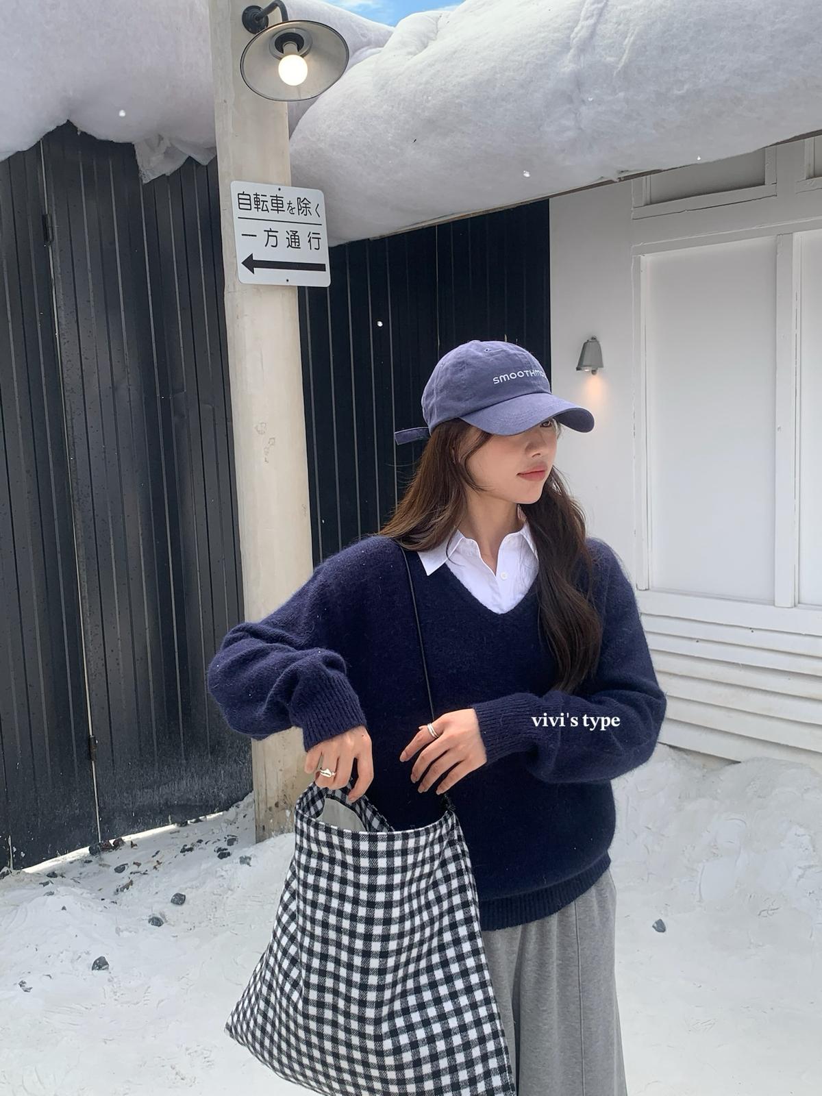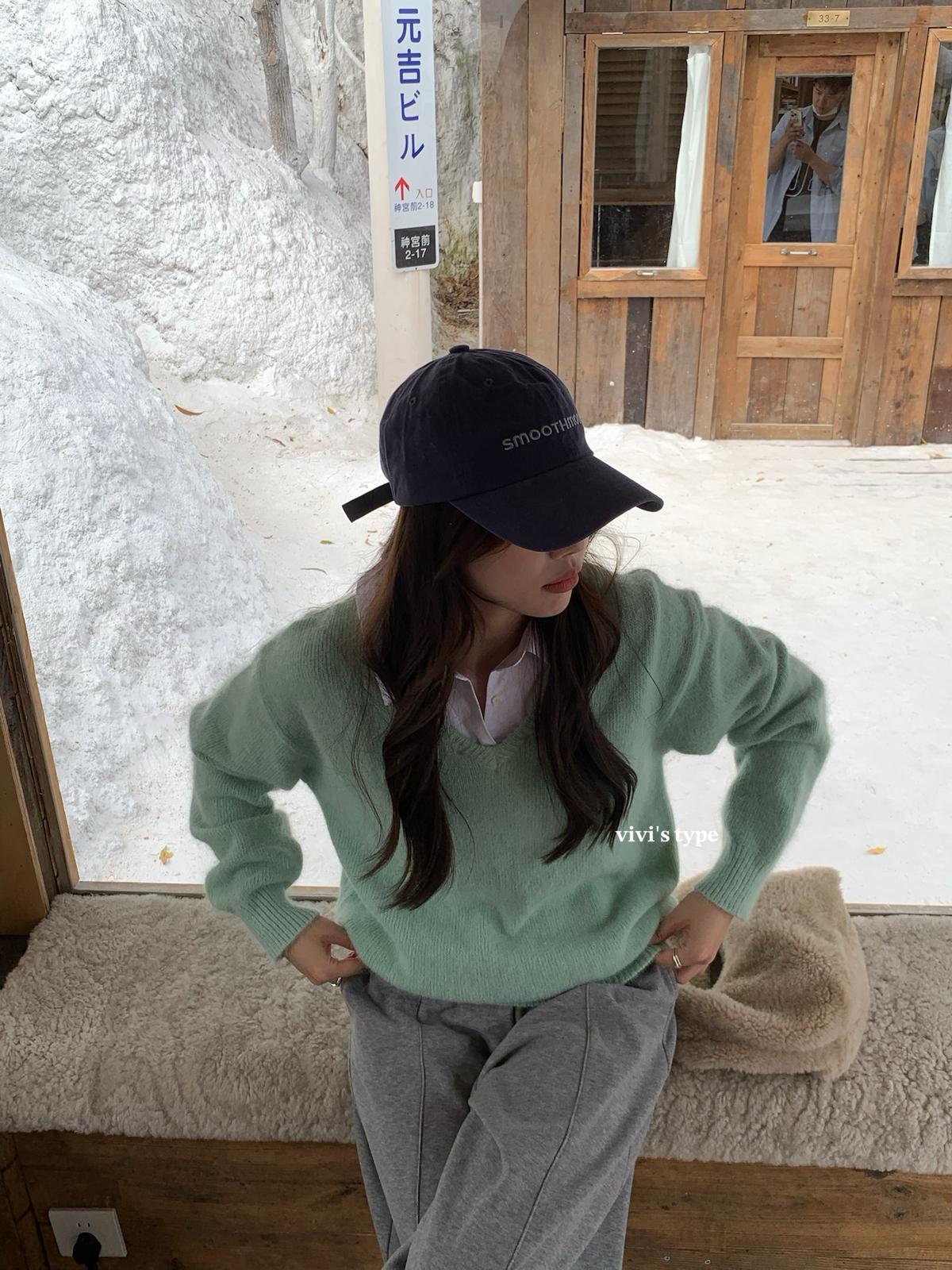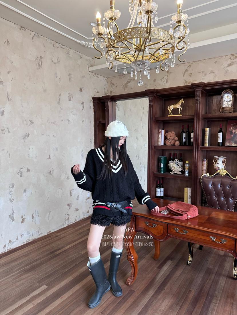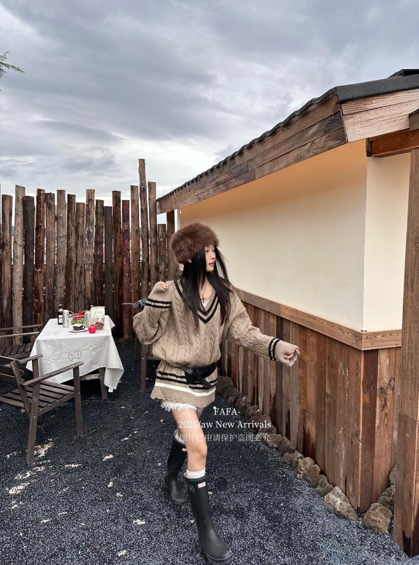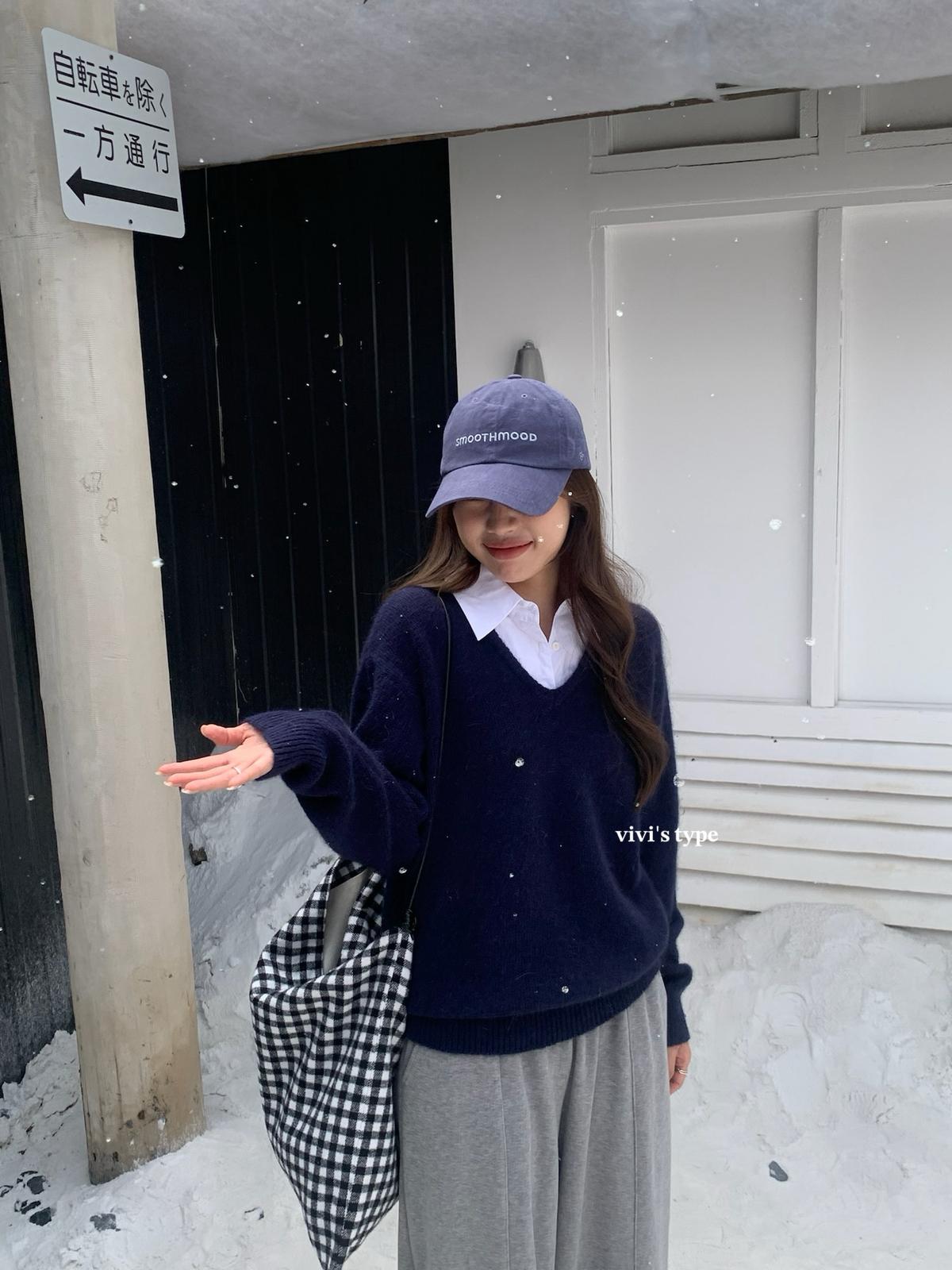 【C7721】V領百搭假兩件保暖毛衣(配可拆卸領)