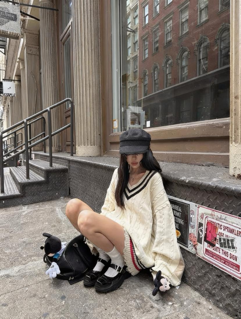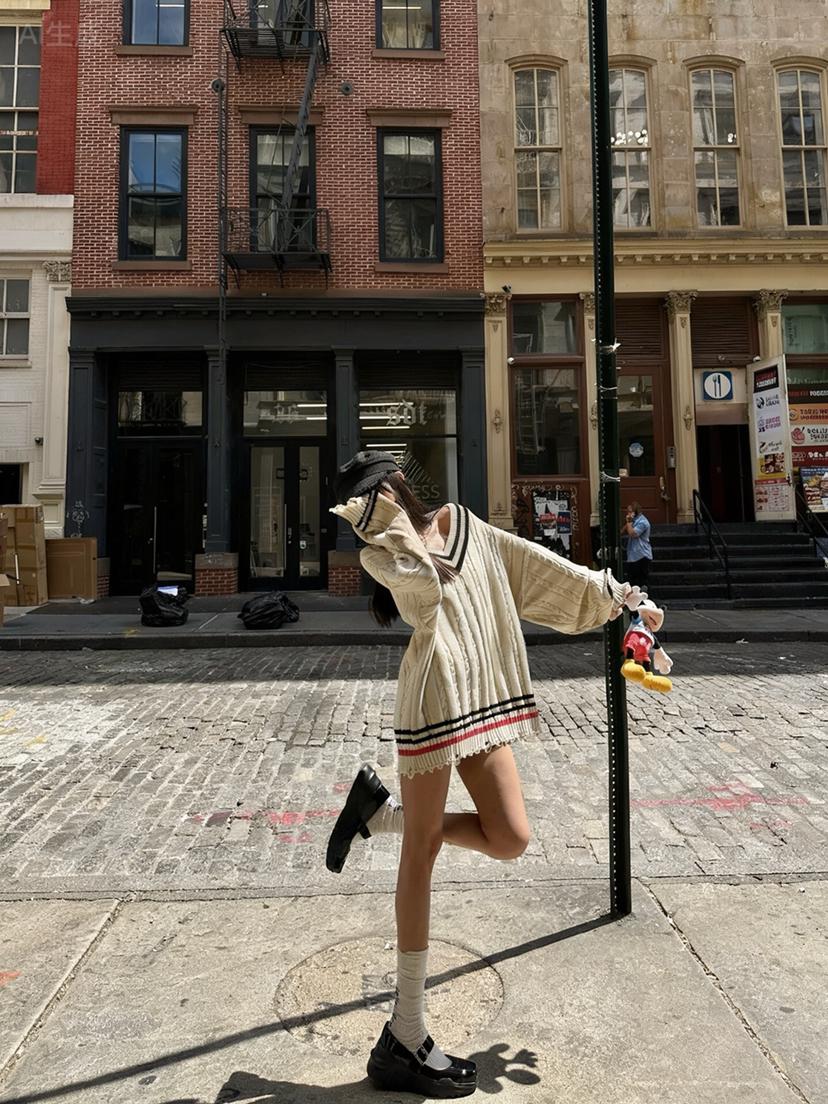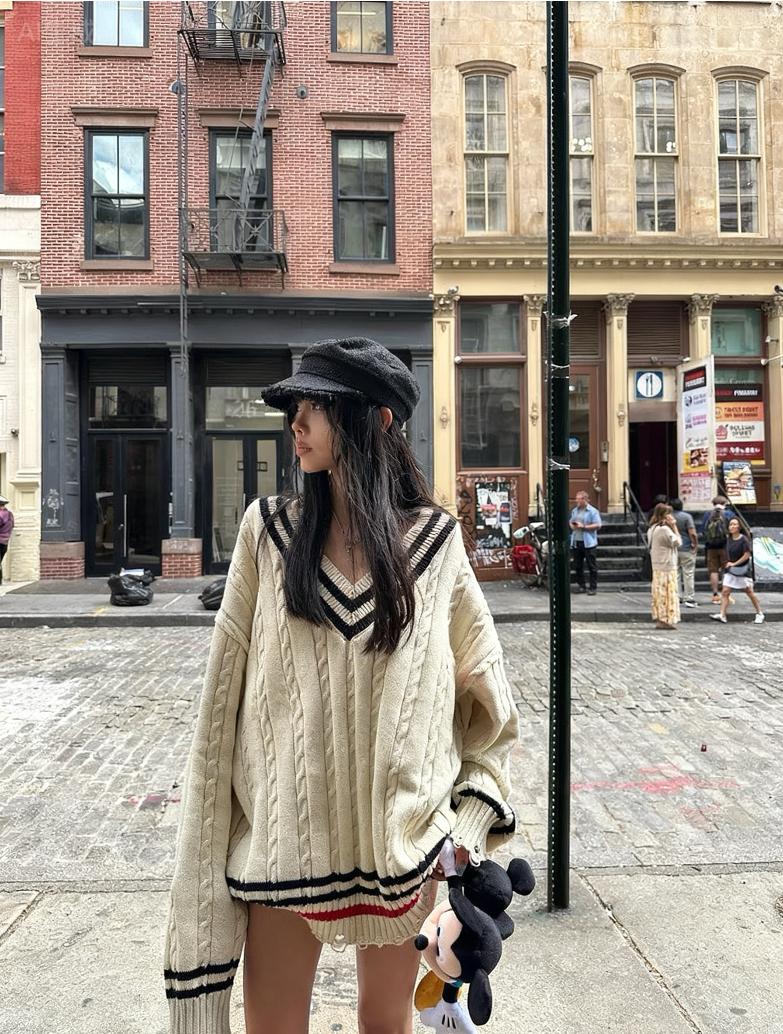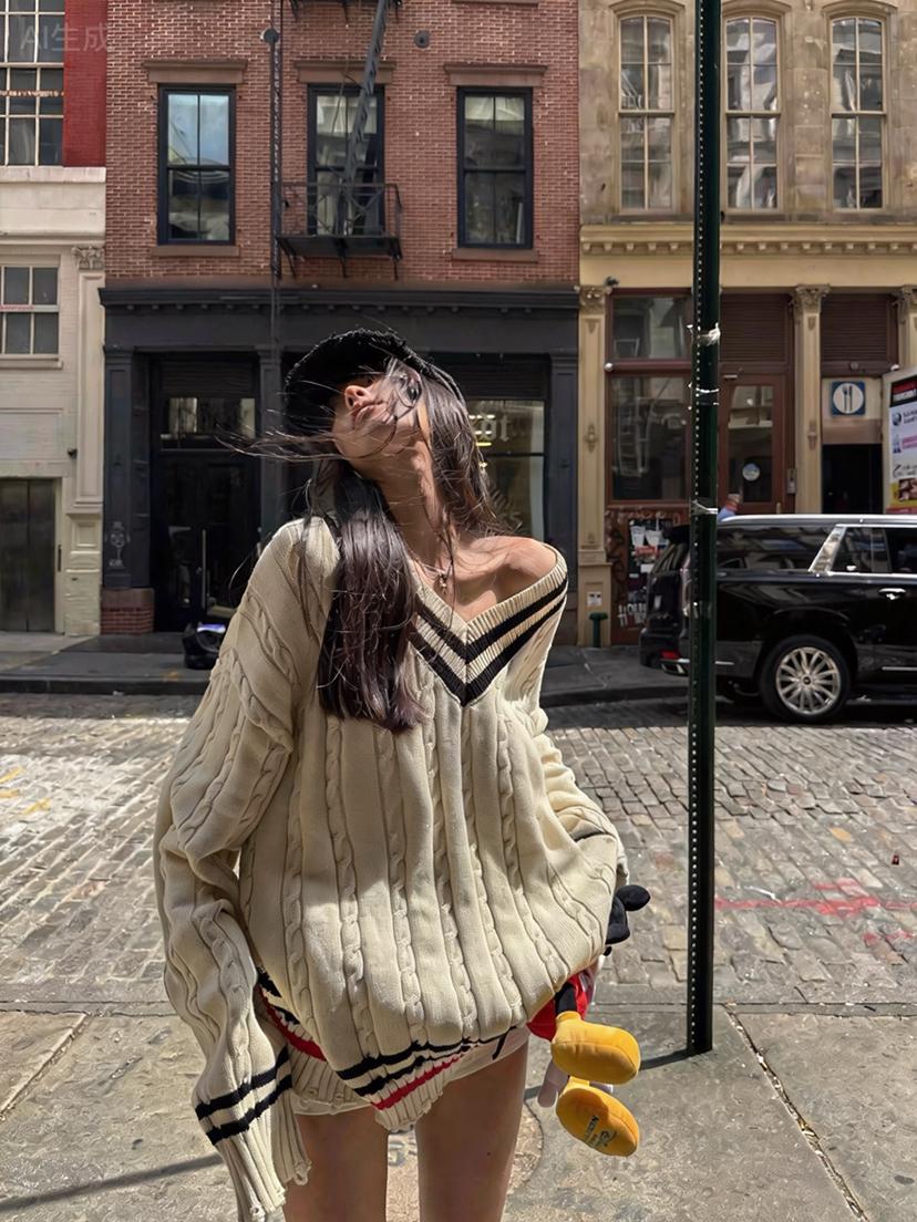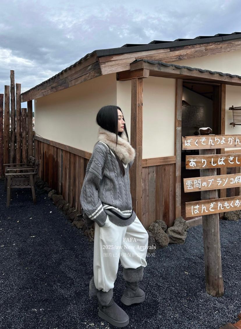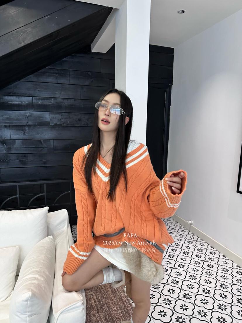 【C7721】V領百搭假兩件保暖毛衣(配可拆卸領)
