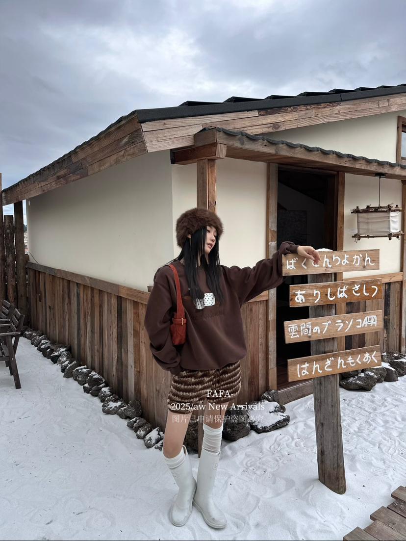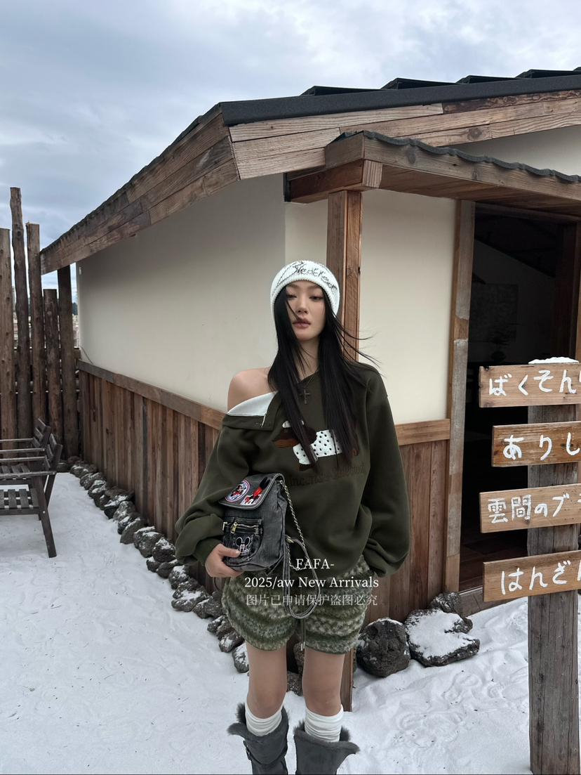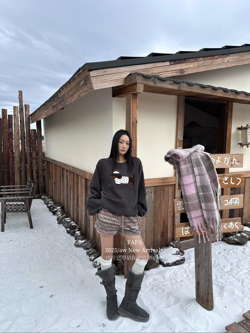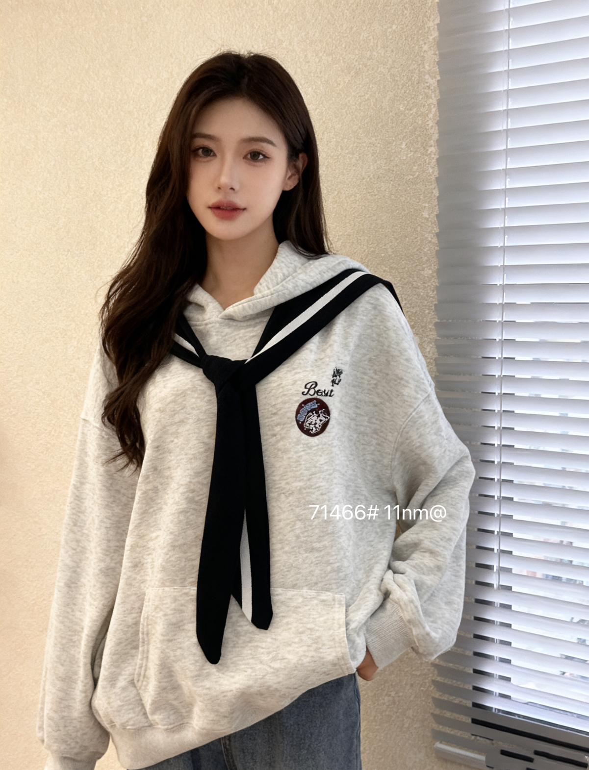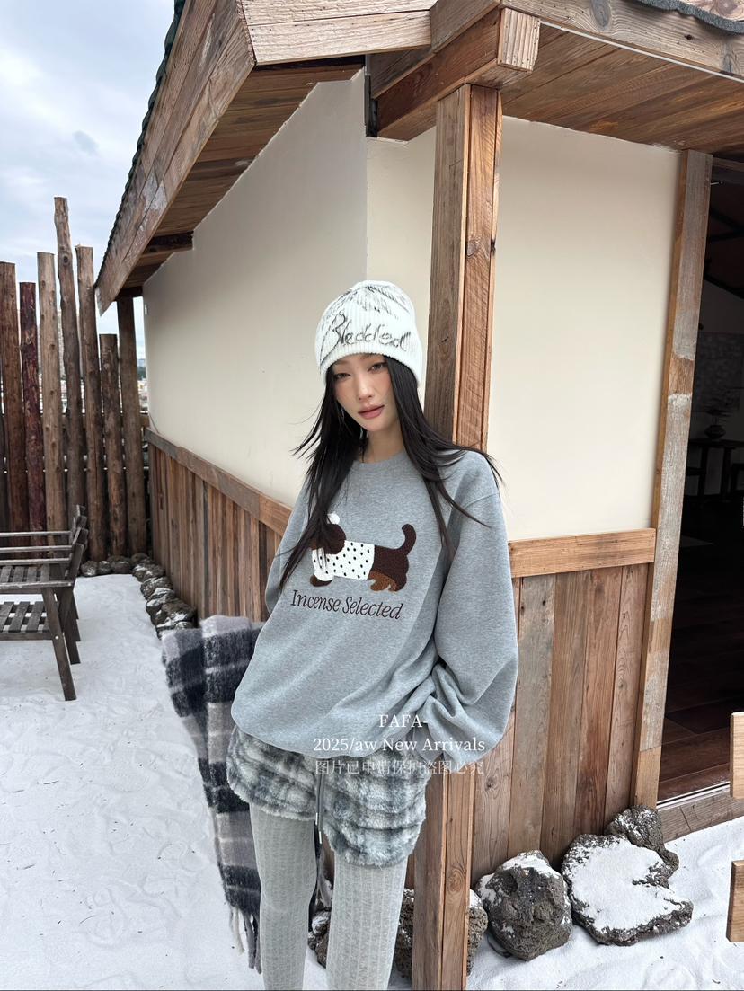 【C7724】美式刺繡小狗寬鬆加絨加厚衛衣(配披肩)