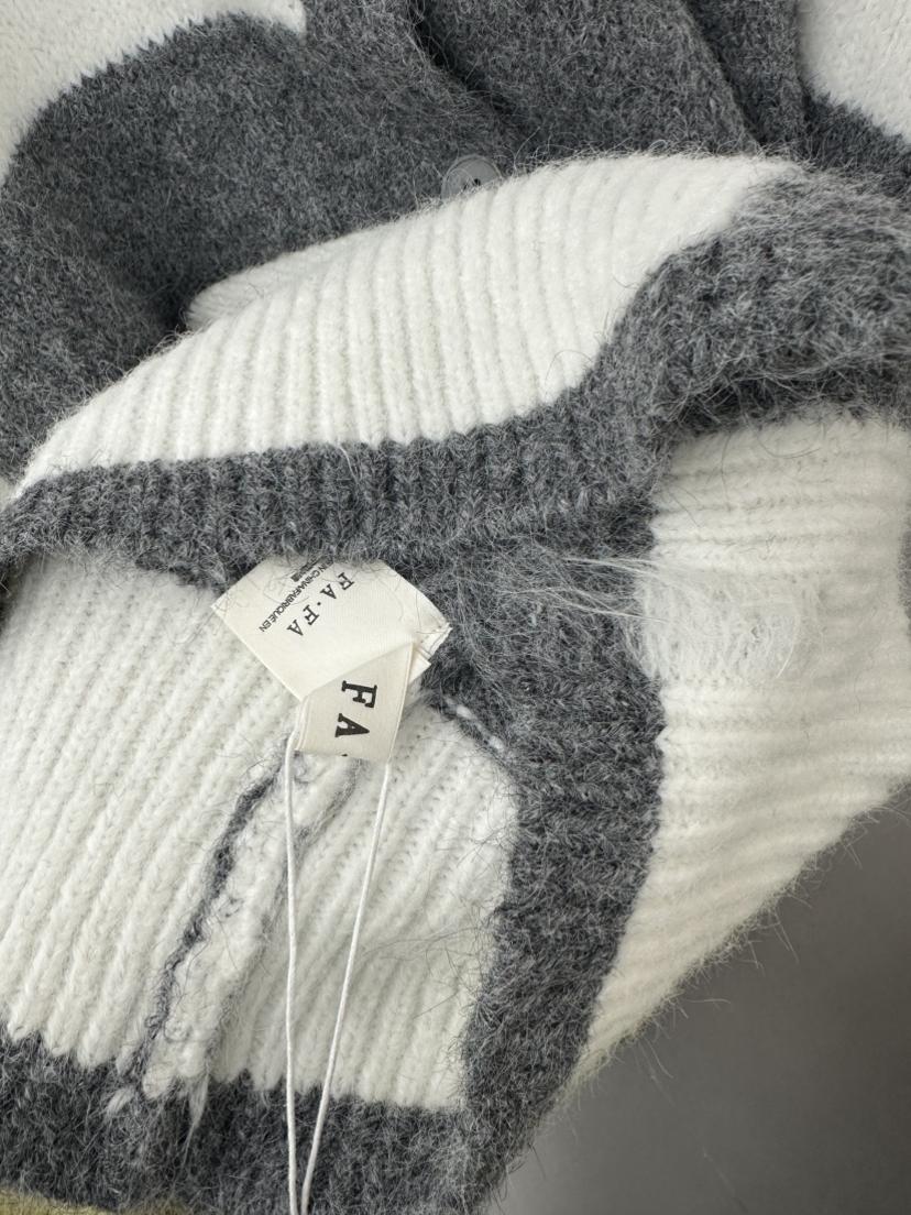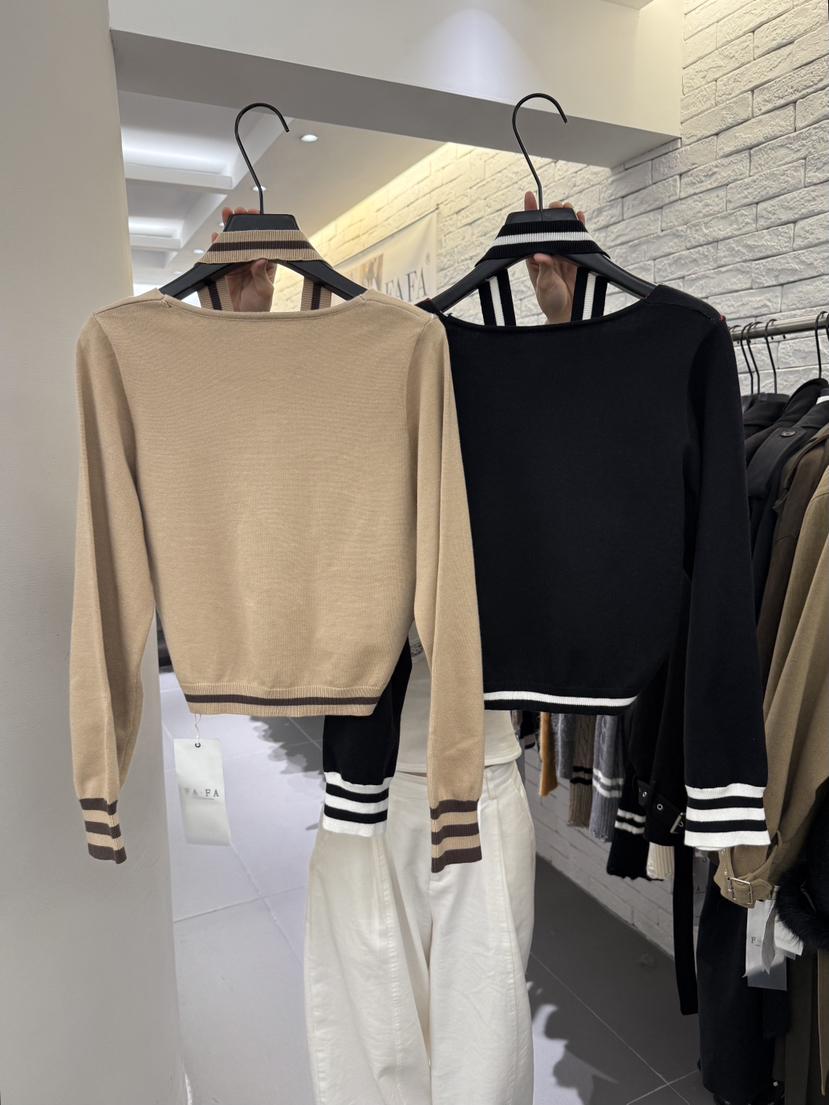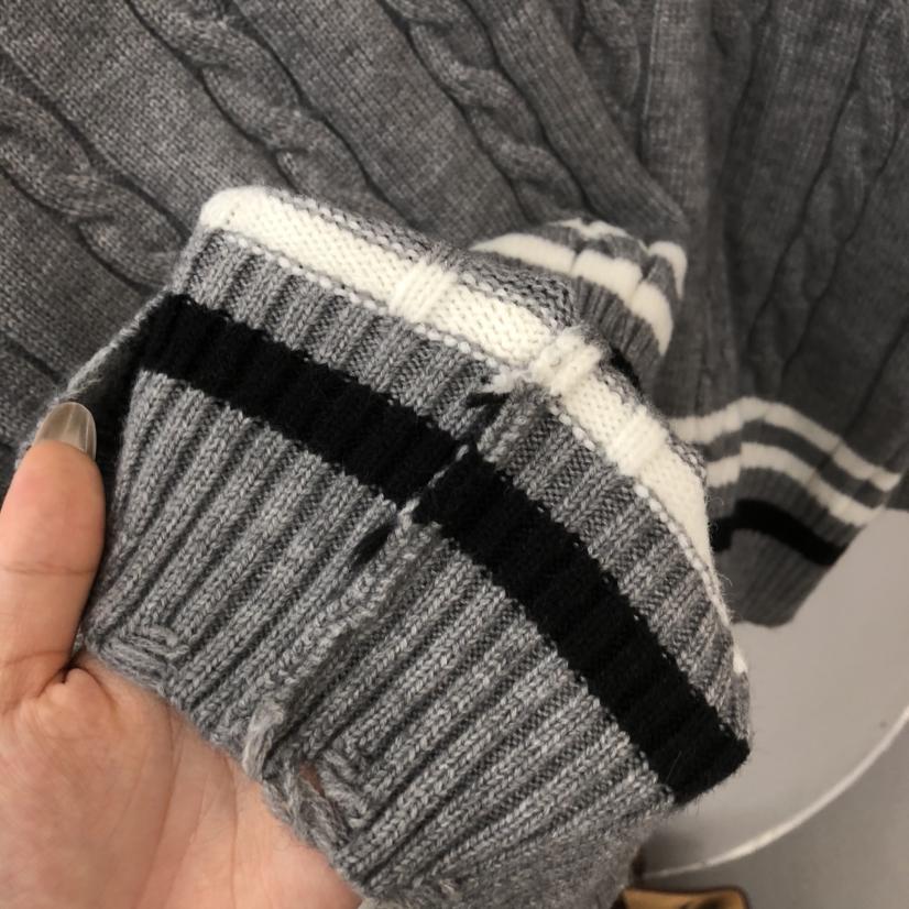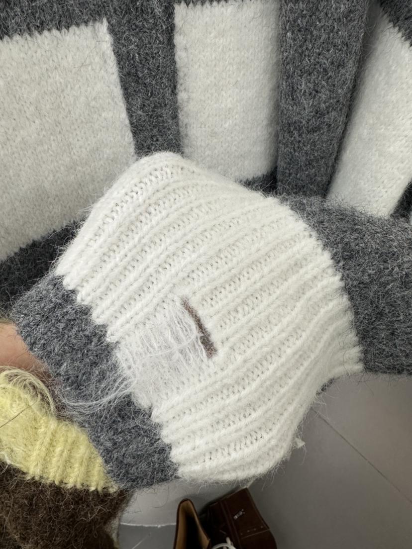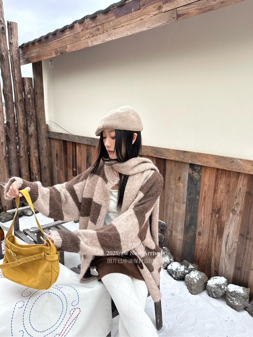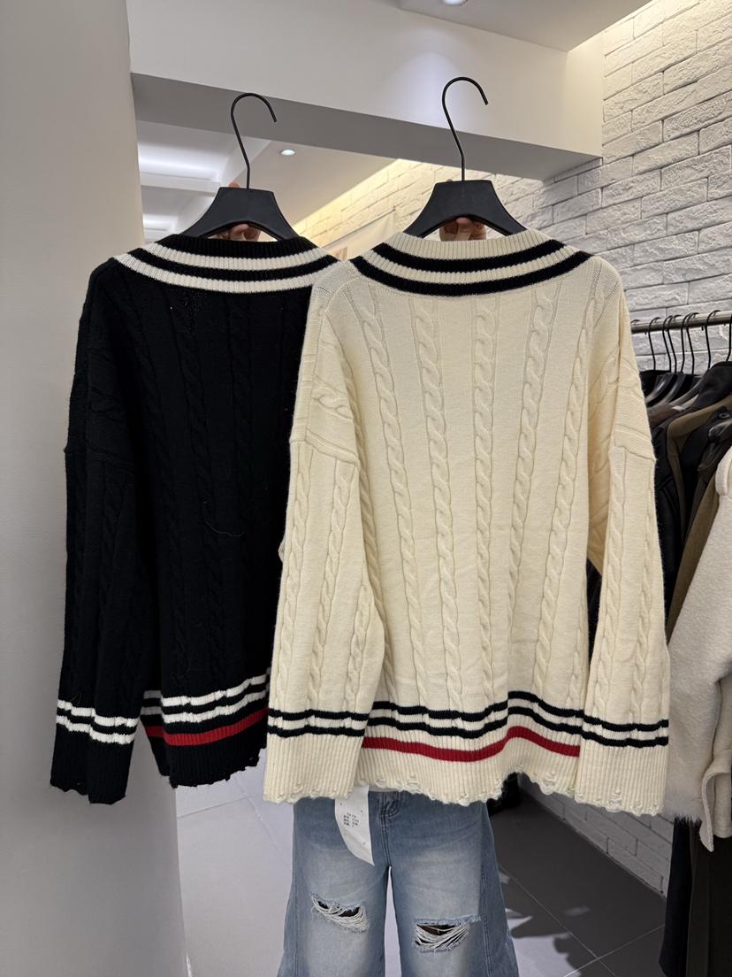 【C7731】條紋百搭圓領單排扣長袖保暖毛衣(配圍巾)