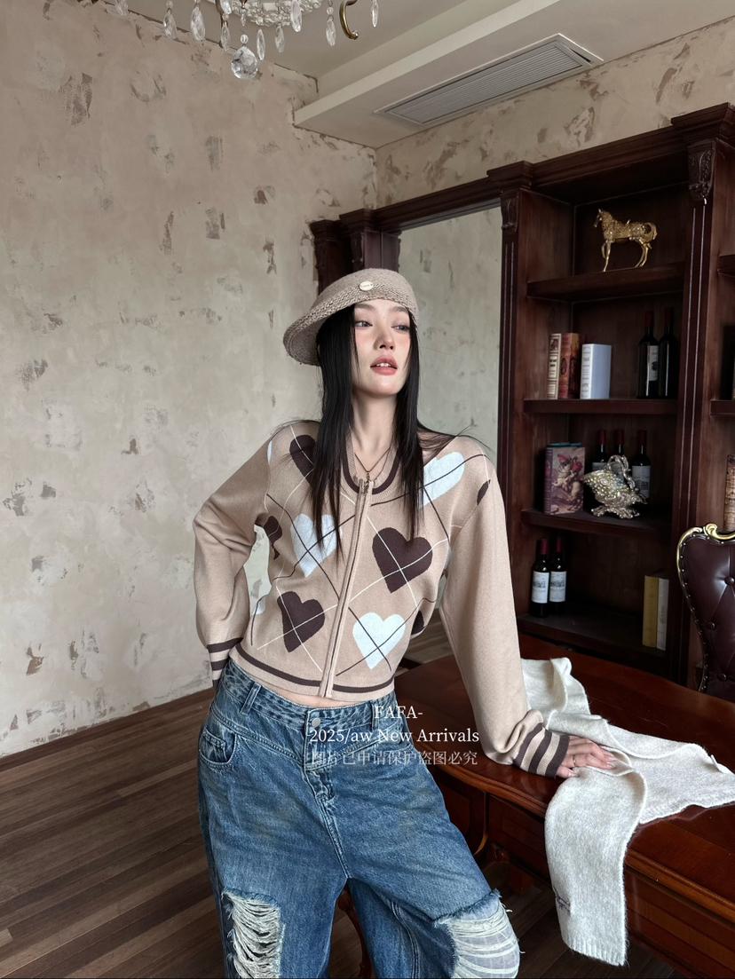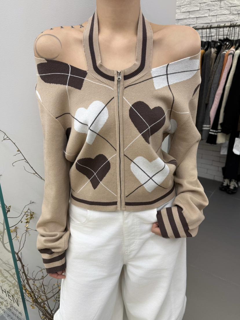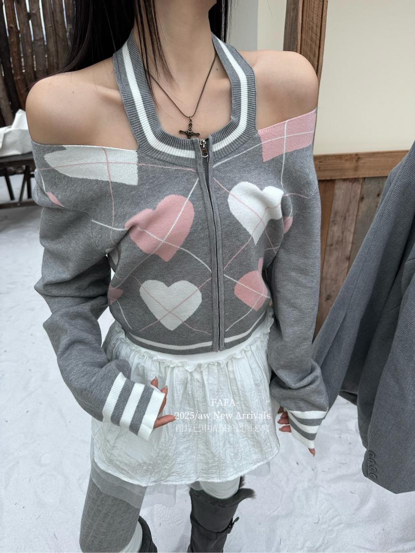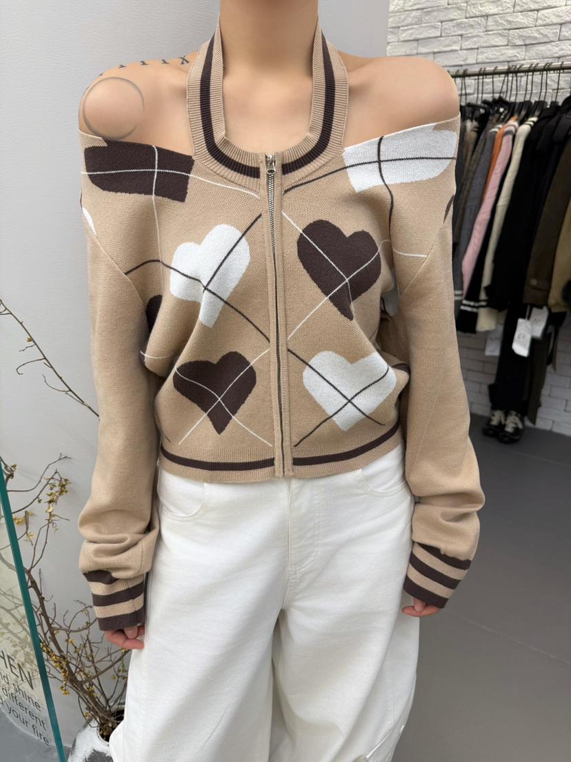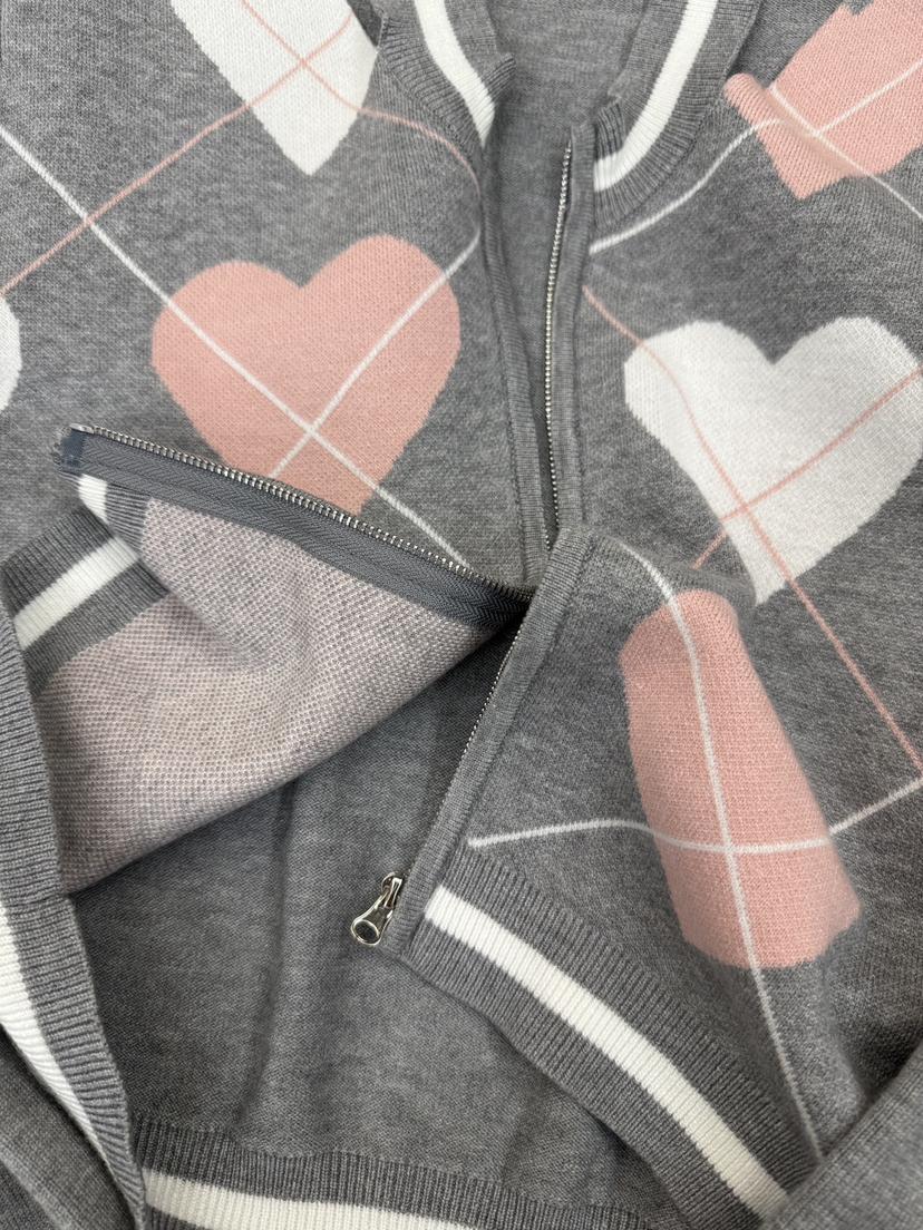 【C7732】愛心設計掛脖拉鍊長袖保暖毛衣