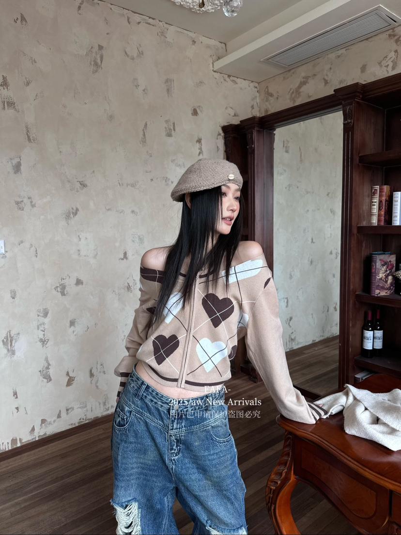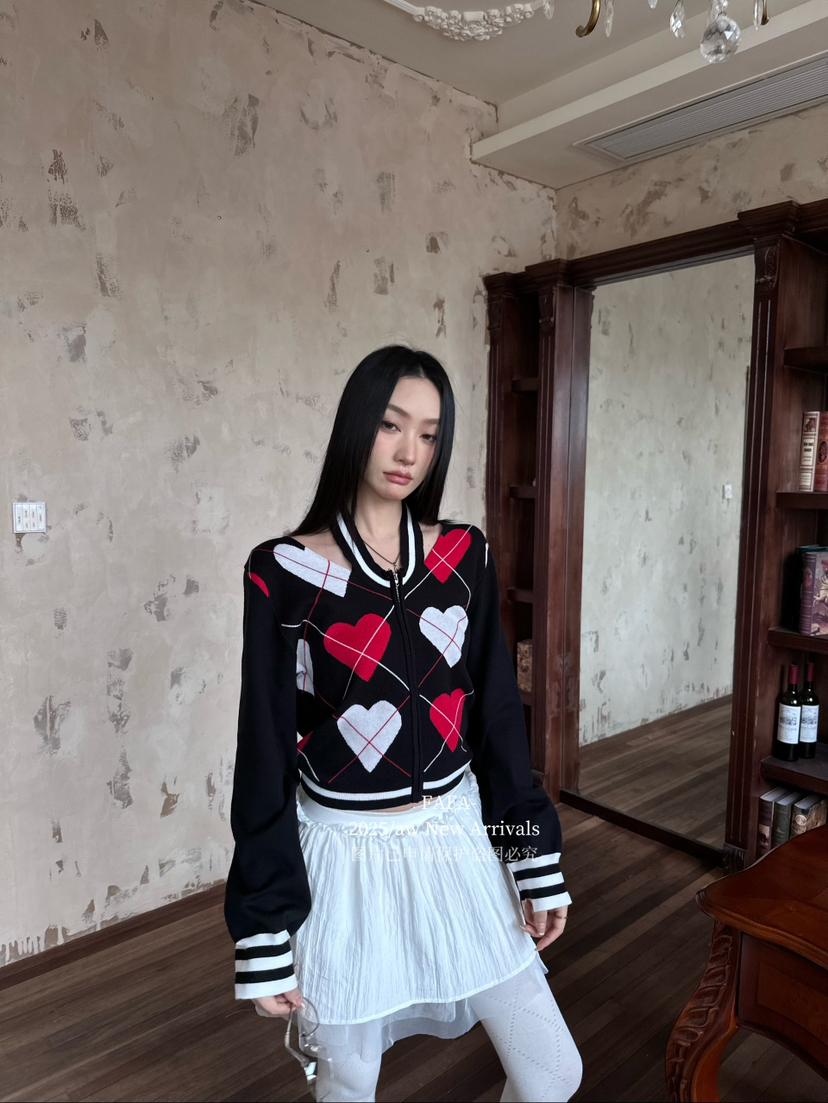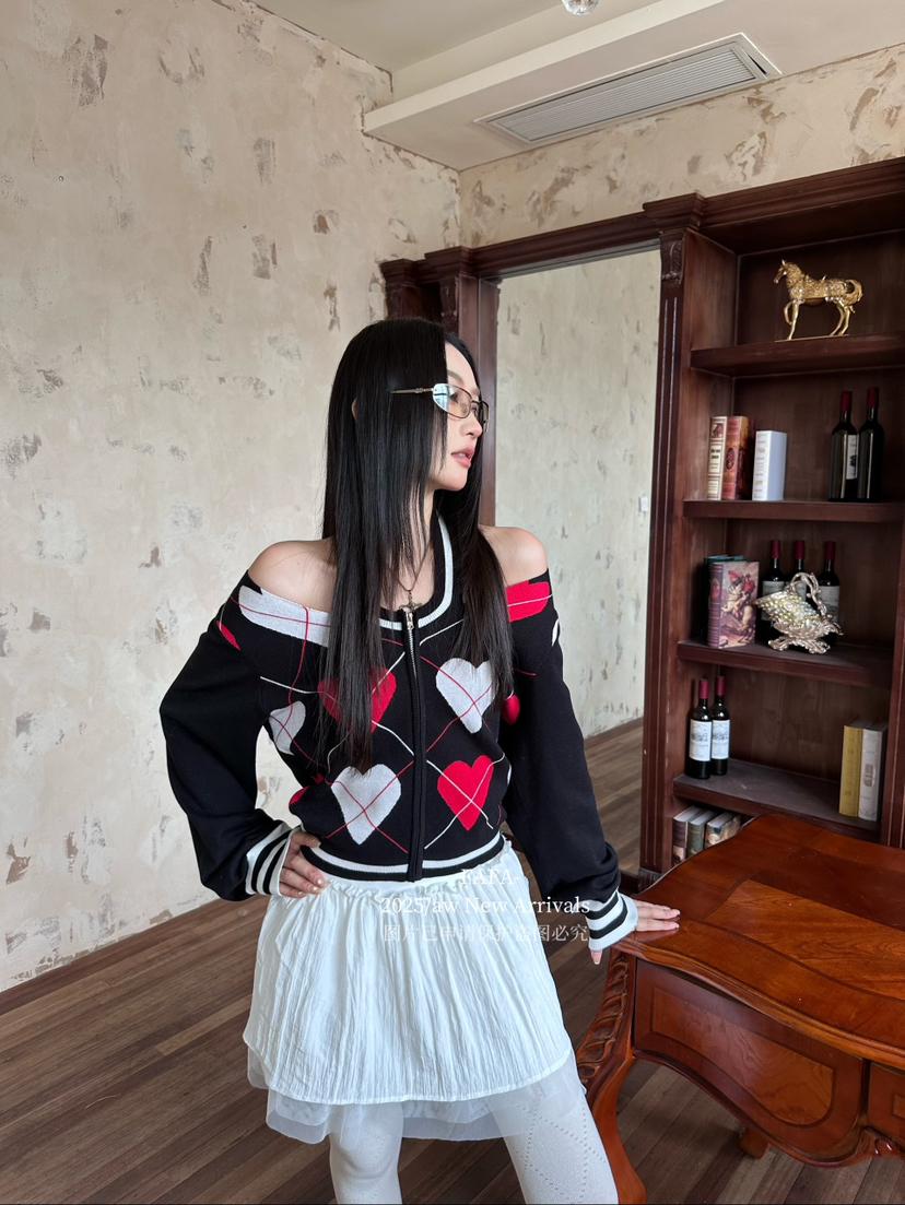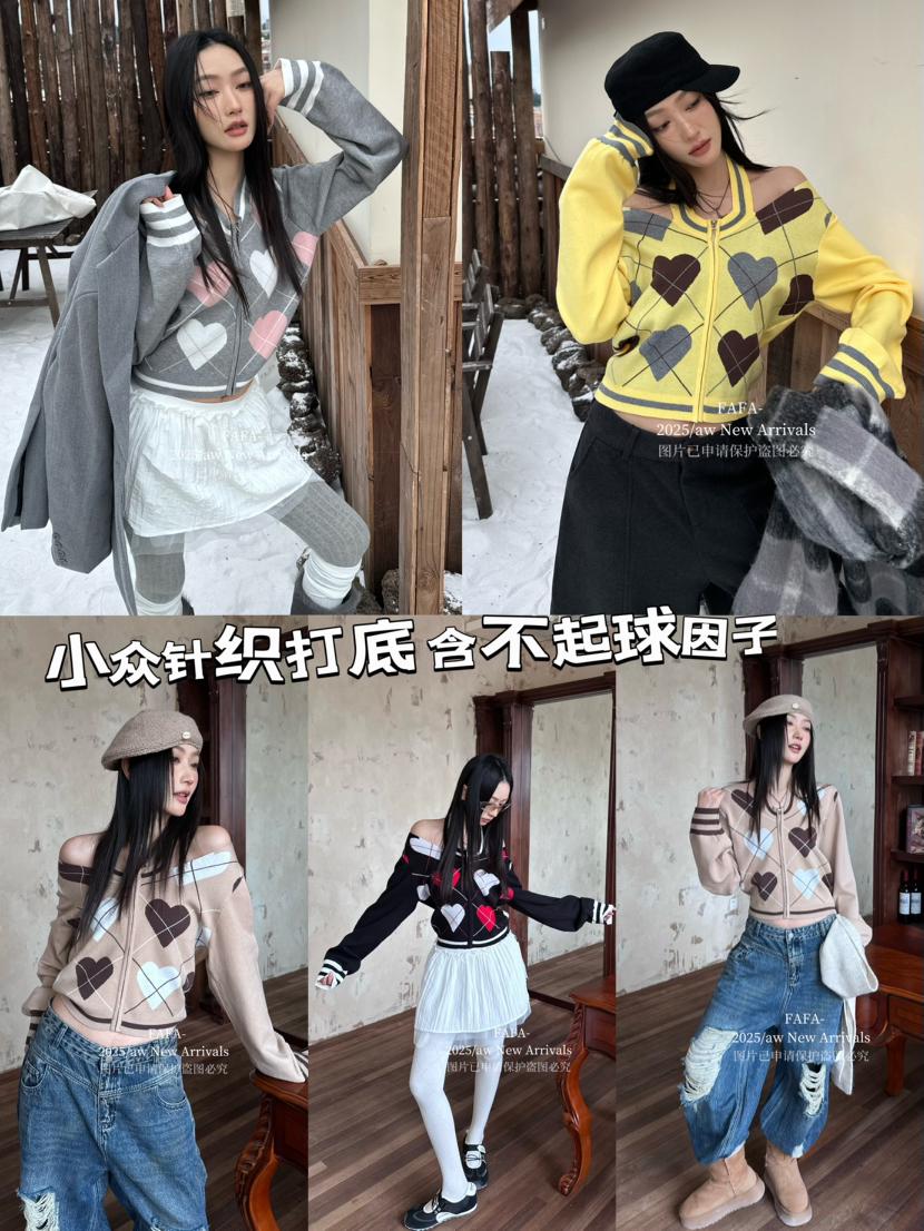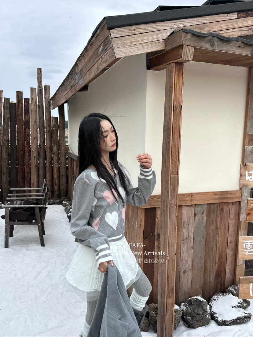 【C7732】愛心設計掛脖拉鍊長袖保暖毛衣