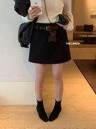 【C7695】時尚百搭顯瘦加厚毛呢半身裙(配腰帶)